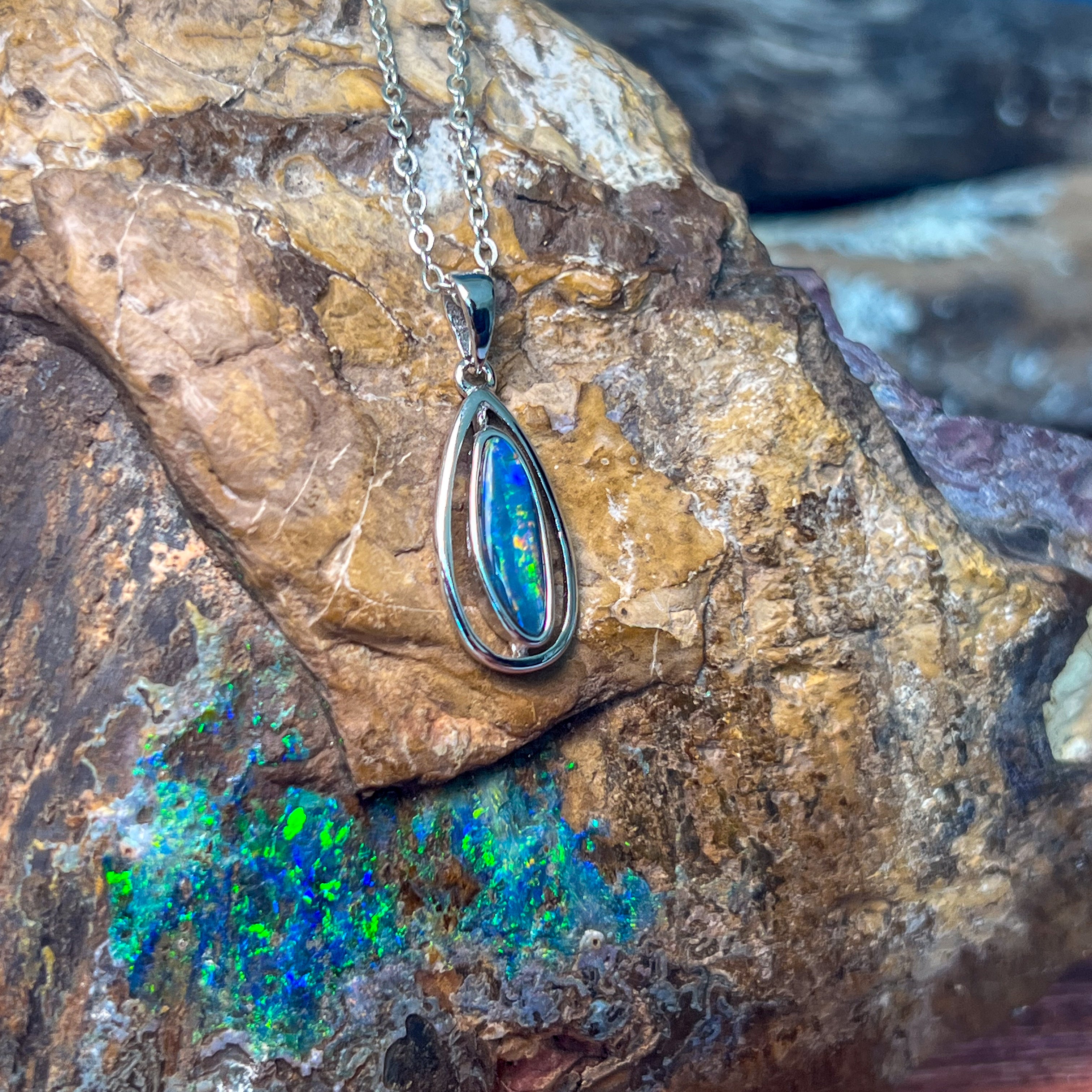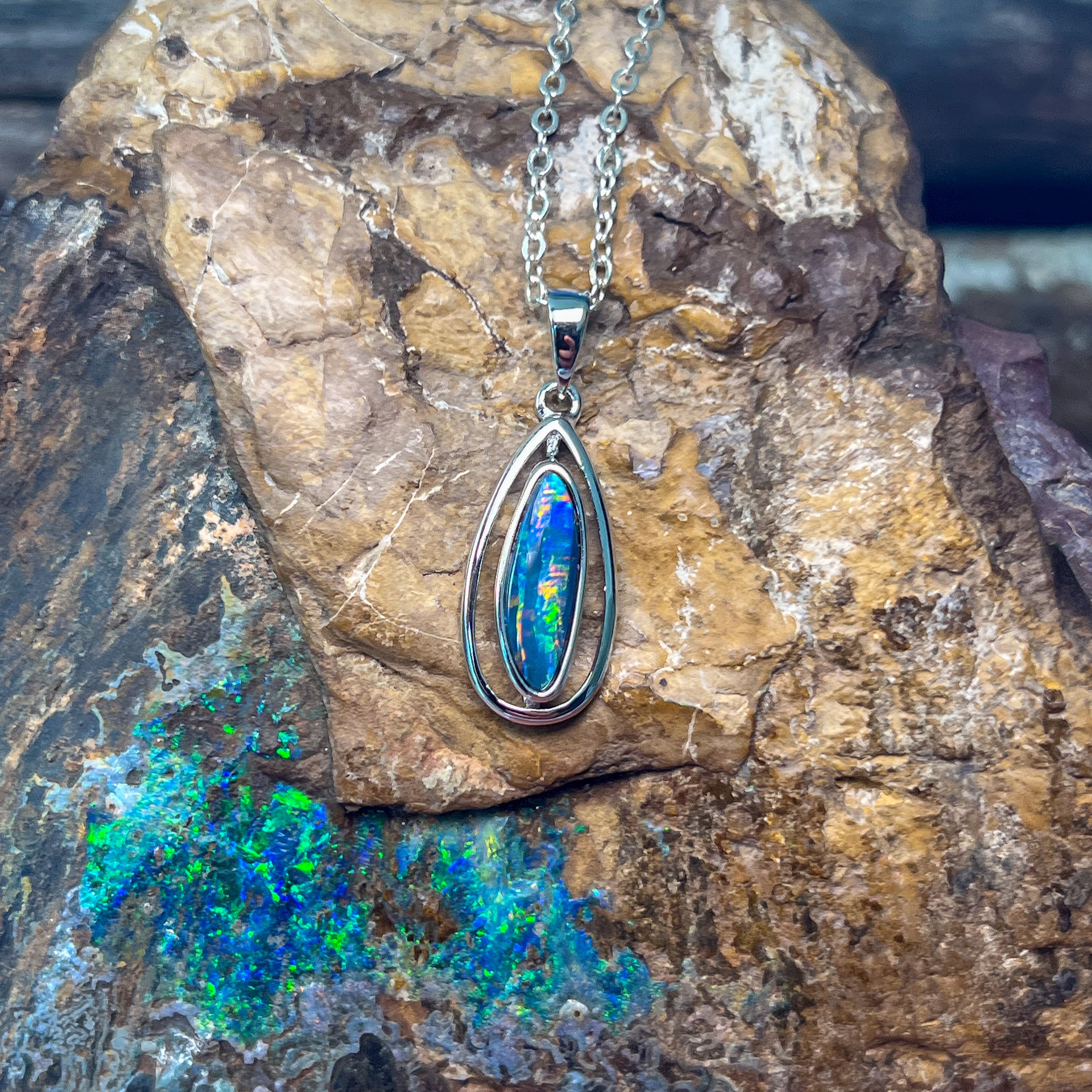 Sterling Silver Pear shape double frame pendant Opal doublet