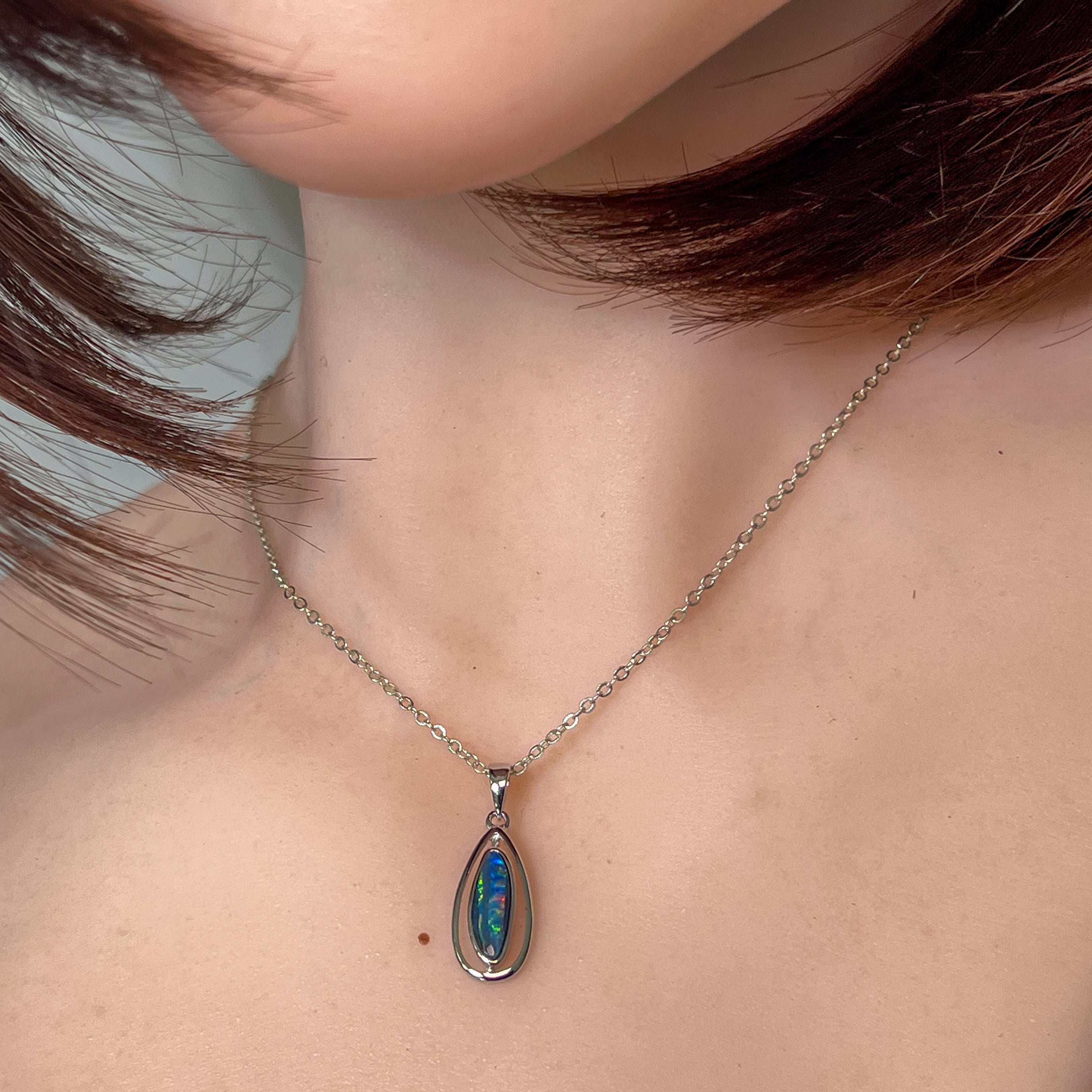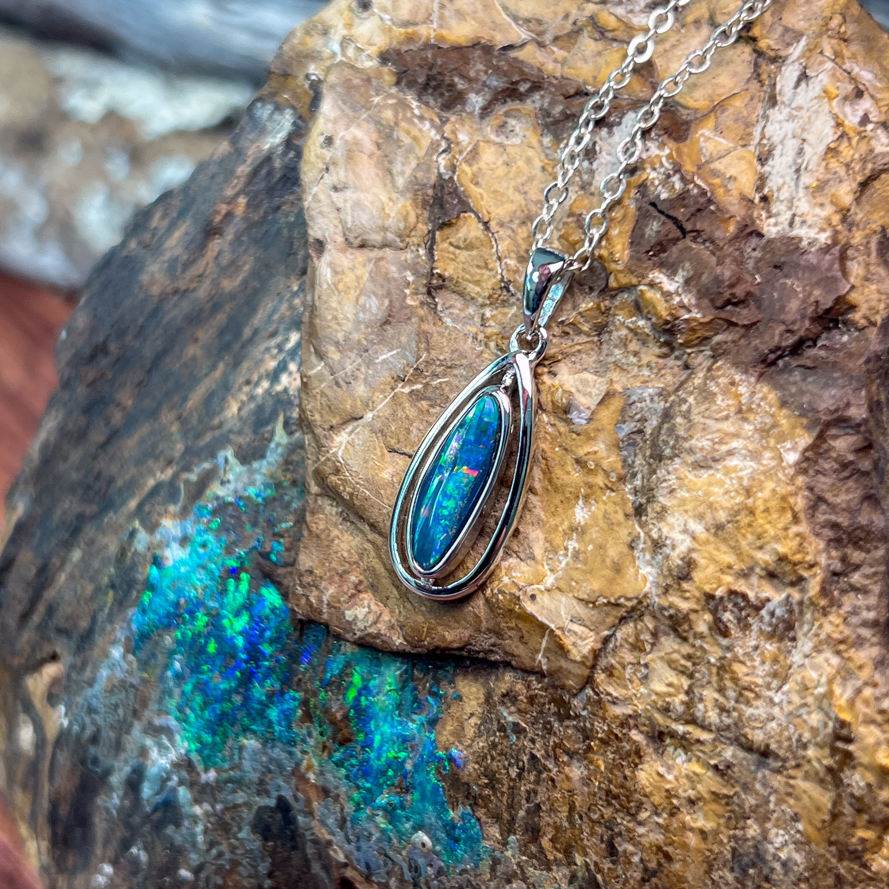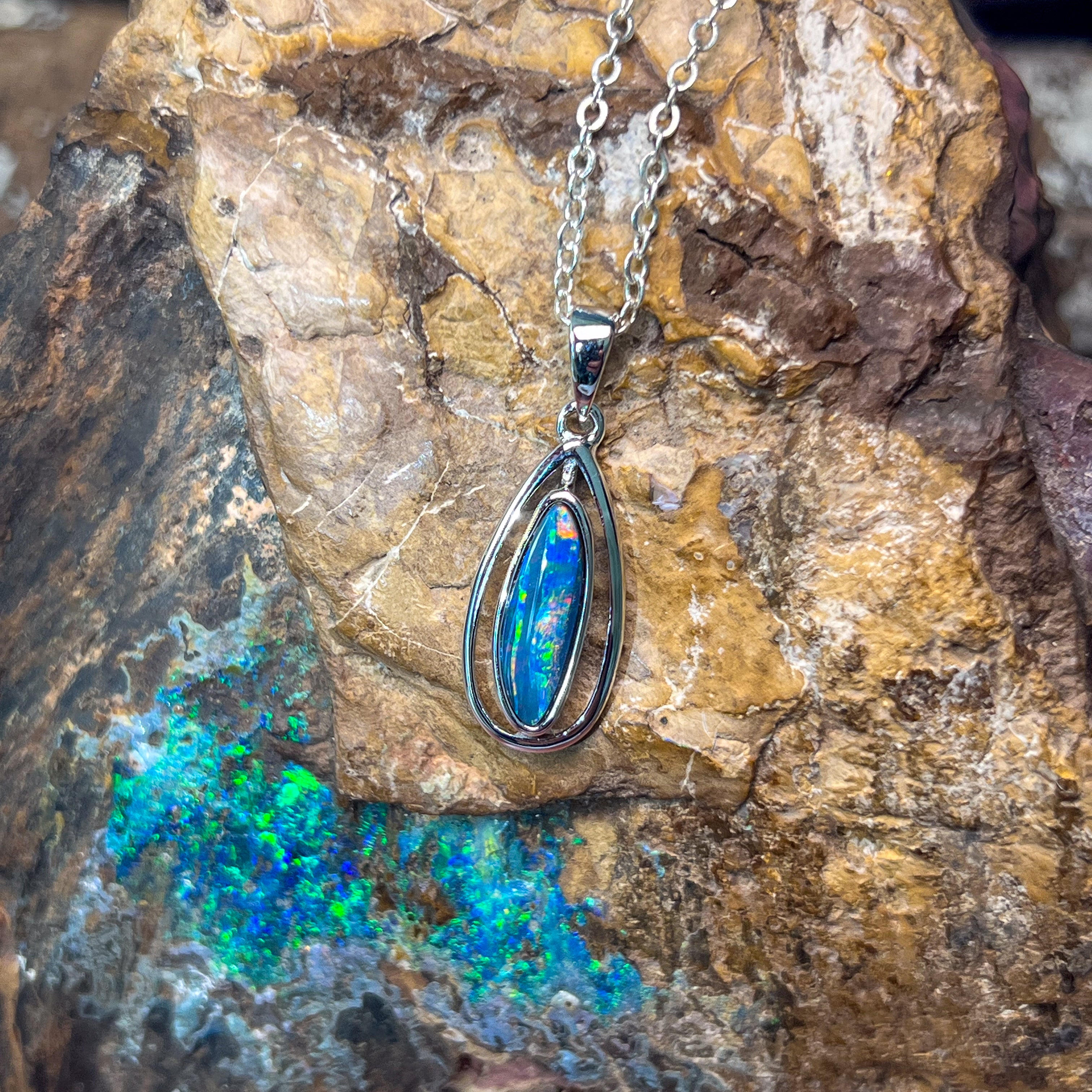 Sterling Silver Pear shape Opal doublet pendant 10.5x5.5mm