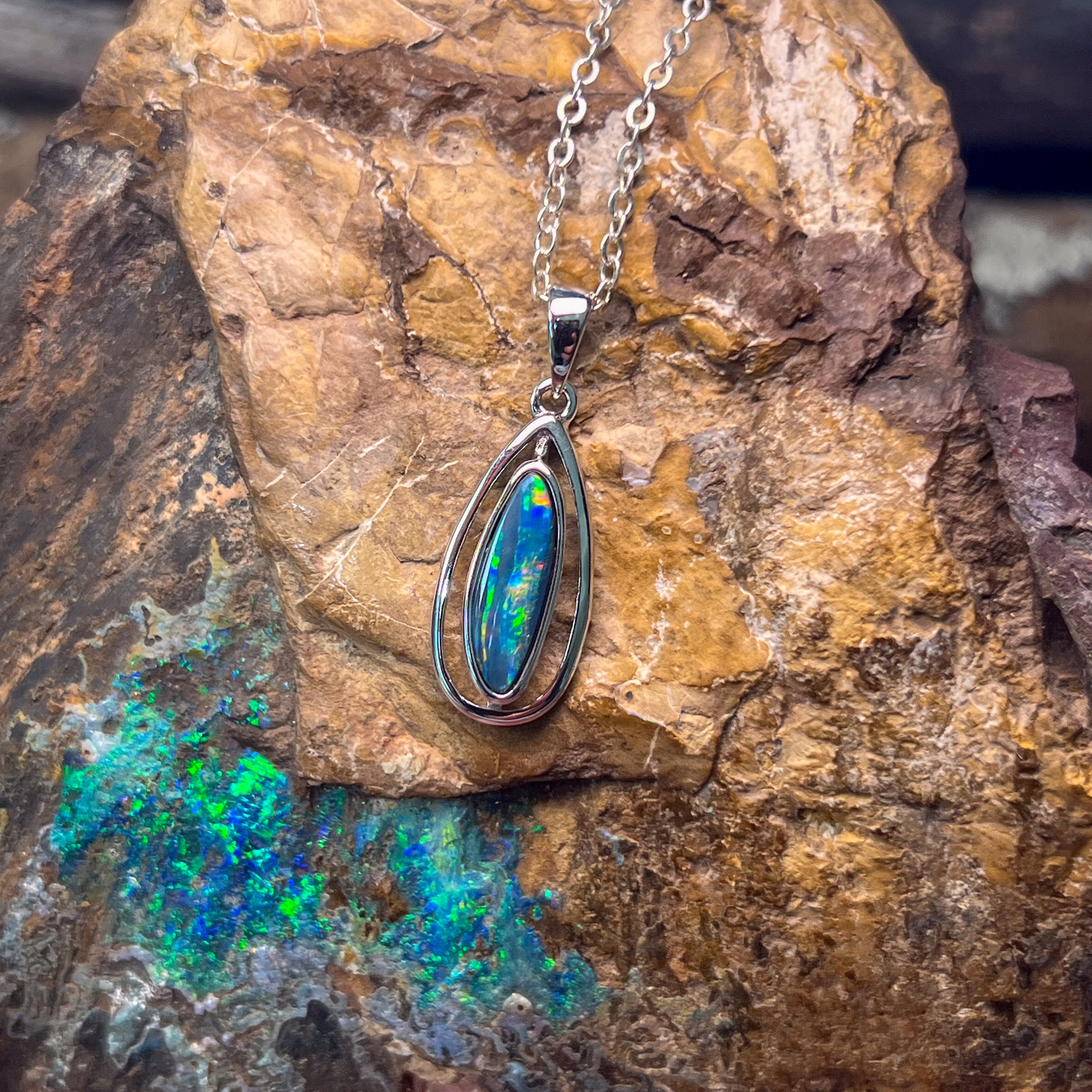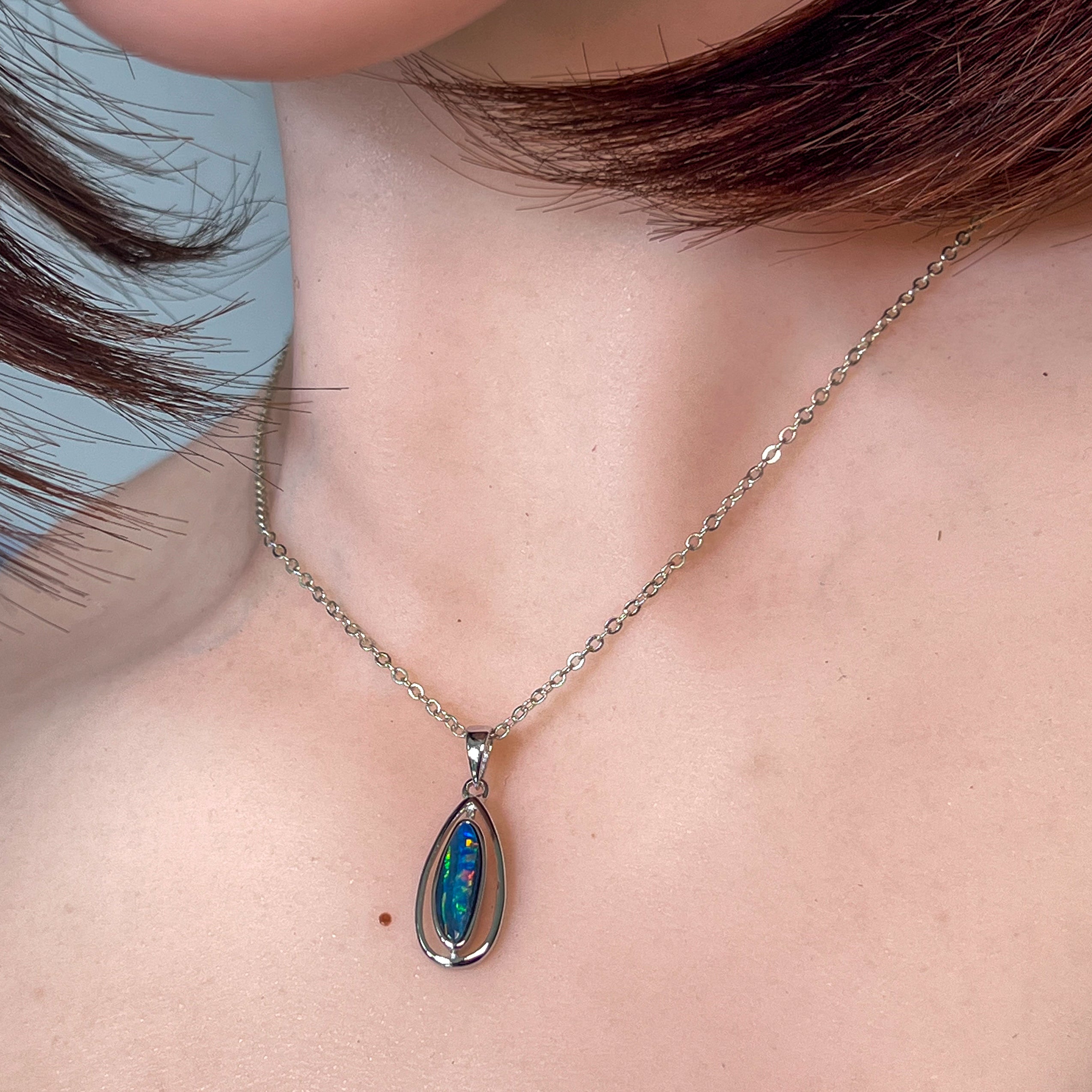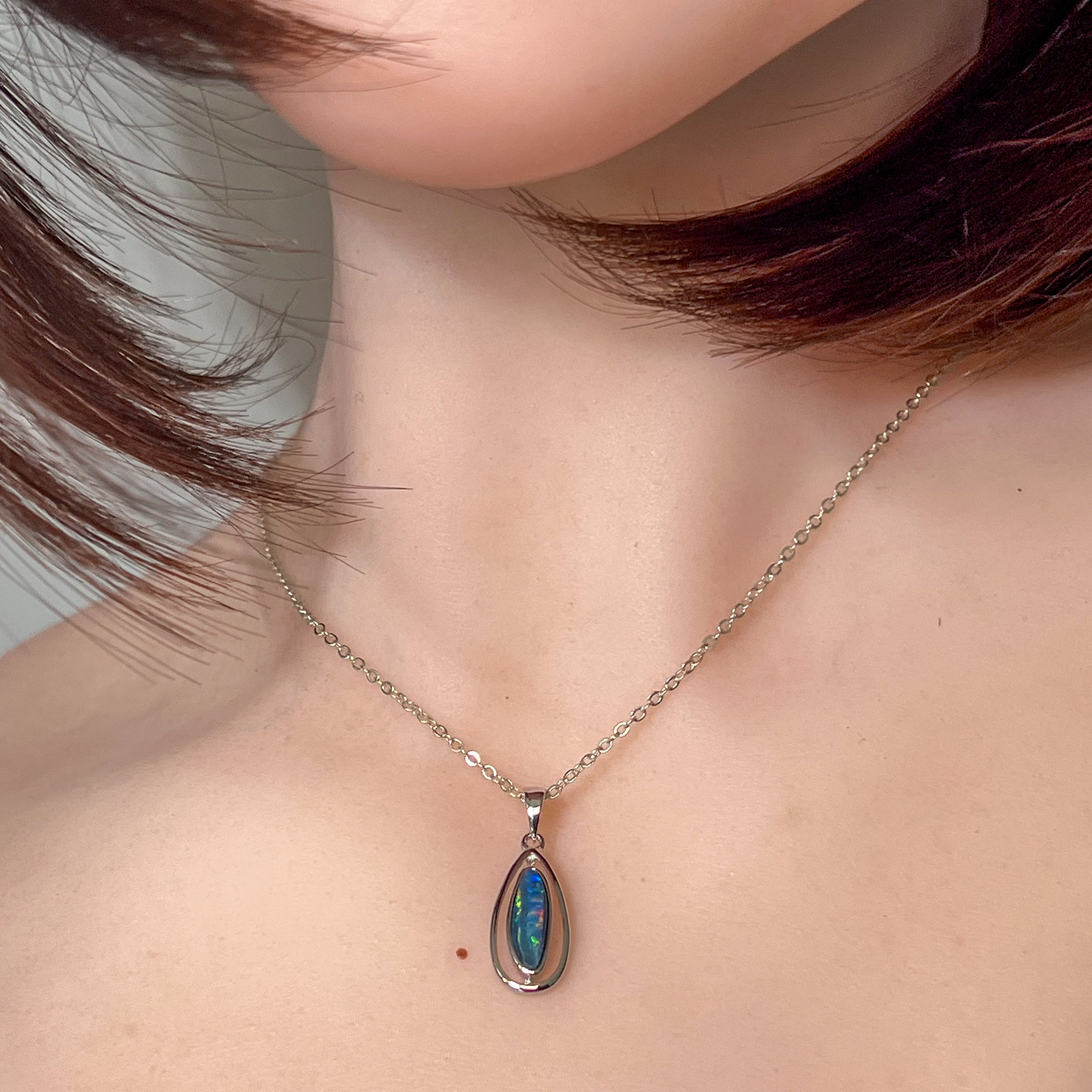 Sterling Silver Pear shape Opal doublet pendant 10.5x5.5mm