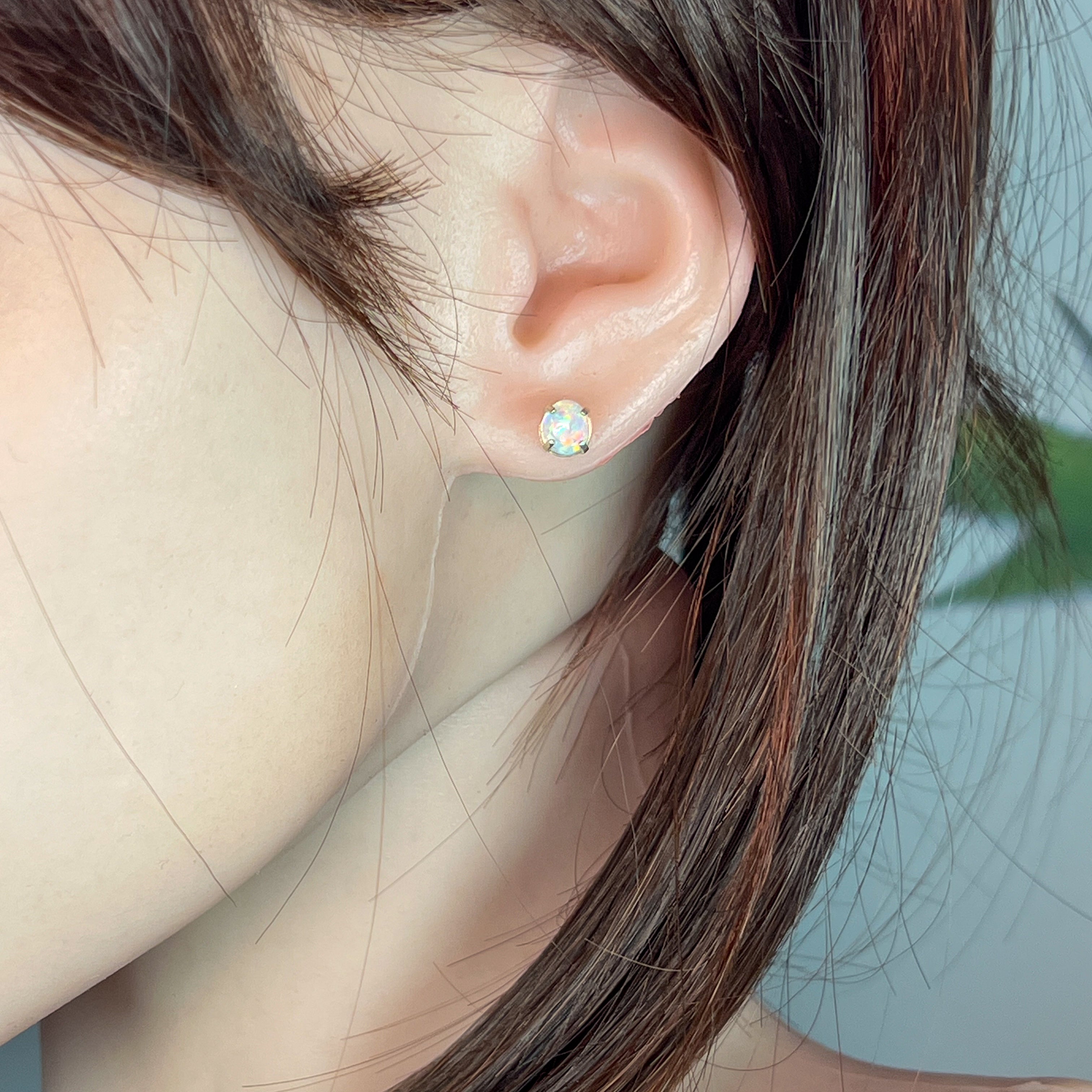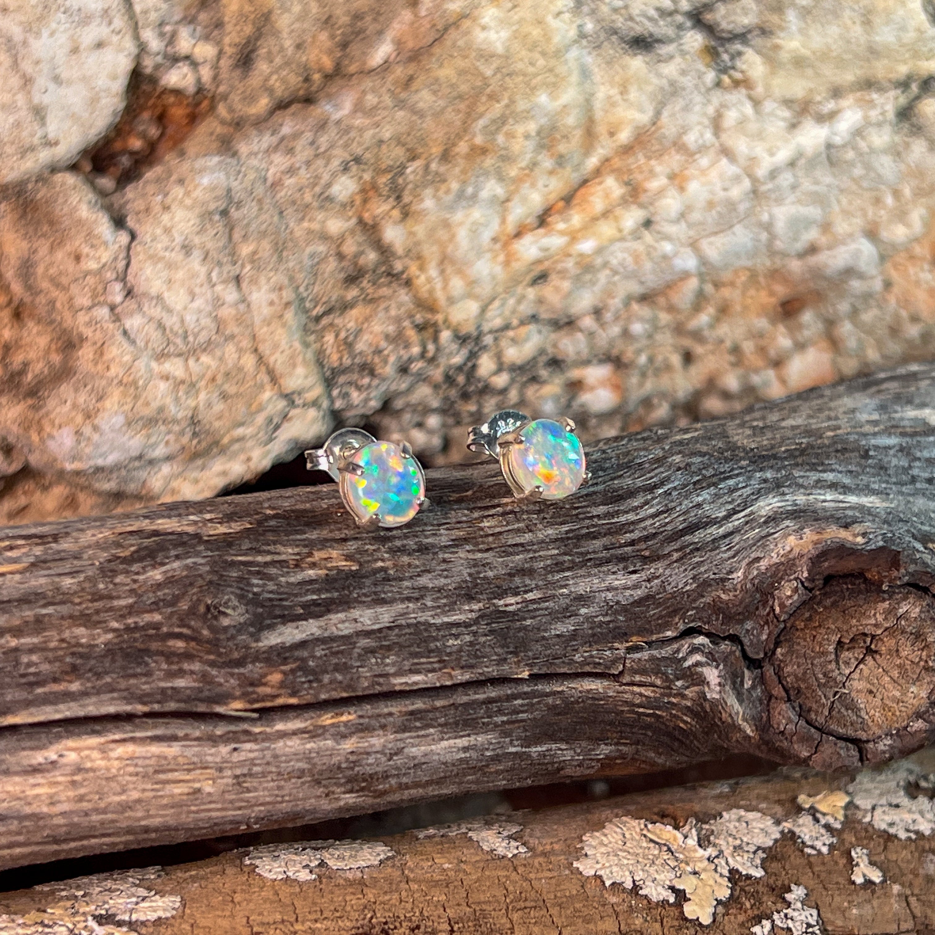 Sterling Silver round Crystal Opal 5.4mm stud earrings