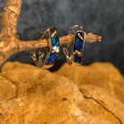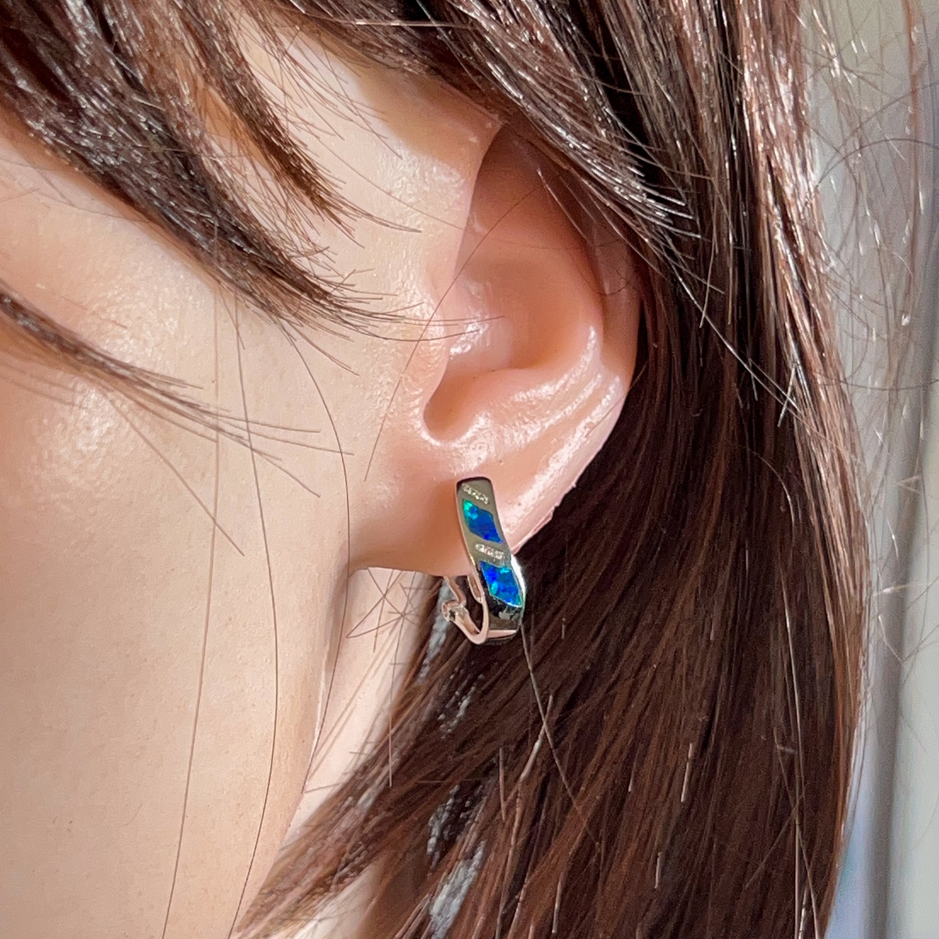 One pair of 14kt White Gold Opal inlay huggie earrings