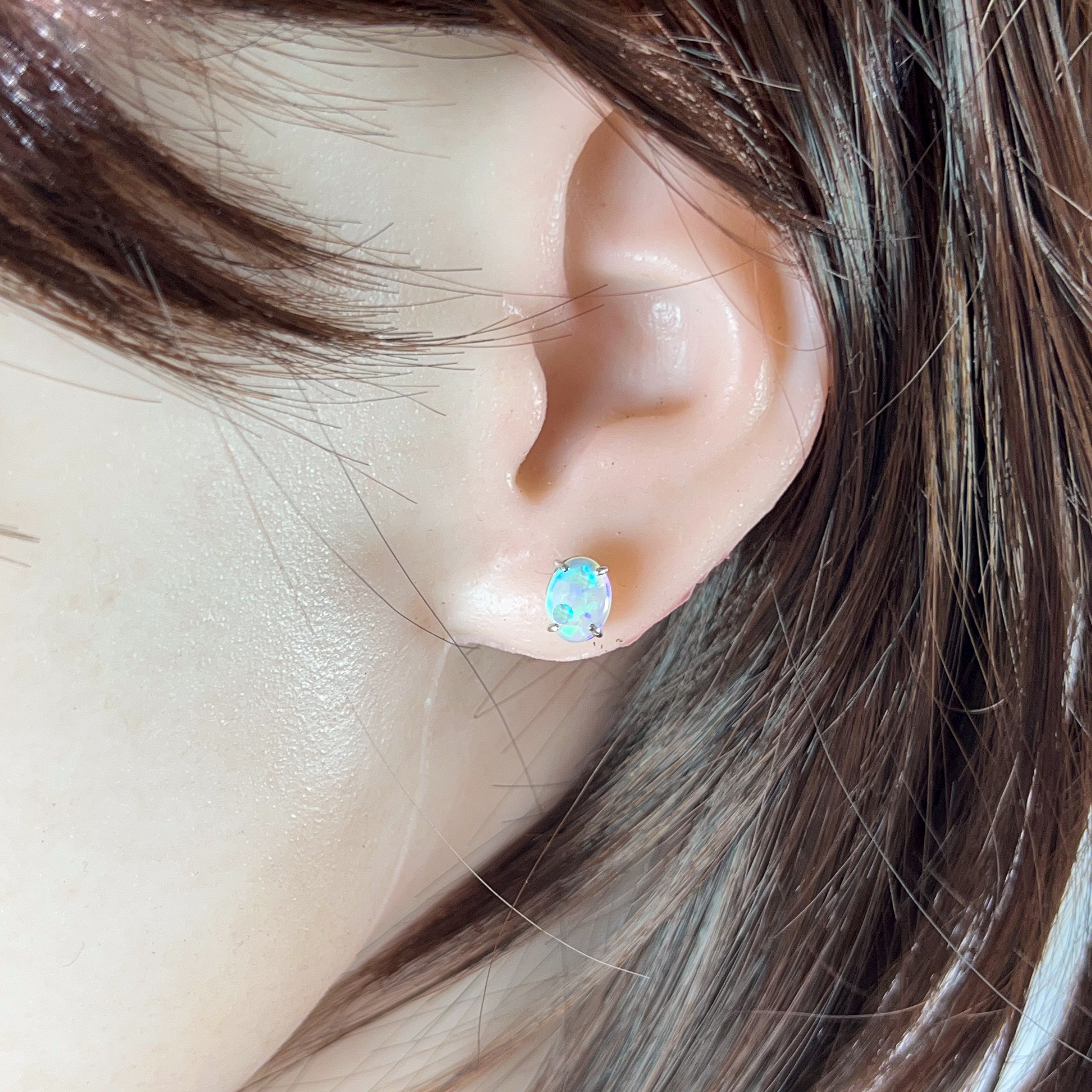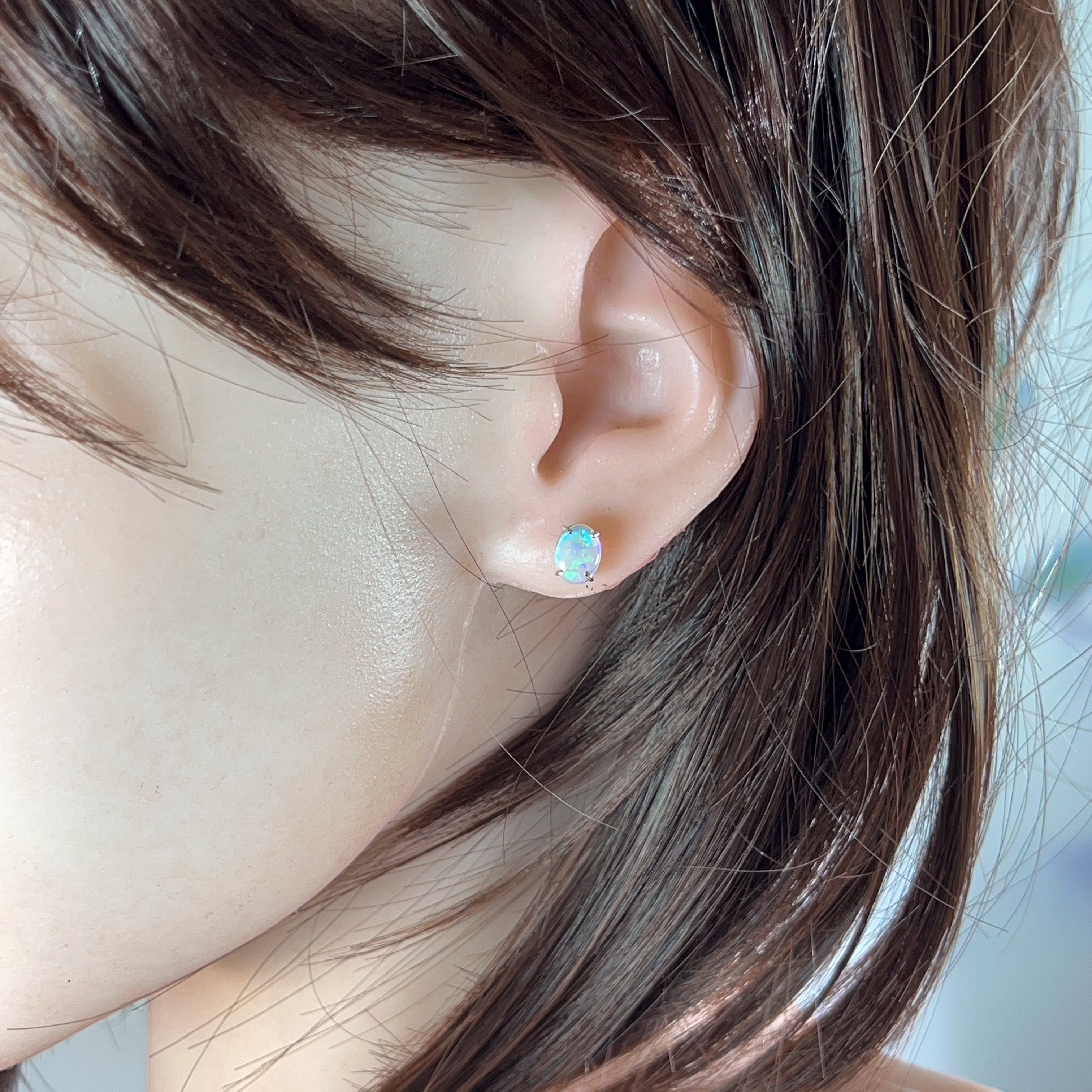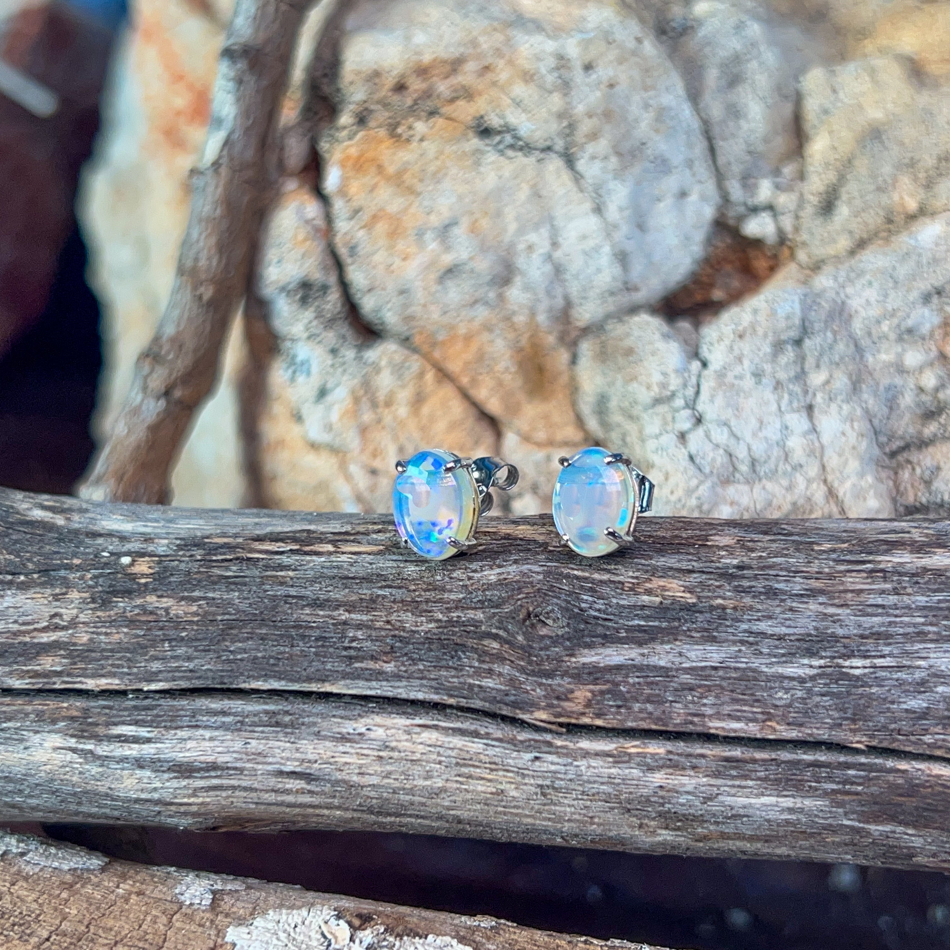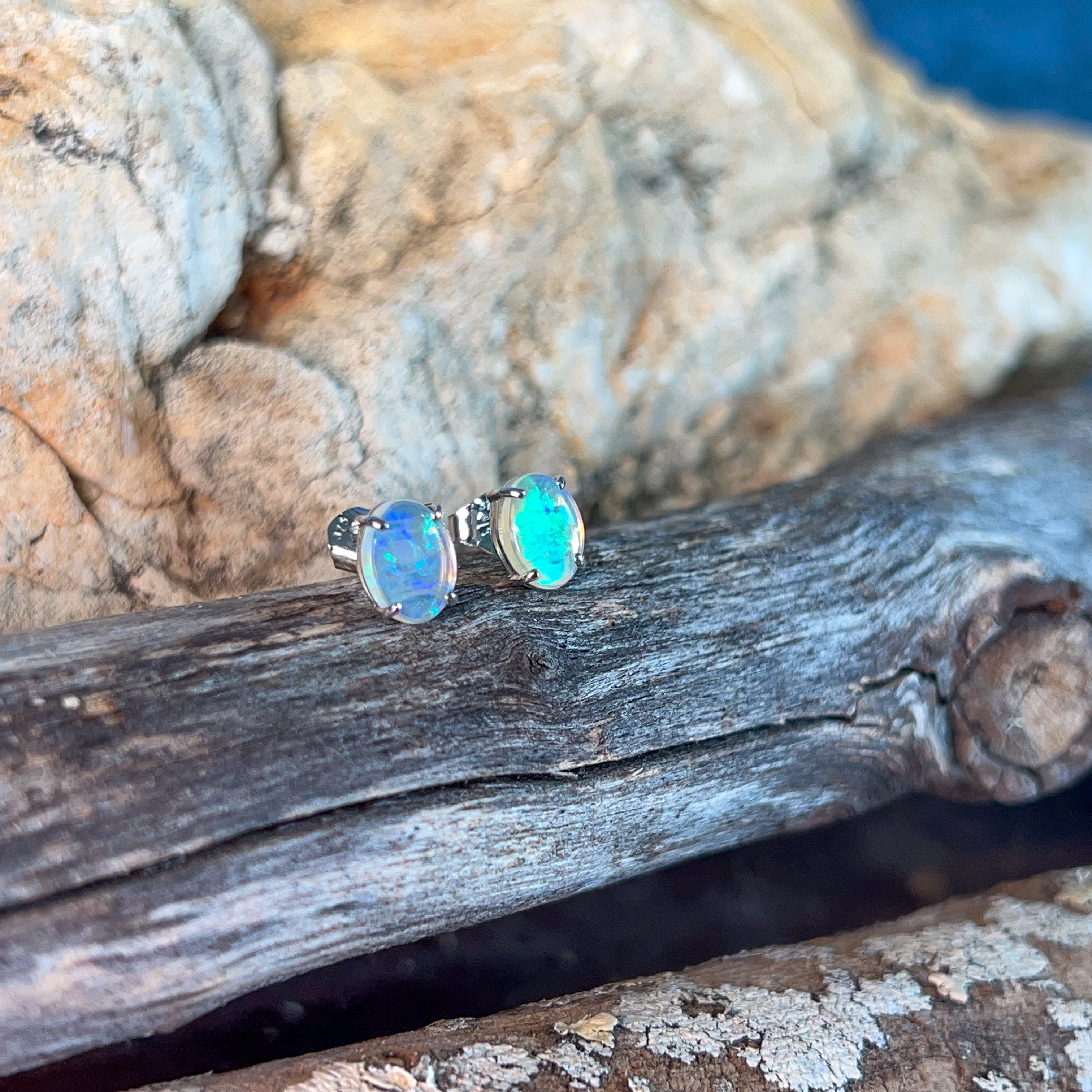 9kt White Gold 8x6mm Crystal Opal 1.3ct studs