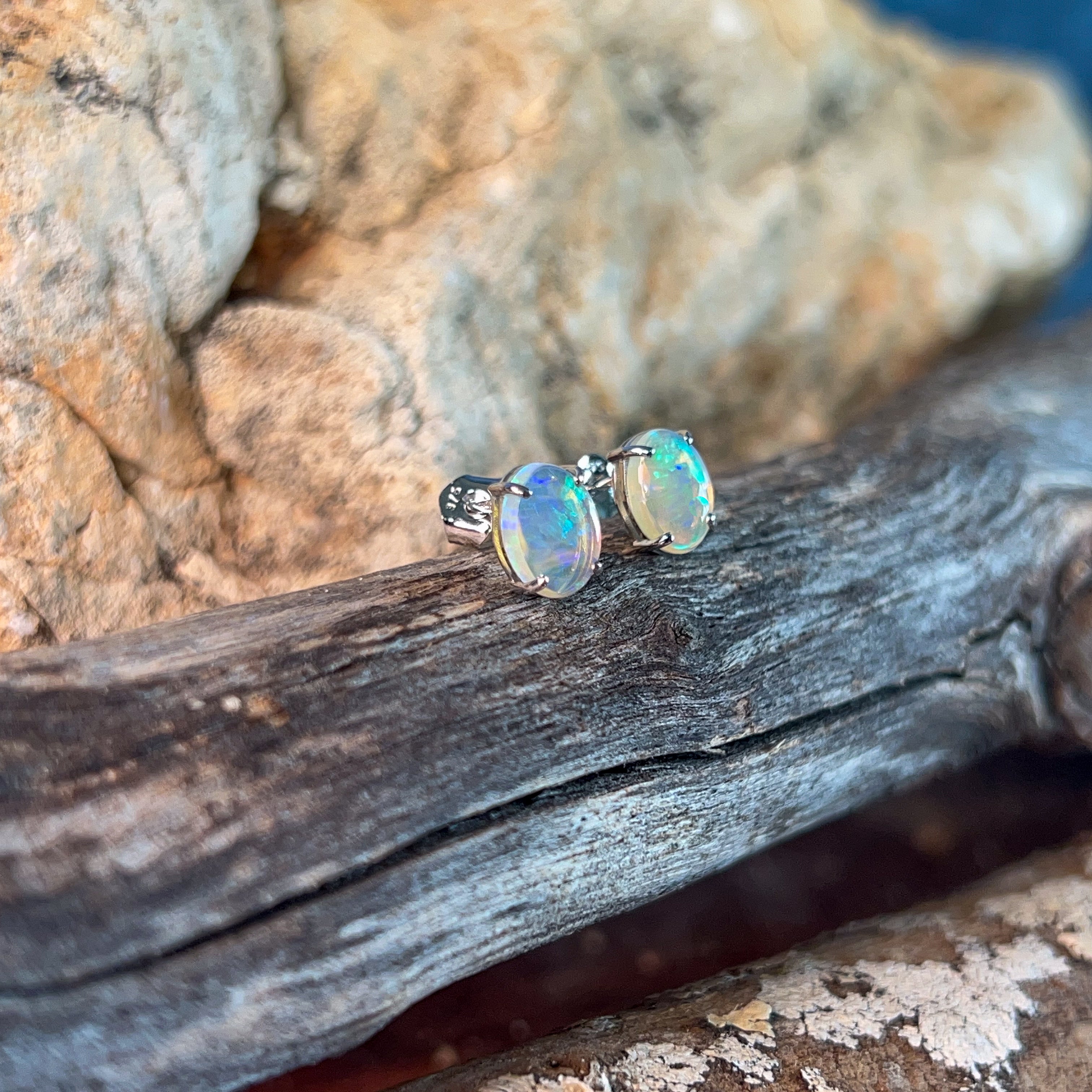 Elevate your everyday elegance with these exquisite 9kt white gold stud earrings, each showcasing a stunning 8x6mm crystal opal weighing 1.3ct. The mesmerising play of colour in these precious Australian opals catches the light beautifully, creating a sophisticated sparkle that complements any complexion. Crafted in premium white gold, these timeless studs offer the perfect balance of luxury and wearability—refined enough for special occasions, yet versatile enough for daily wear. A true investment piece that celebrates the natural beauty of fine gemstones.