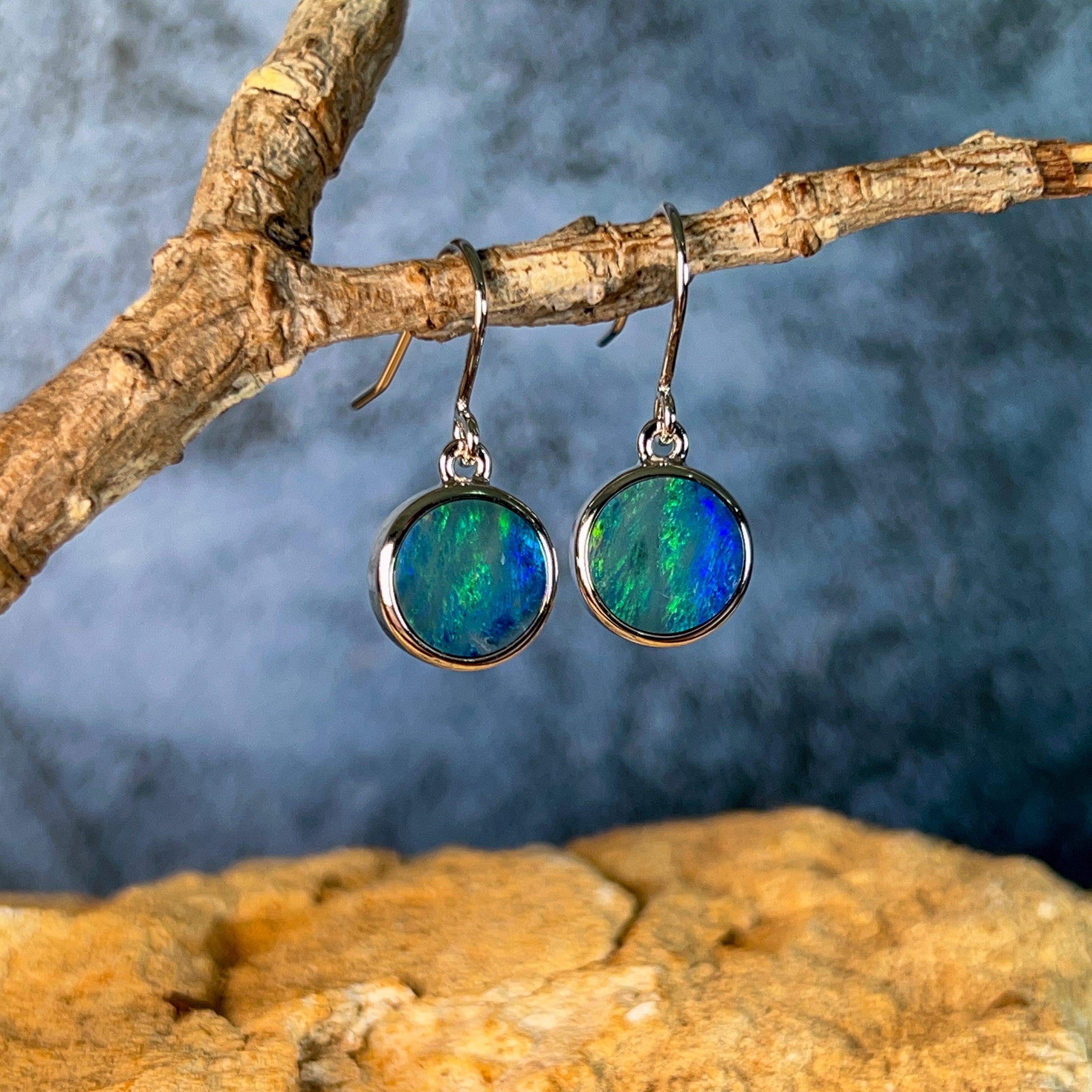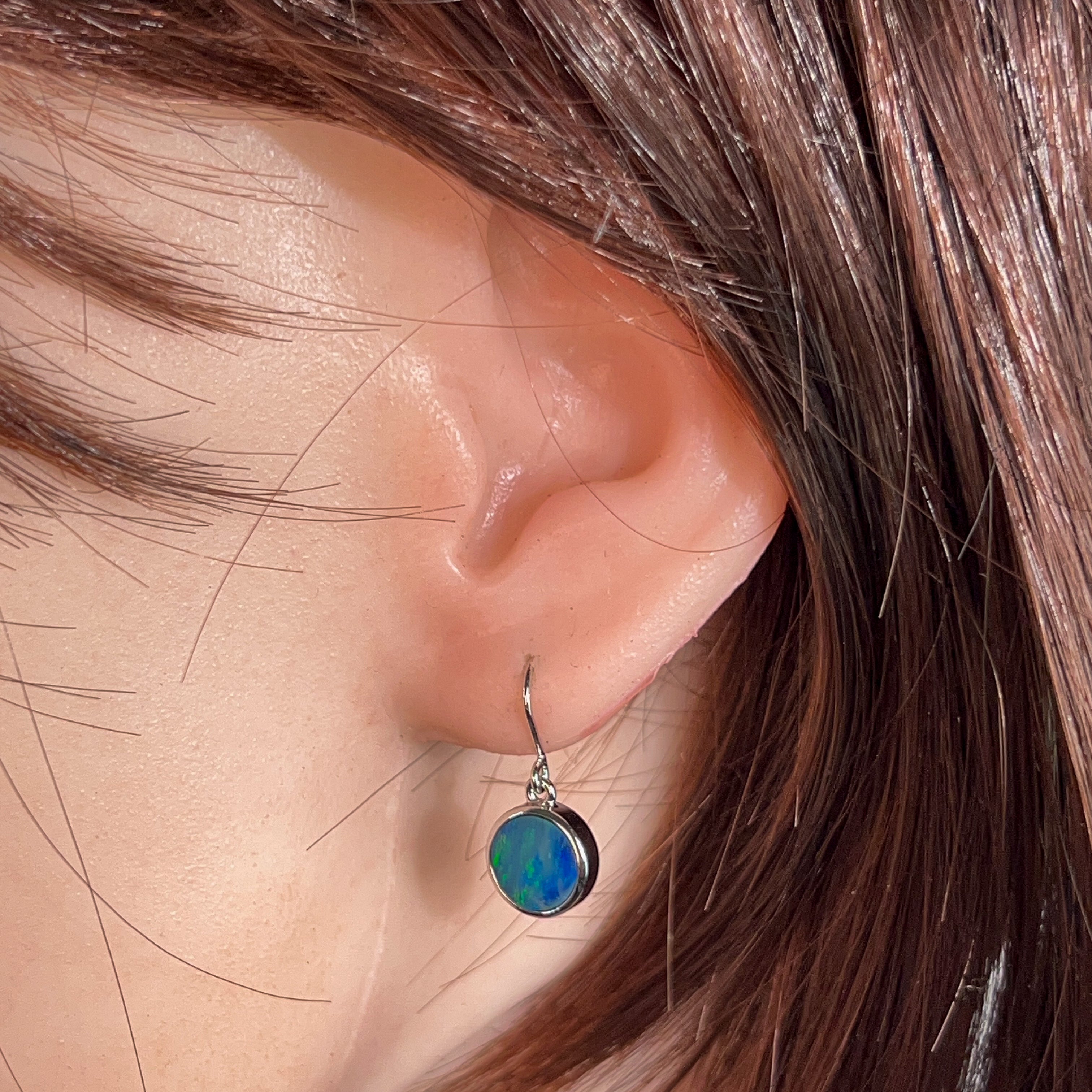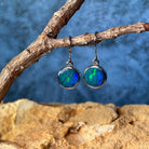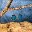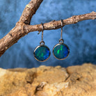 Sterling Silver dangling round Opal doublet 3ct earrings
