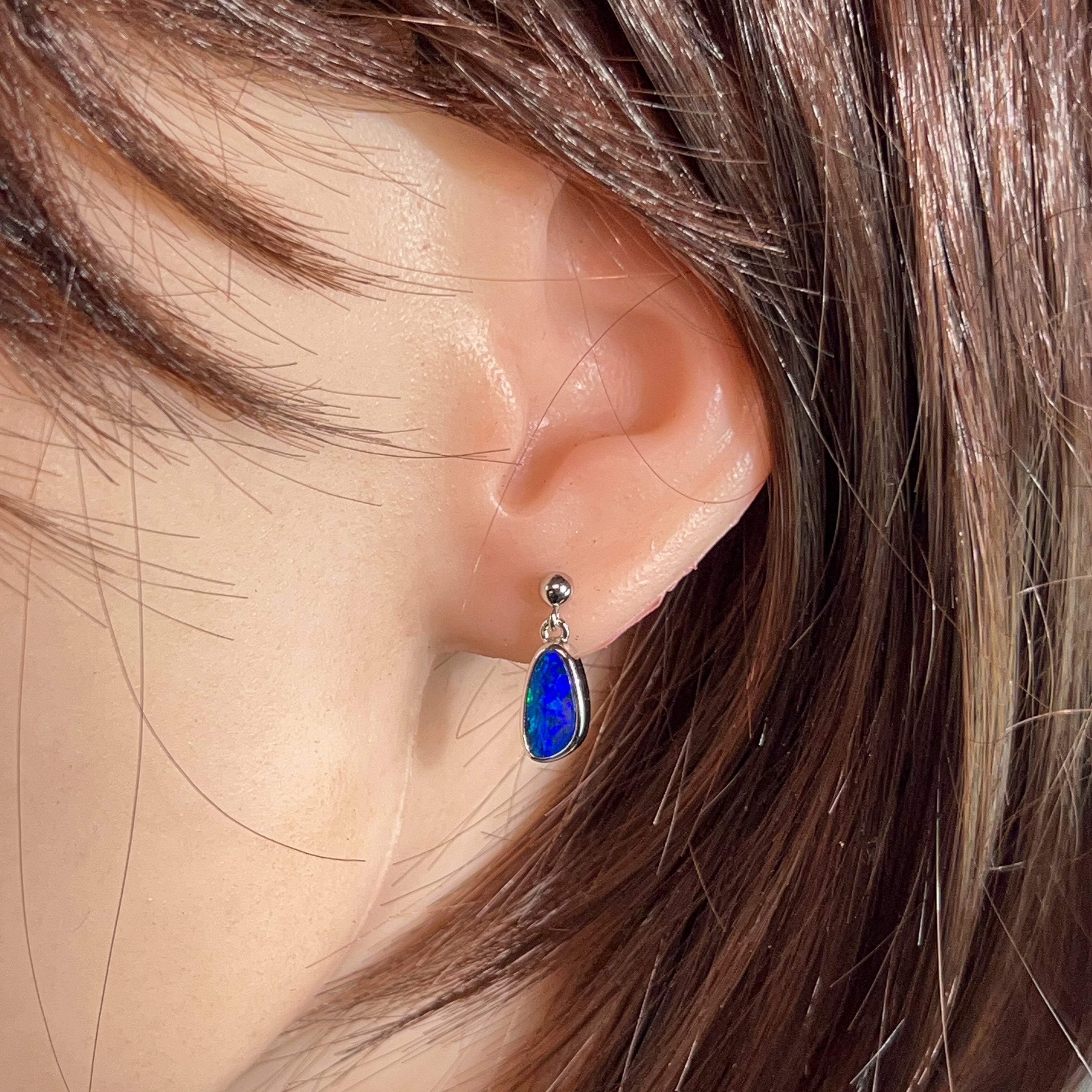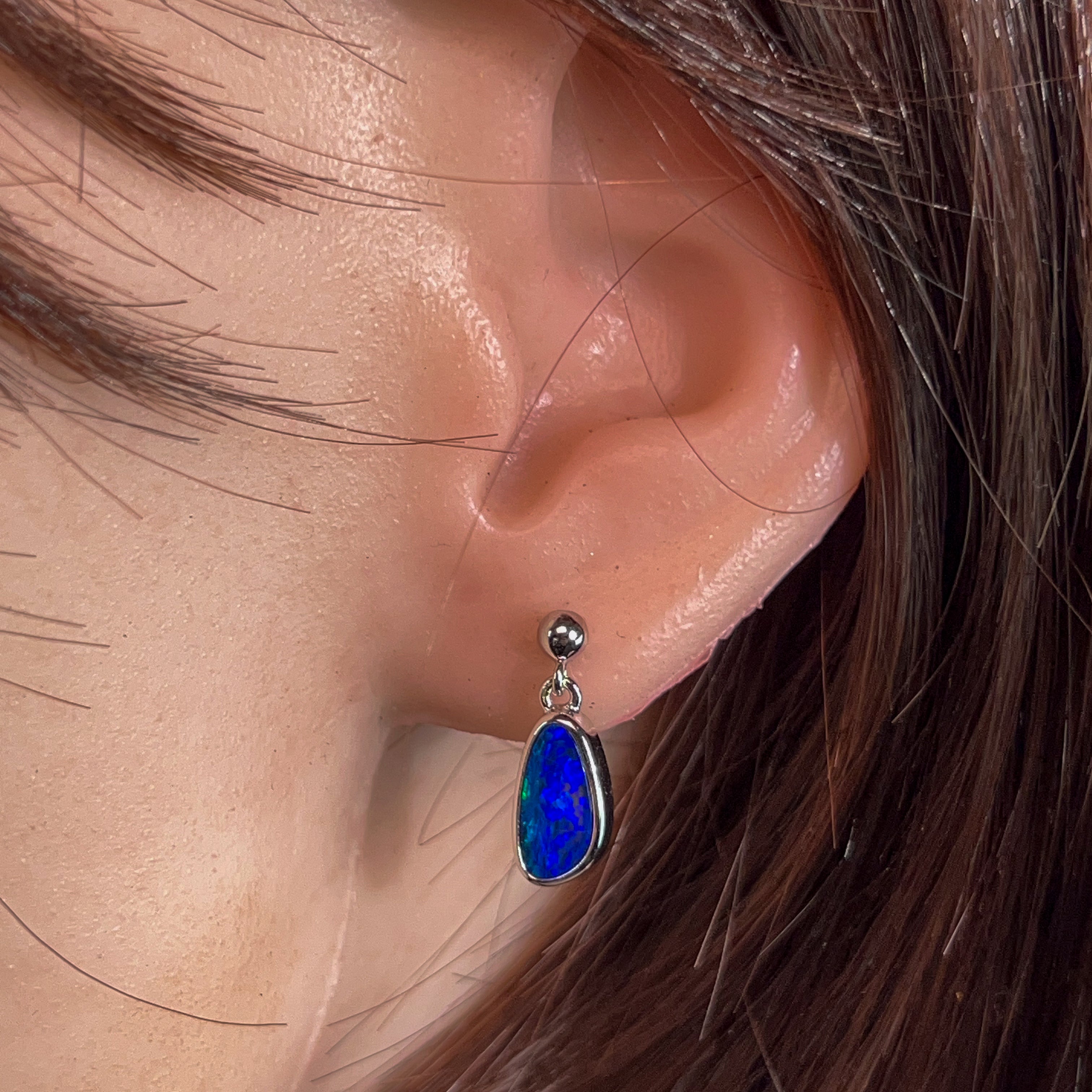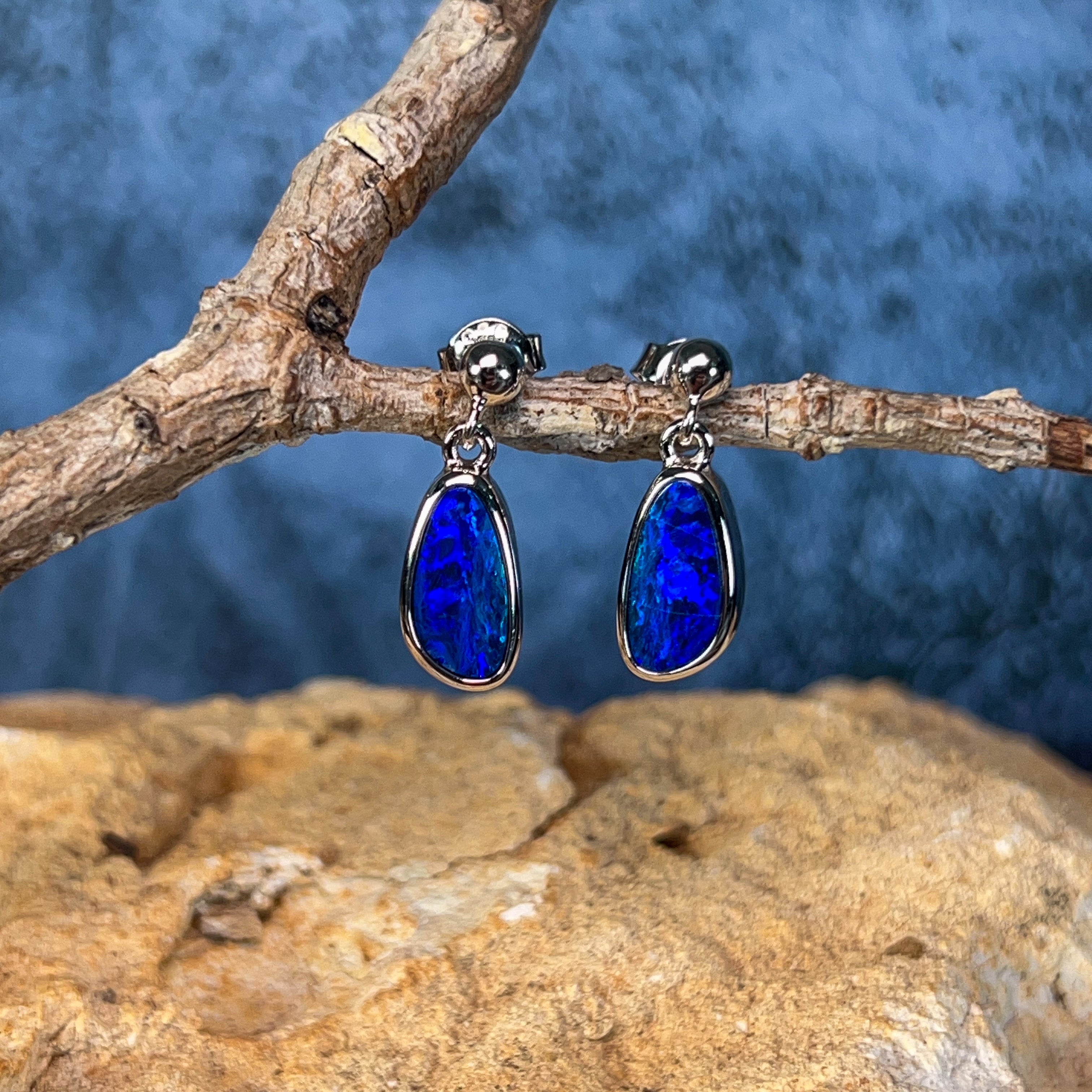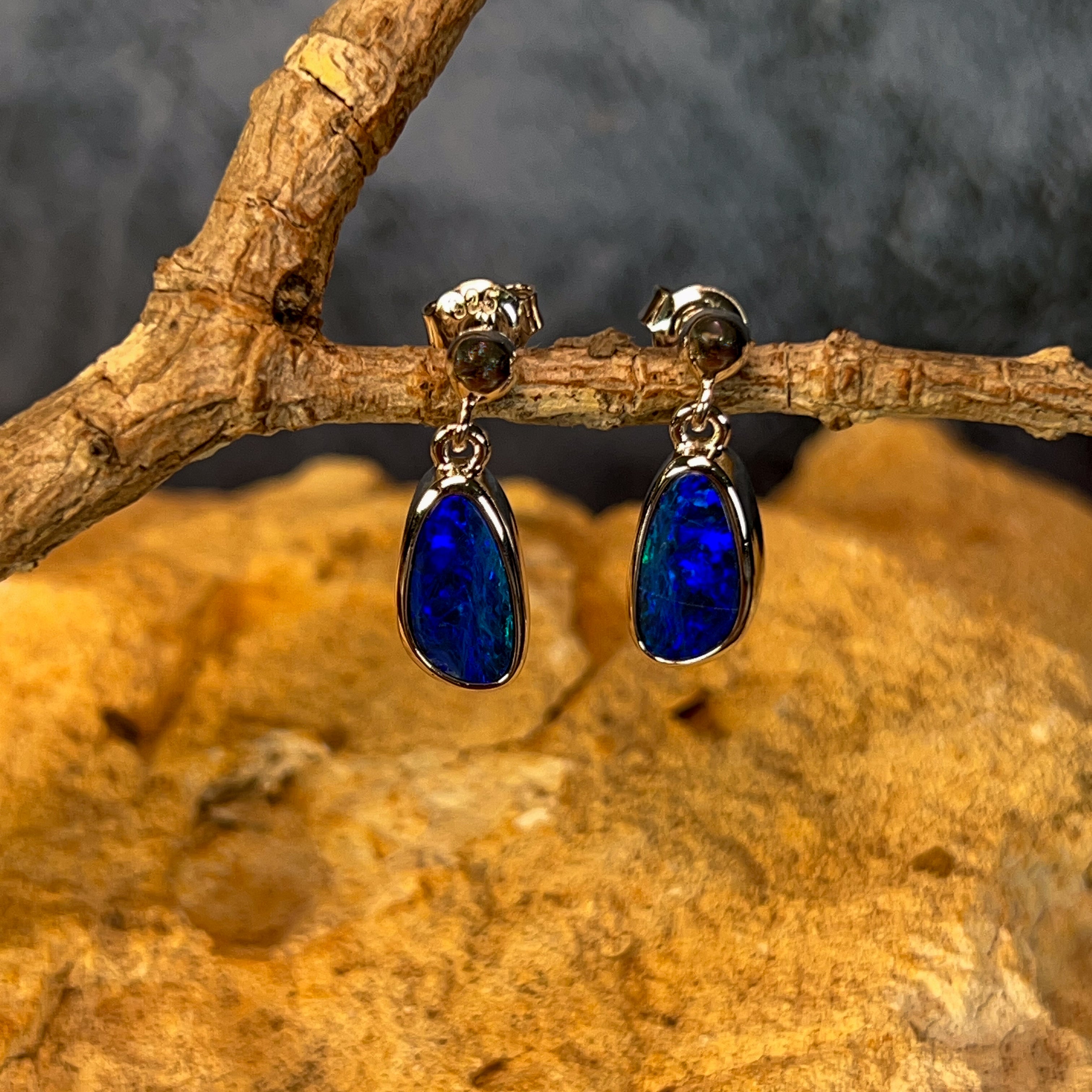 Dive into elegance with these stunning sterling silver drop earrings, showcasing 2.4 carats of mesmerising opal. Each stone dances with deep blue hues and flashes of colour that catch the light beautifully. The classic drop style keeps things timeless while the precious opal adds that wow factor. Perfect for adding a touch of sophistication to any occasion—whether you're dressing up or keeping it casual. These beauties are sure to become your go-to pair.