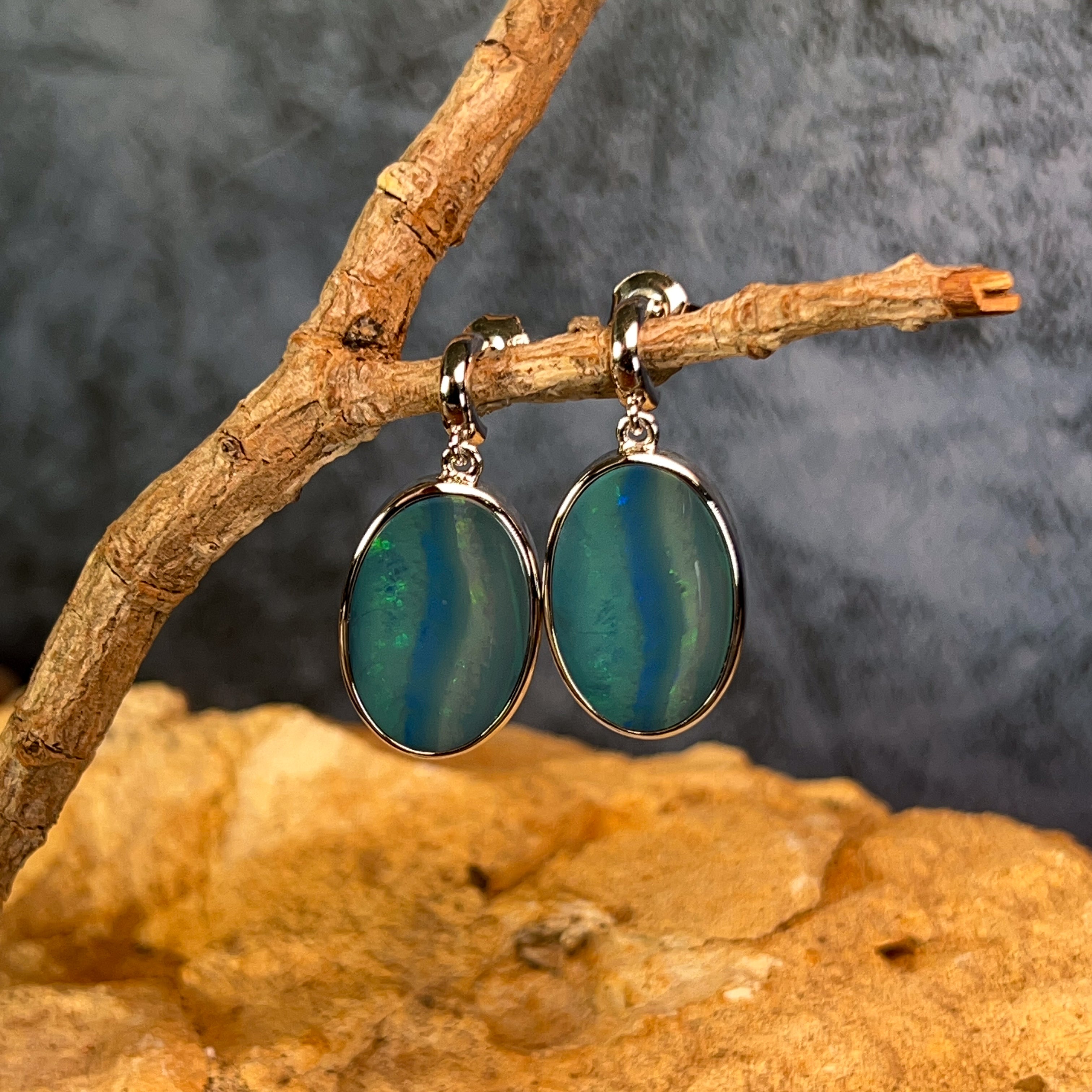 Sterling Silver large Oval Opal doublet earrings 10.4ct