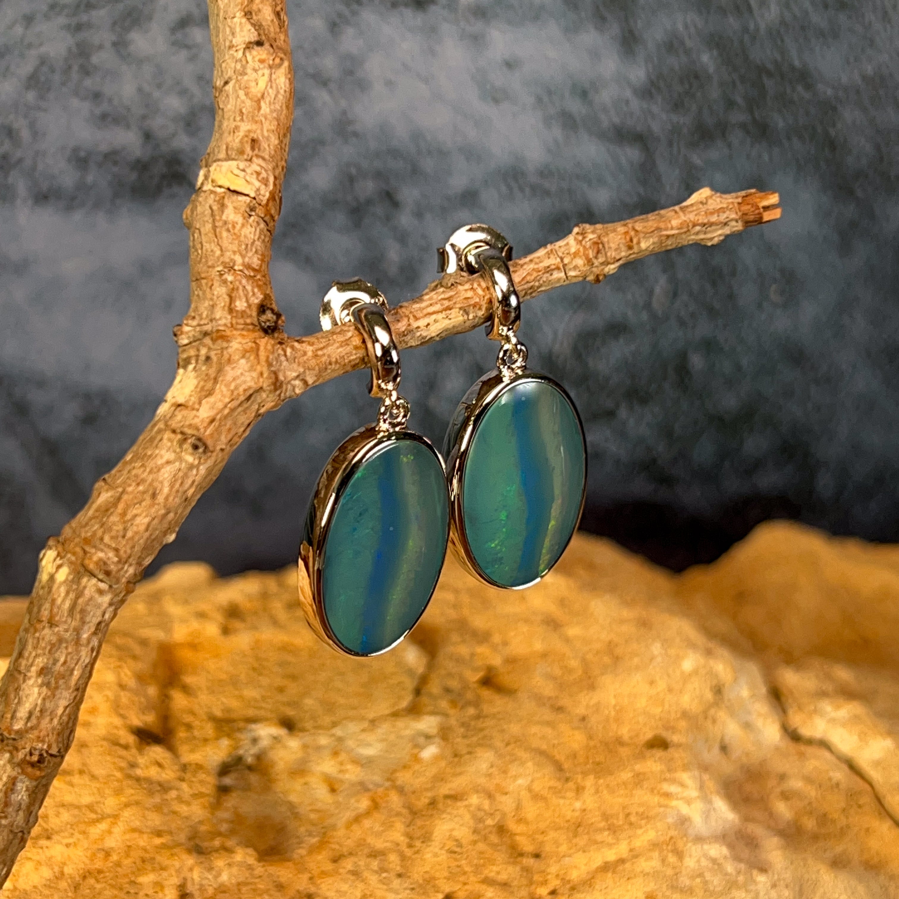 Make a statement with these stunning sterling silver oval opal doublet earrings, weighing an impressive 10.4 carats. Each piece showcases the mesmerizing play-of-colour that opals are renowned for, with the doublet construction ensuring durability and brilliance. The generous size commands attention while remaining elegantly wearable, perfect for those who appreciate bold, eye-catching jewellery. Crafted in quality sterling silver, these earrings combine timeless sophistication with contemporary flair. Ideal for special occasions or elevating your everyday style, they're a versatile investment piece that celebrates the natural beauty of Australian opals.