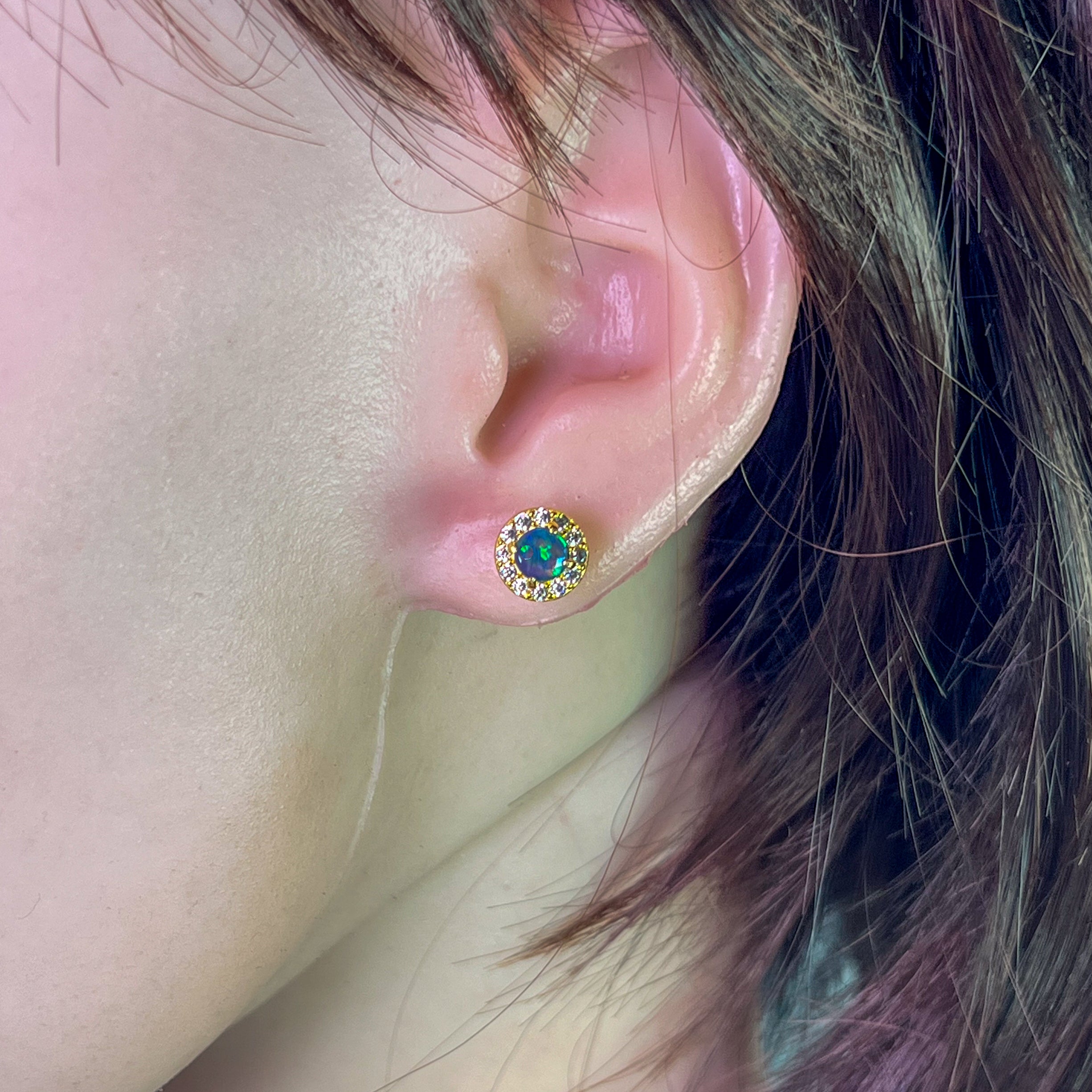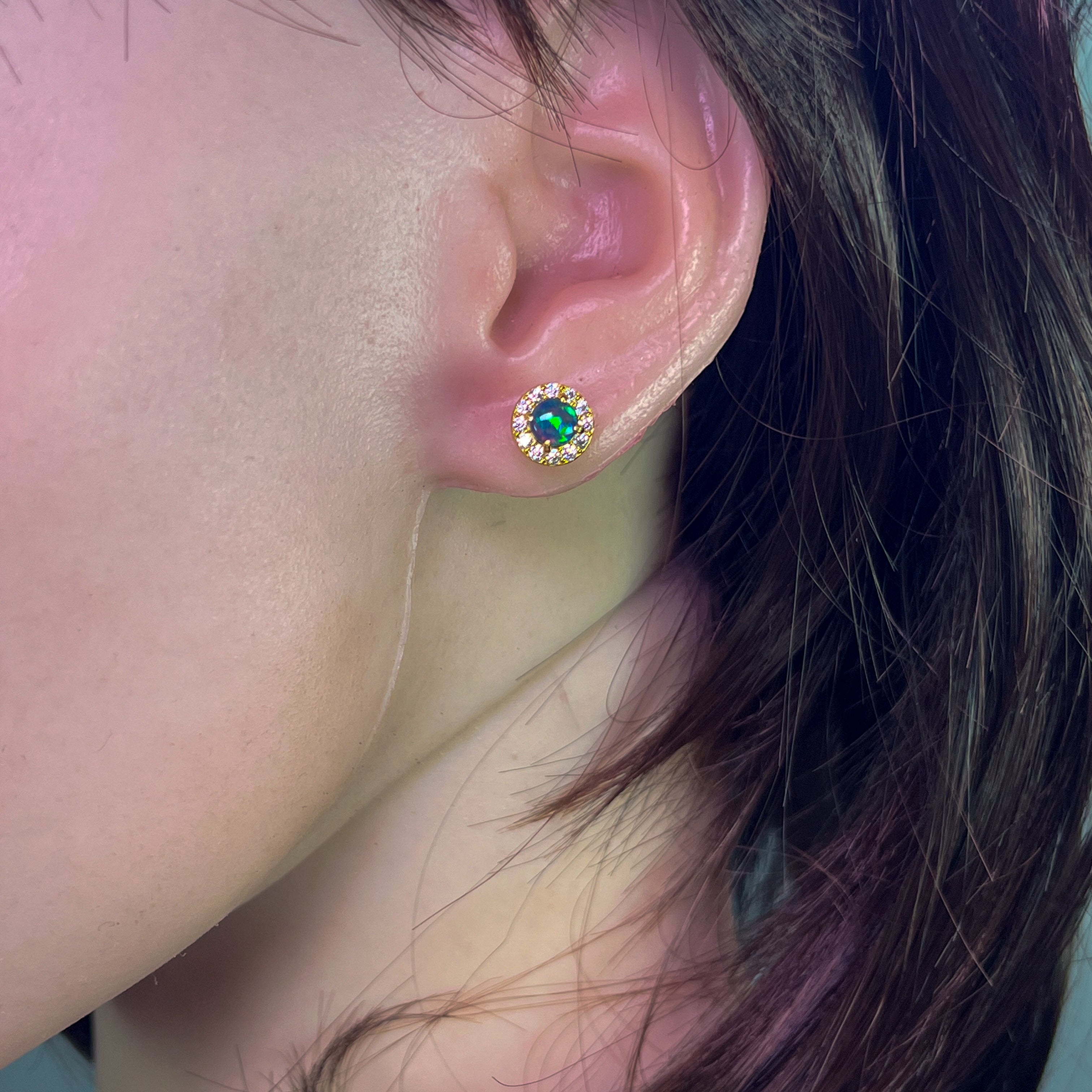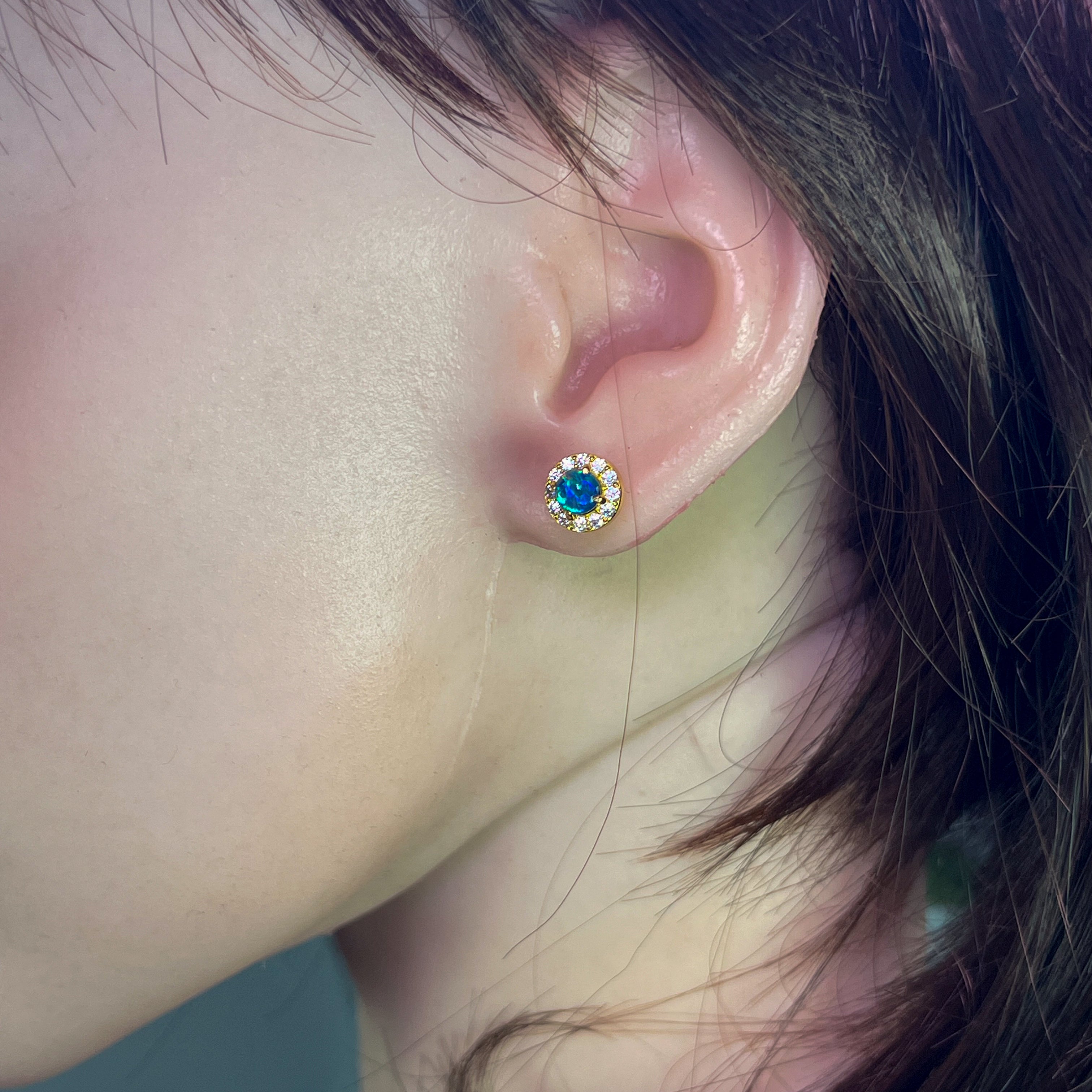 You will love opal cluster earrings if you want the earrings to have a few stones highlighting the opal's beauty. One example of it is the Two Australian Opal Triplet 4mm. It has cubic zirconia stones clustering and framing the central opal stone.