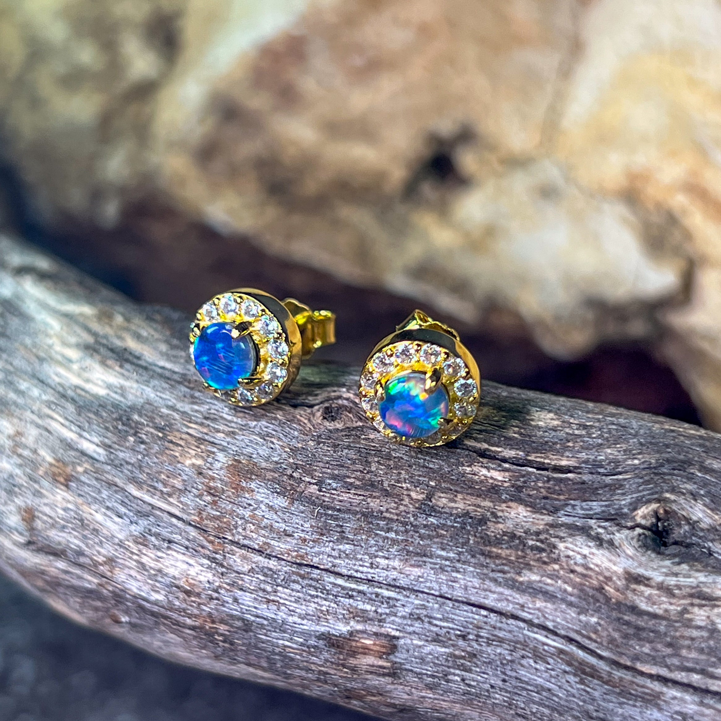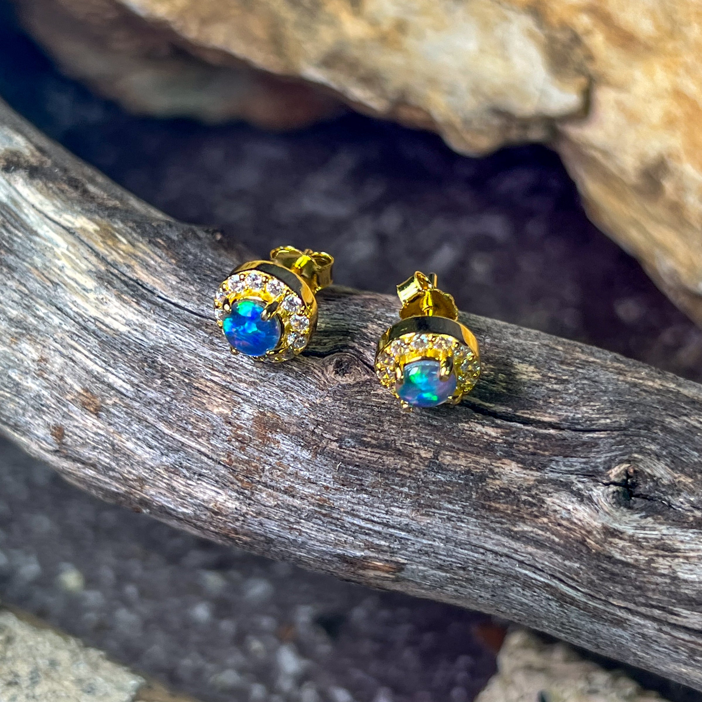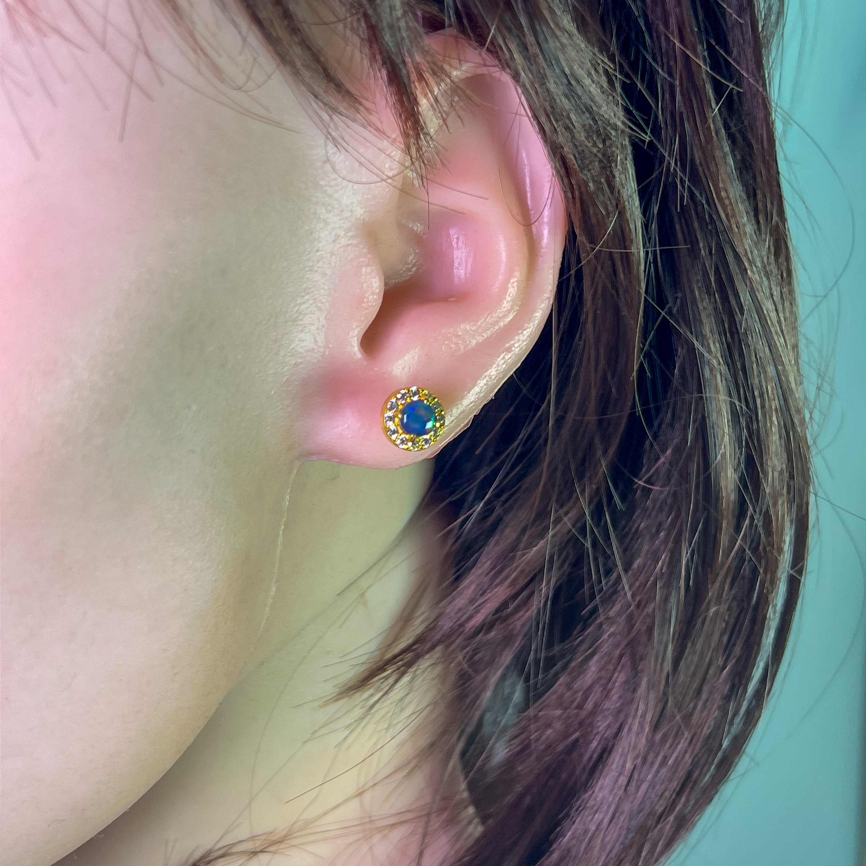 You will love opal cluster earrings if you want the earrings to have a few stones highlighting the opal's beauty. One example of it is the Two Australian Opal Triplet 4mm. It has cubic zirconia stones clustering and framing the central opal stone.