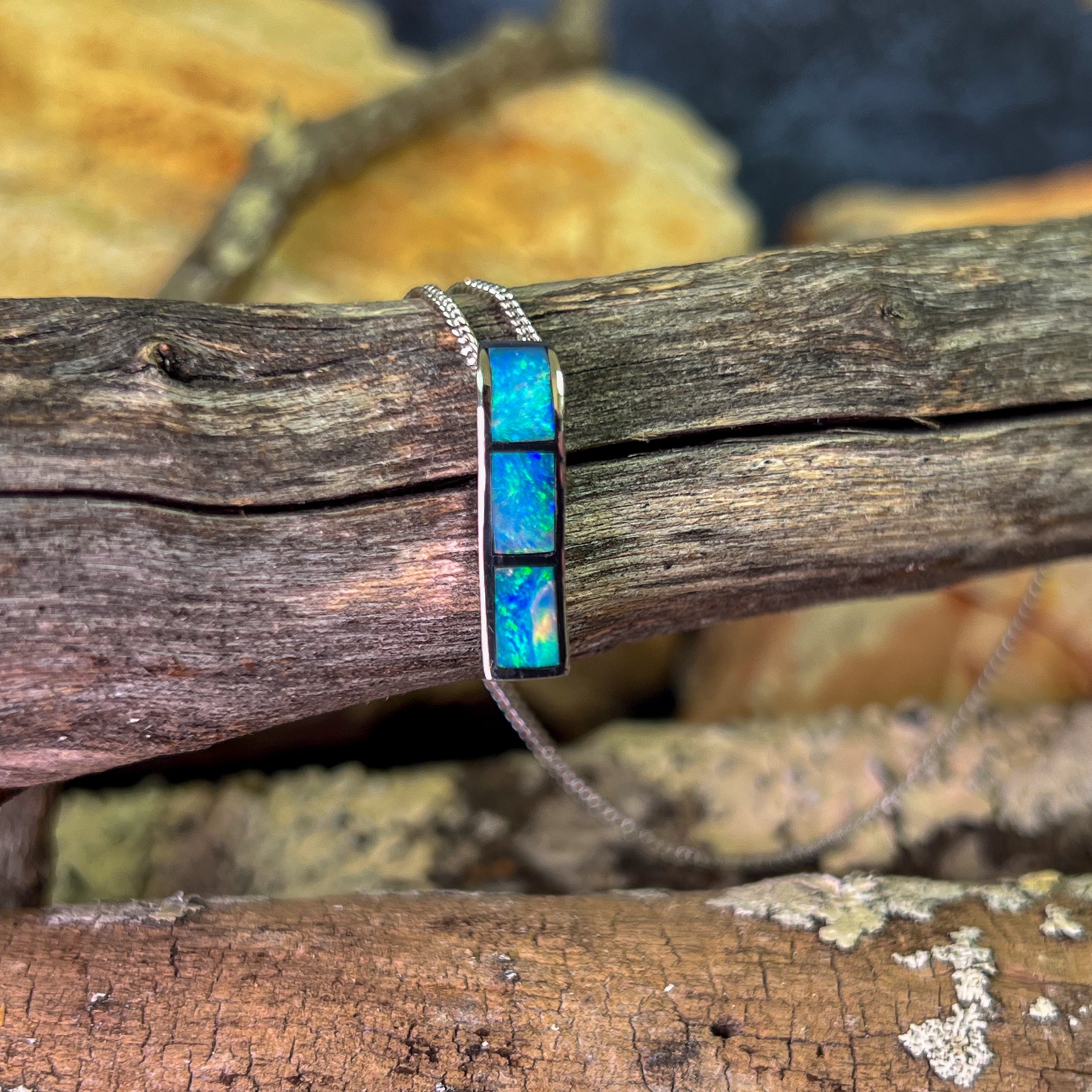 STERLING SILVER 4 OPAL INLAY BOX PENDANT