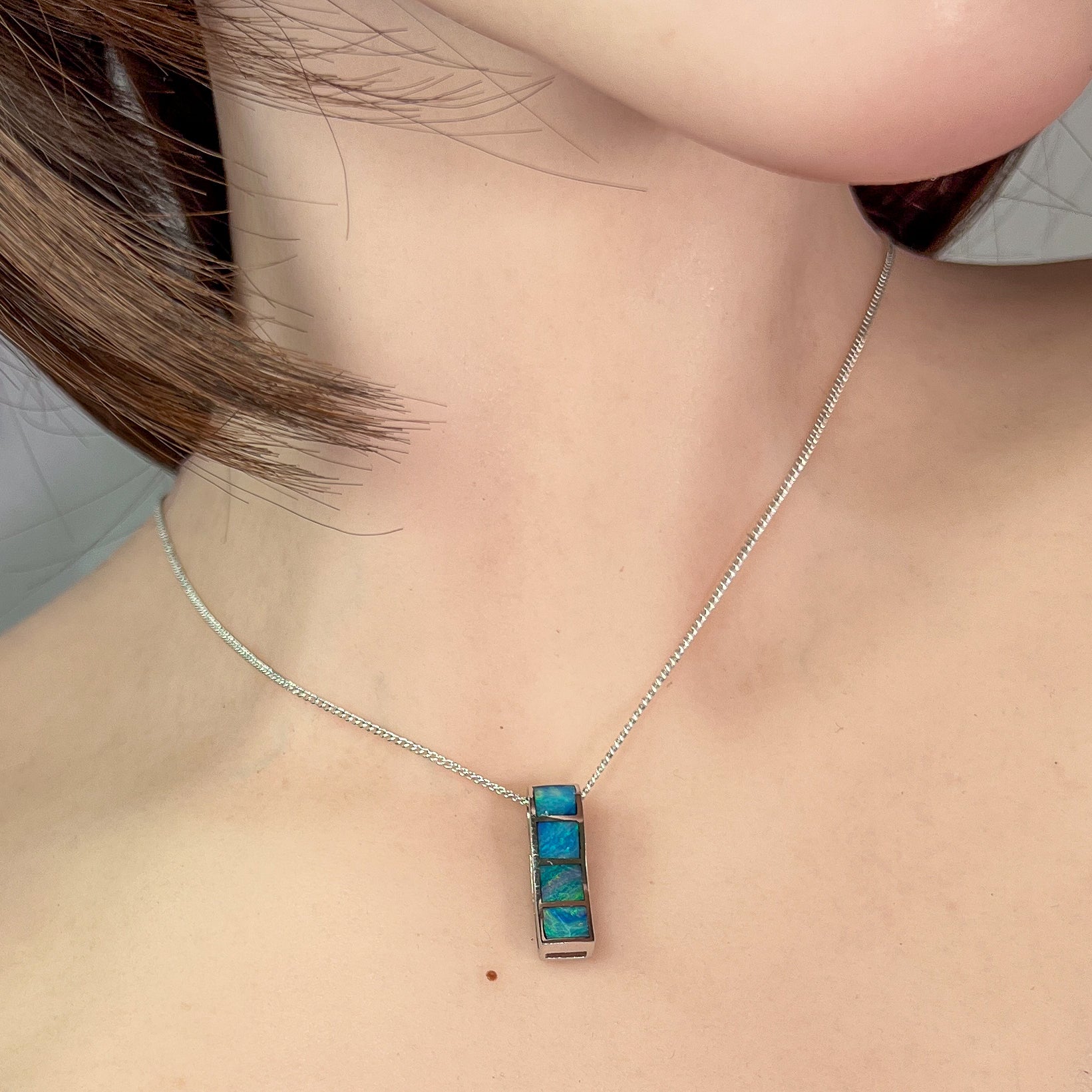 Expertly crafted with a stunning opal bar pendant, our sterling silver necklace offers a touch of elegance and sophistication to any outfit. The iridescent opal shines beautifully in the light, adding a subtle pop of color. Perfect for any occasion, this necklace is a must-have addition to any jewelry collection.