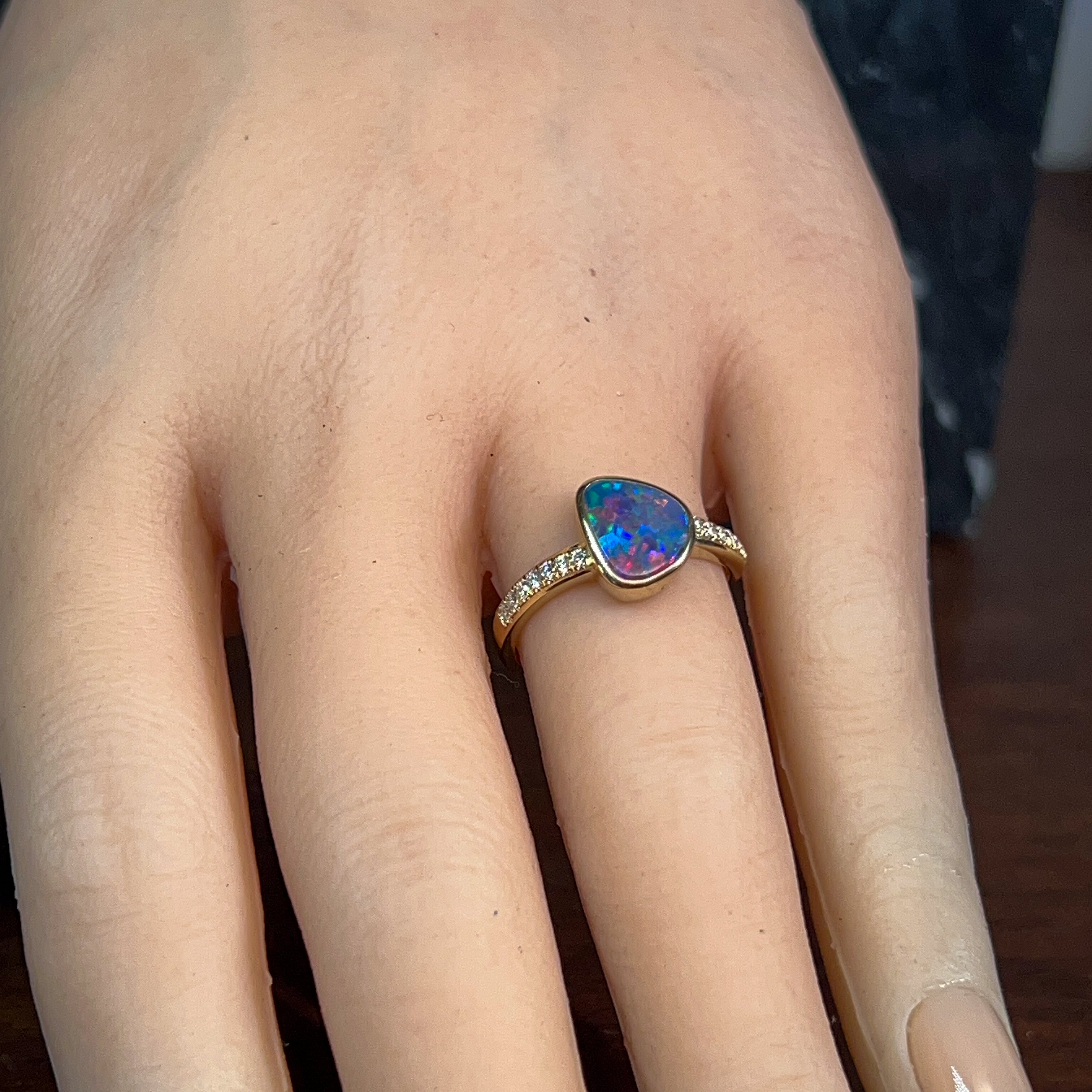 14kt Yellow Gold Opal doublet 1.45ct and diamond ring