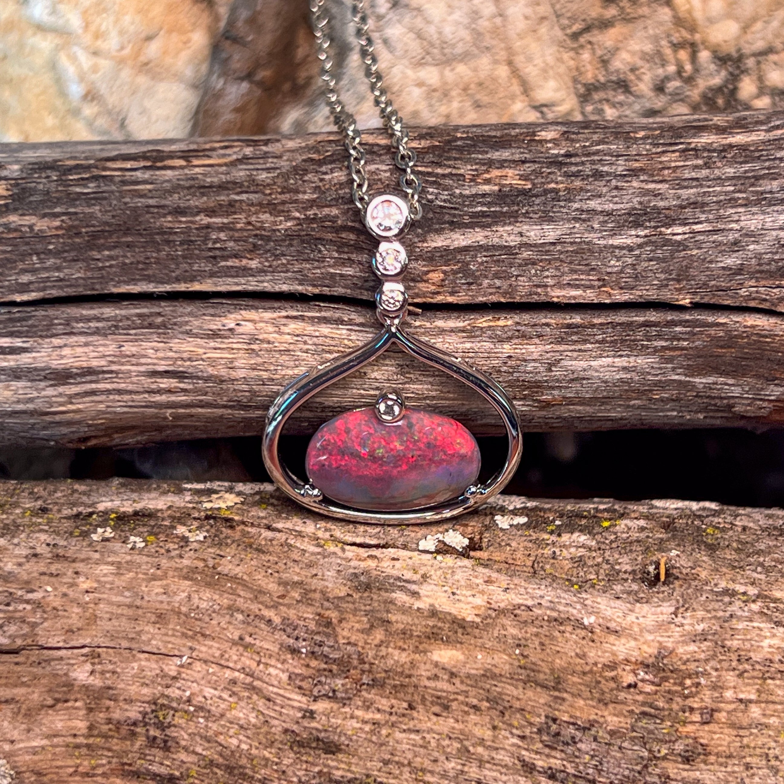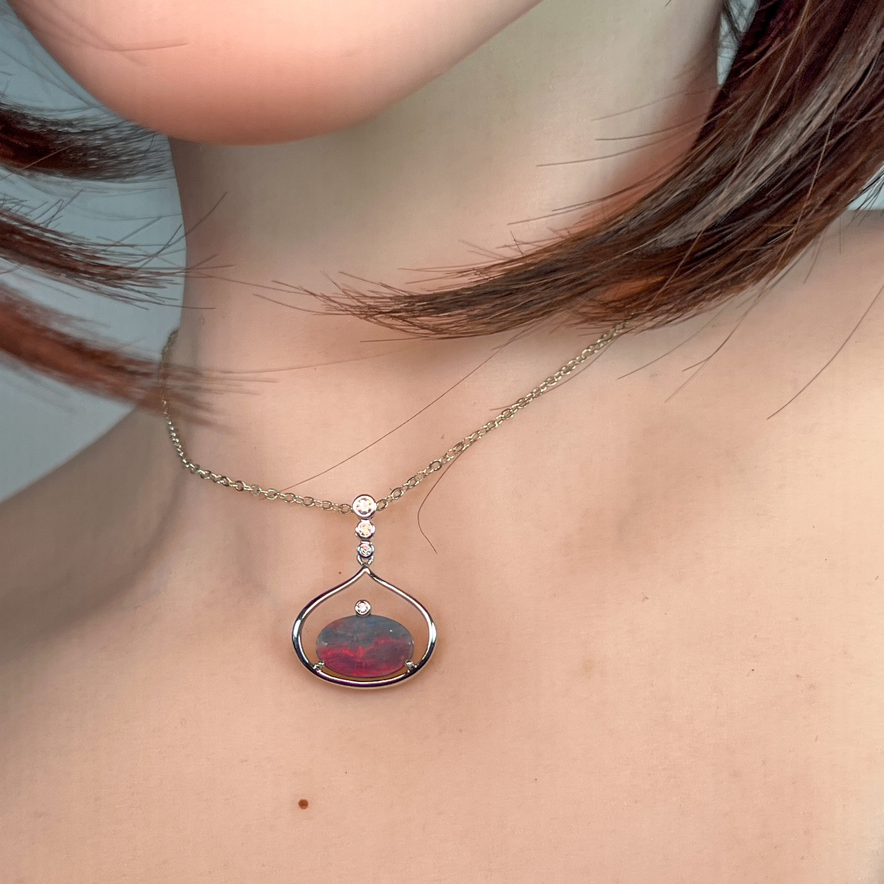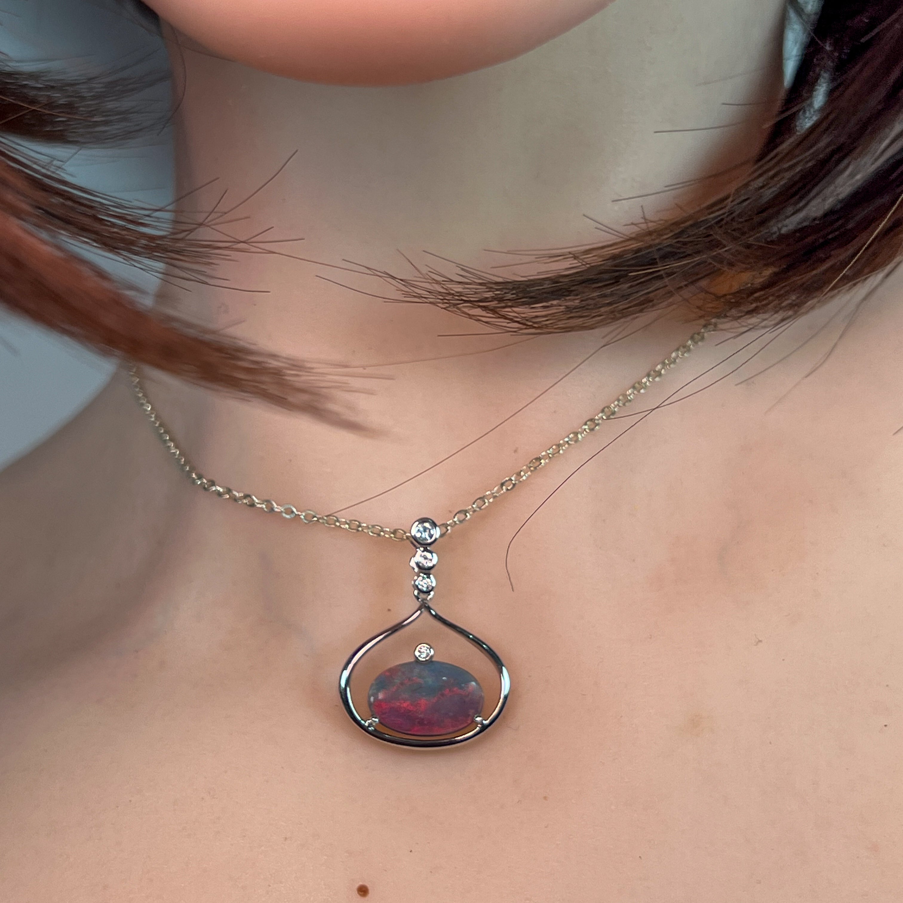 14kt White Gold Black Opal 2.68ct and Sapphire pendant