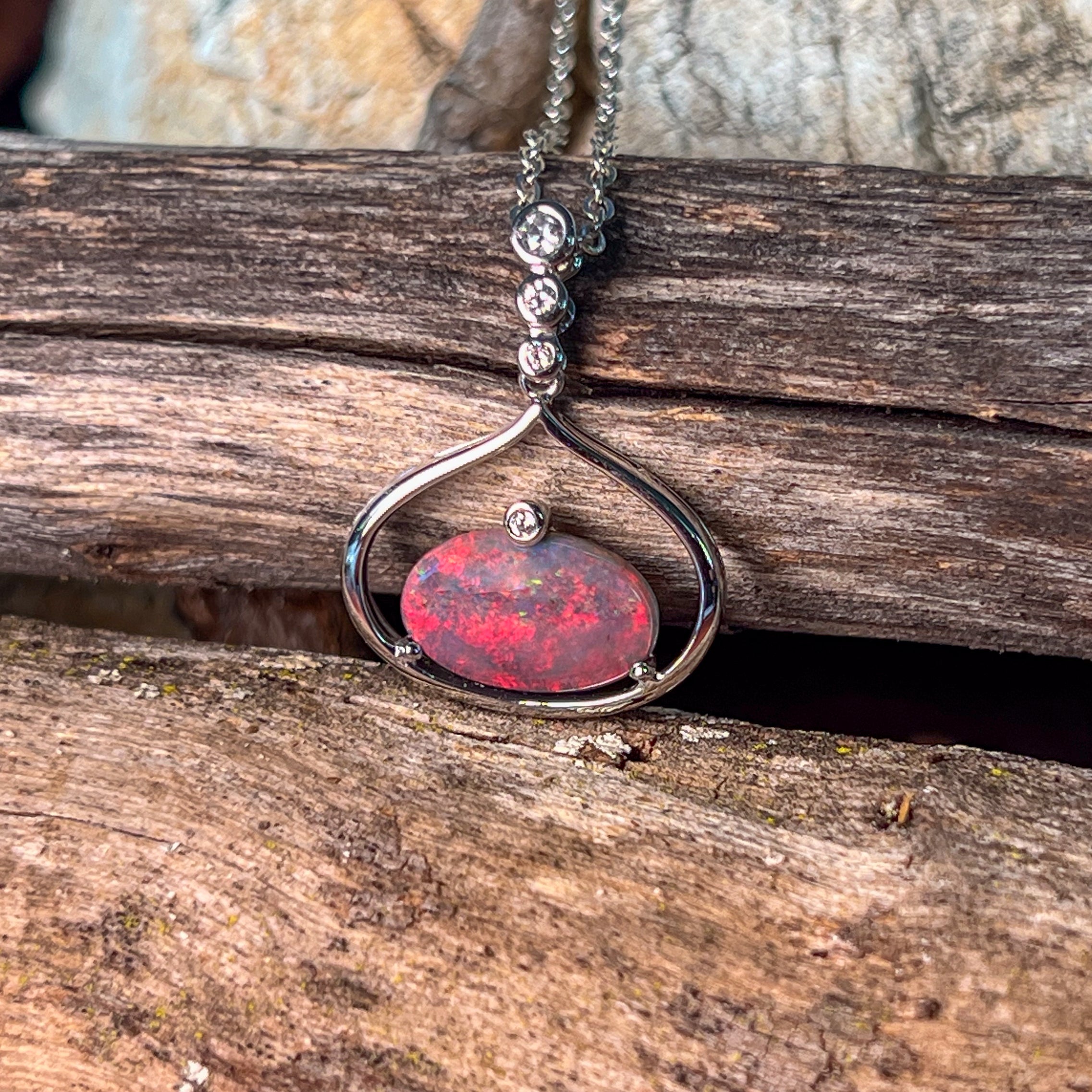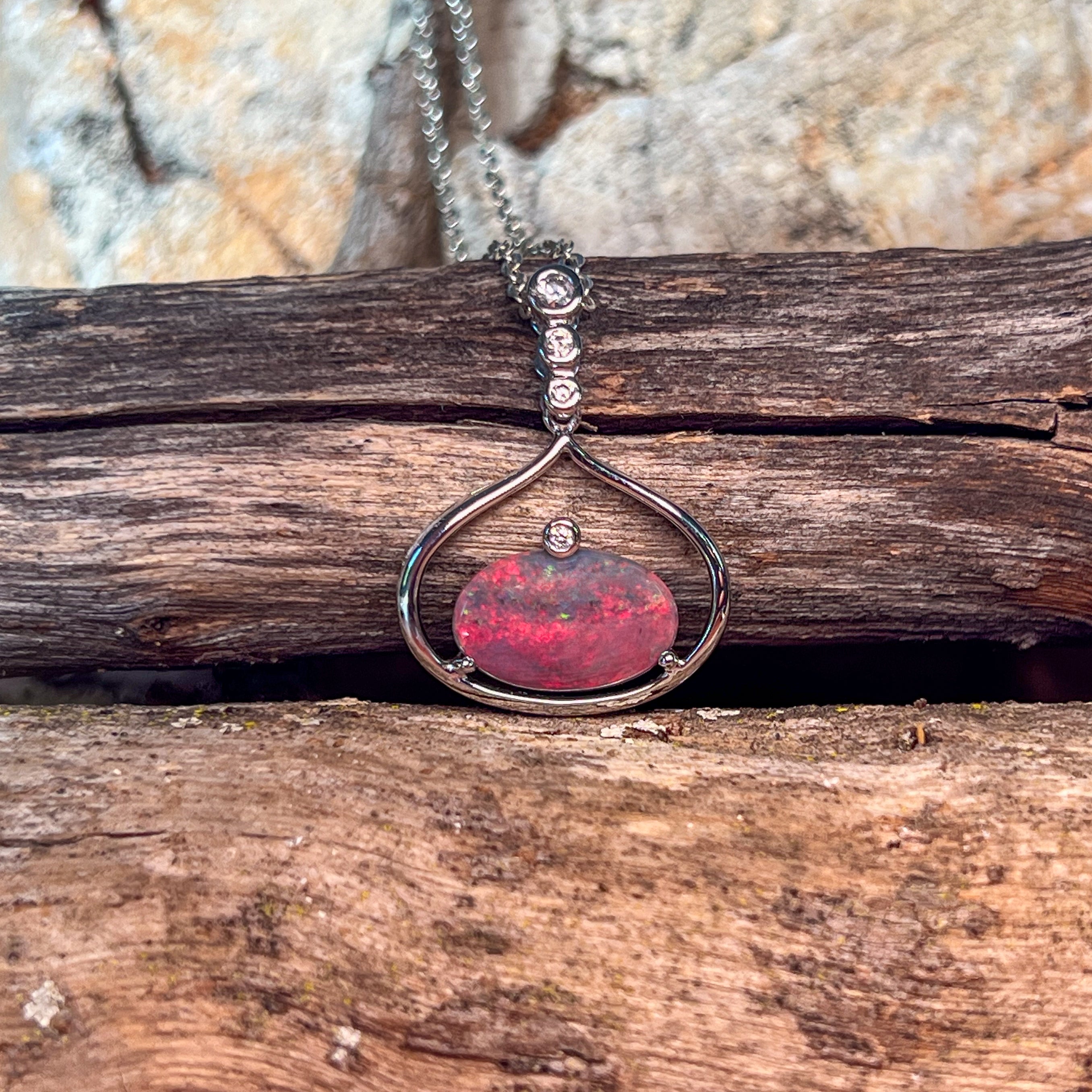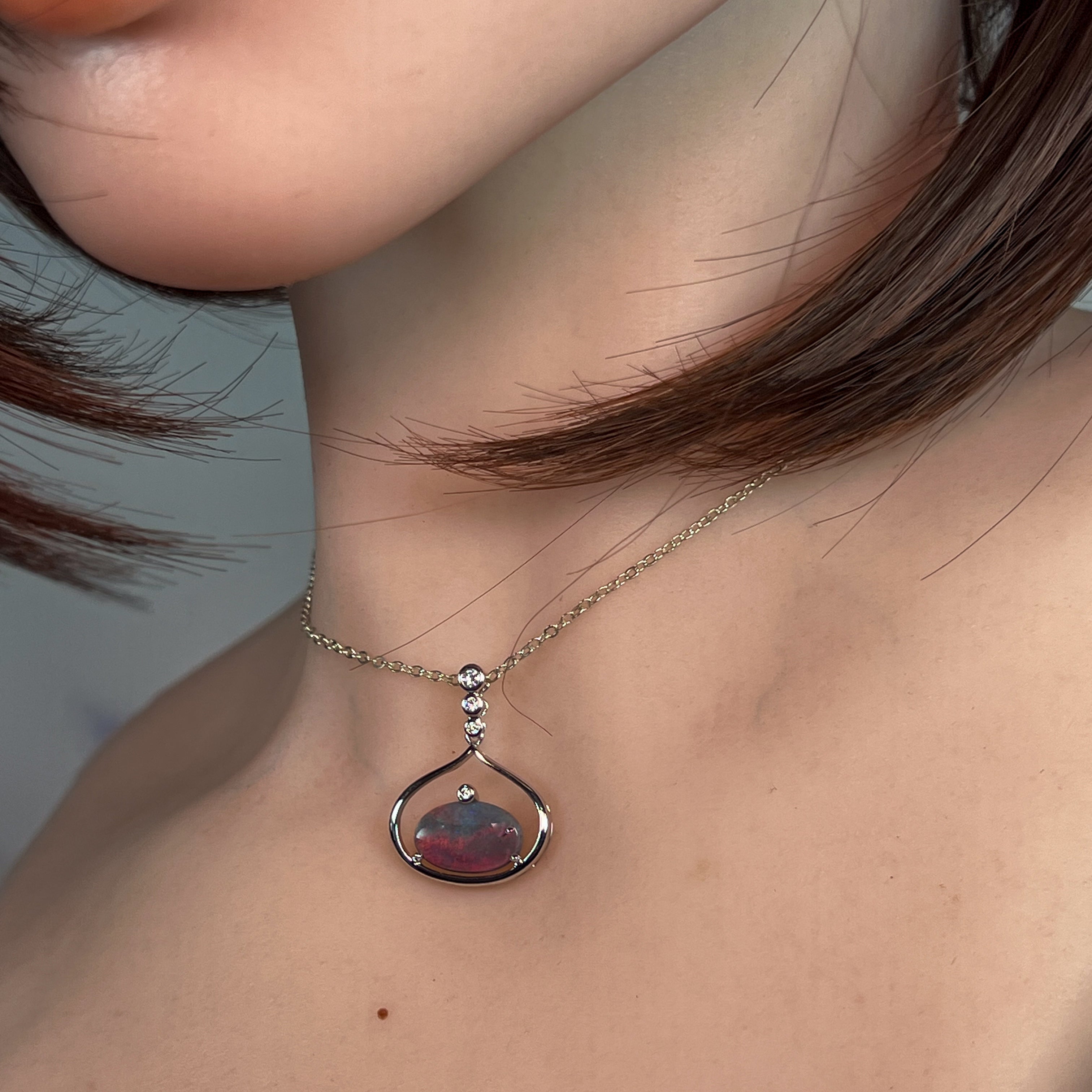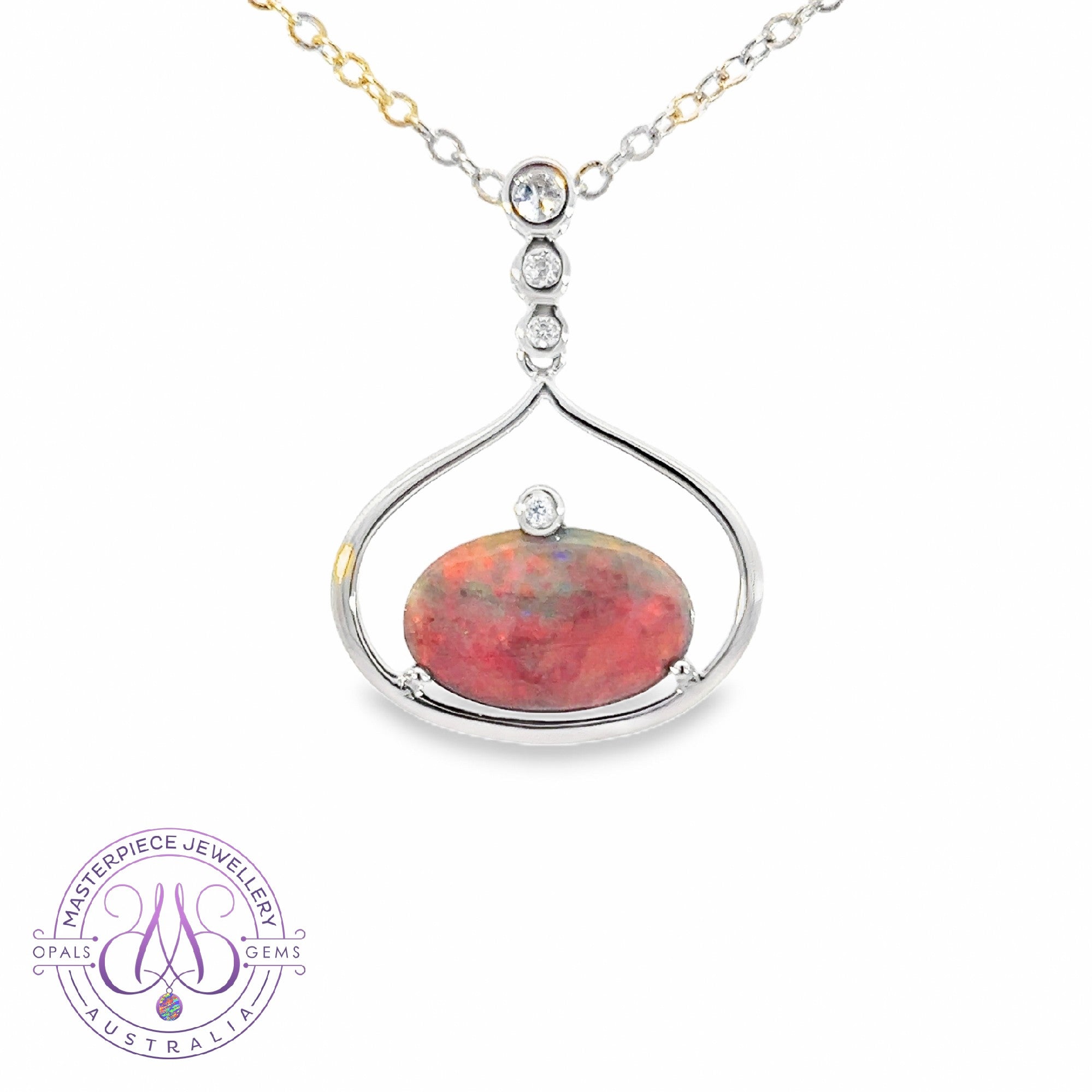 14kt White Gold Black Opal 2.68ct and Sapphire pendant