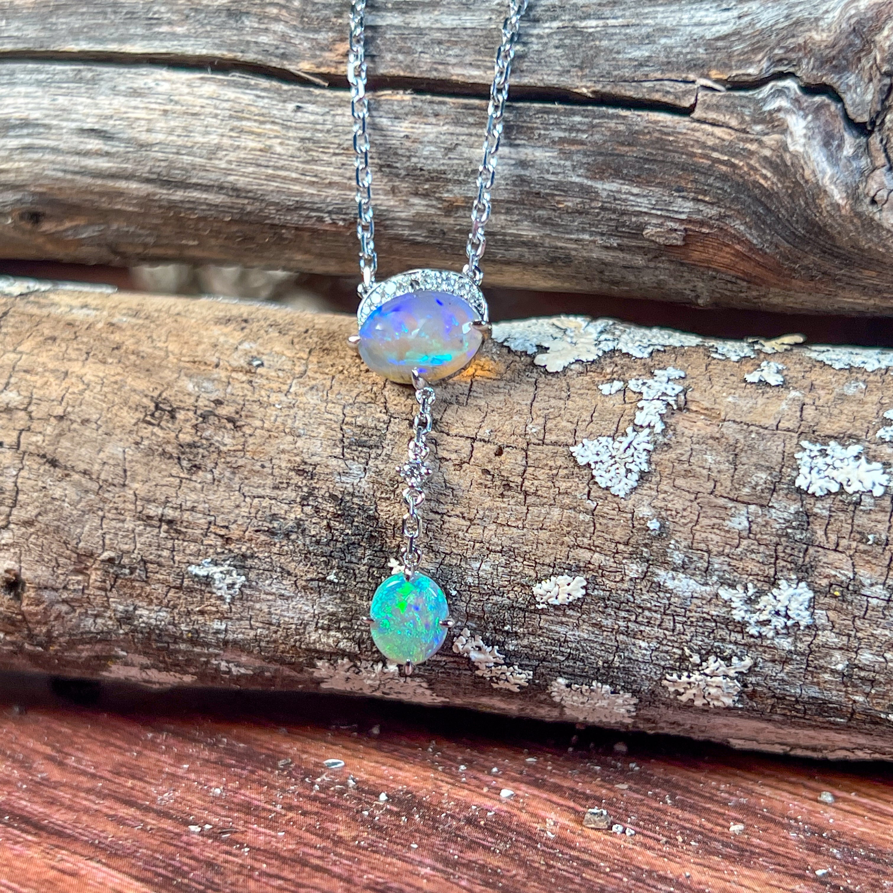 One 14kt White Gold claw set Opal pendant drop style design