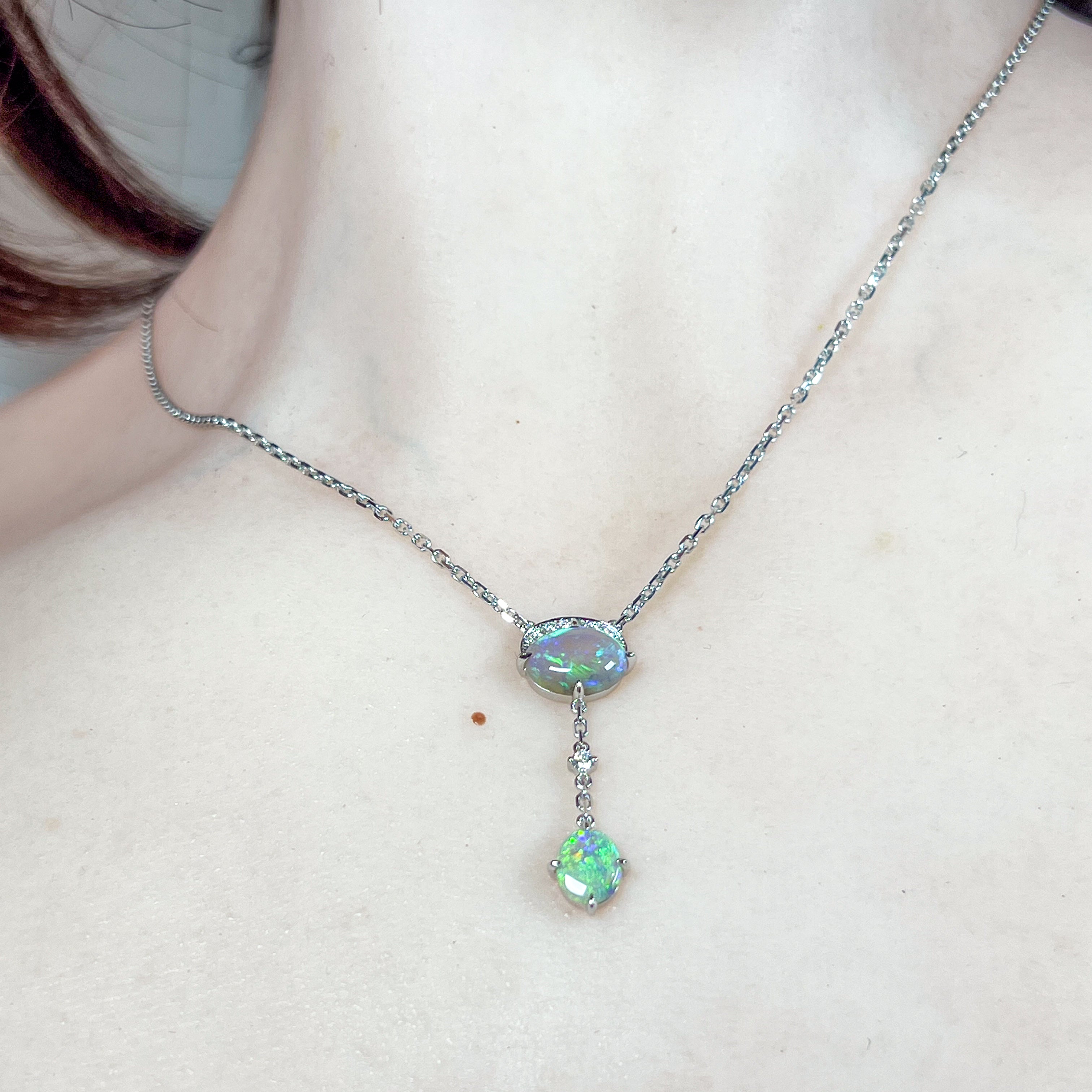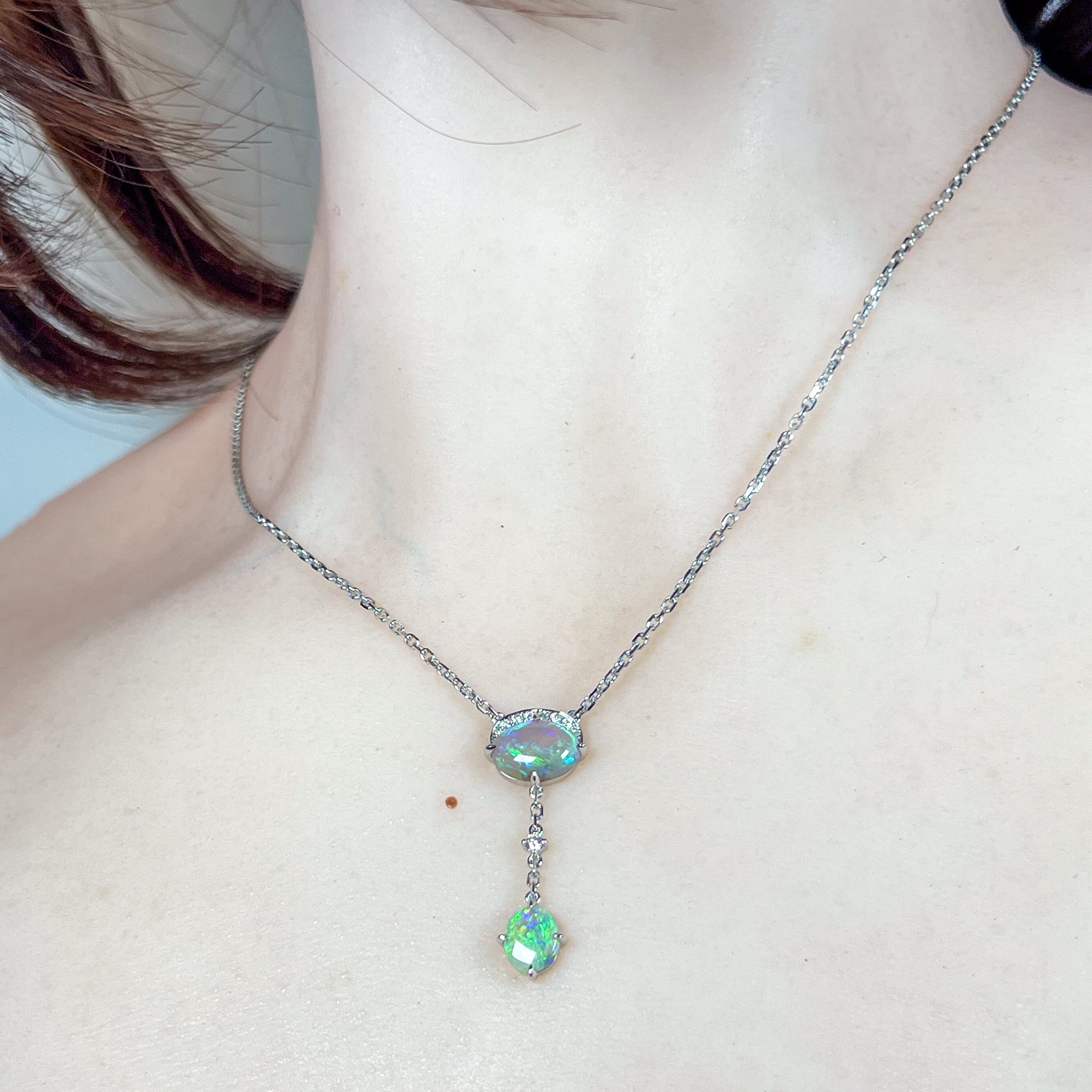 14kt White Gold Black Opal crystal 1.93ct necklace