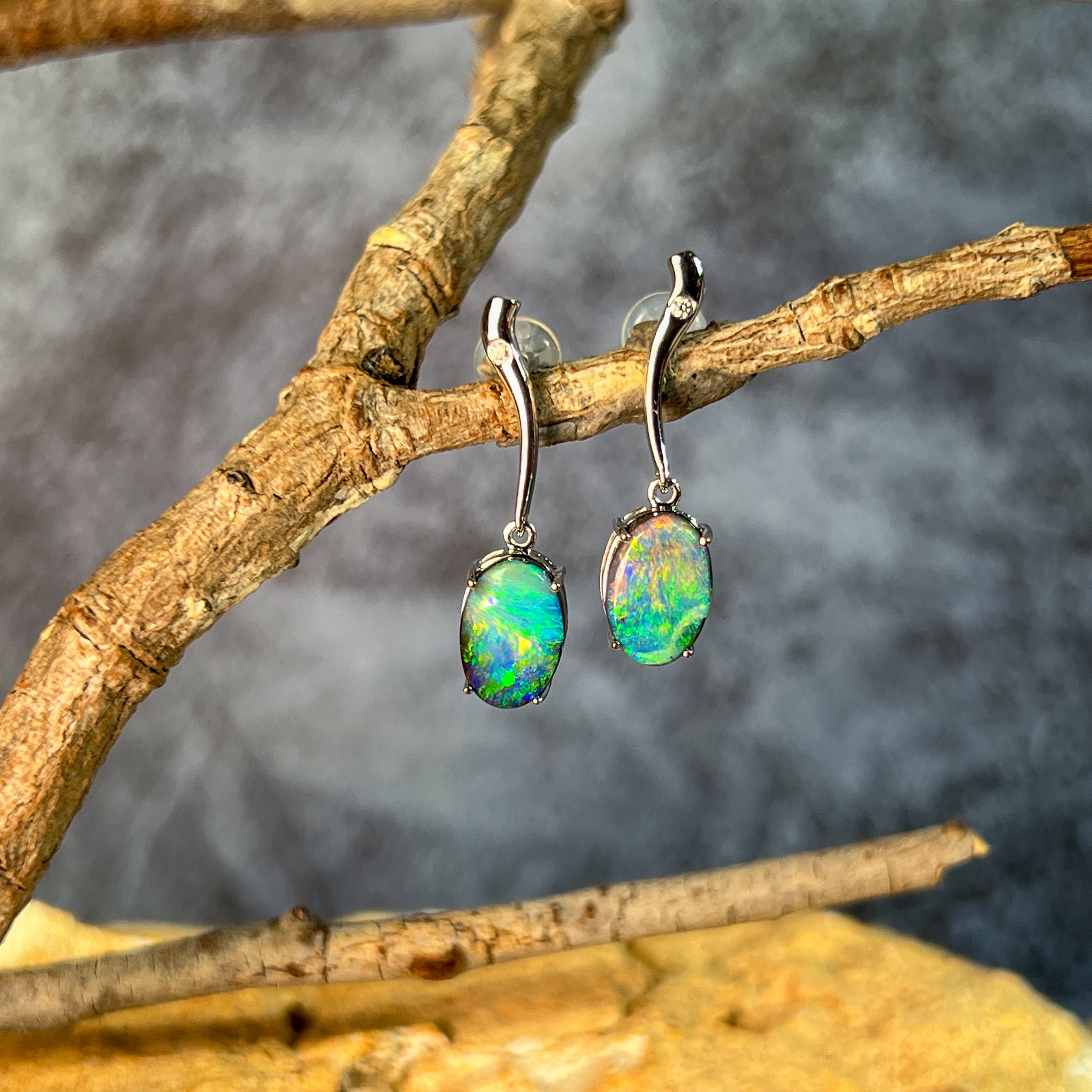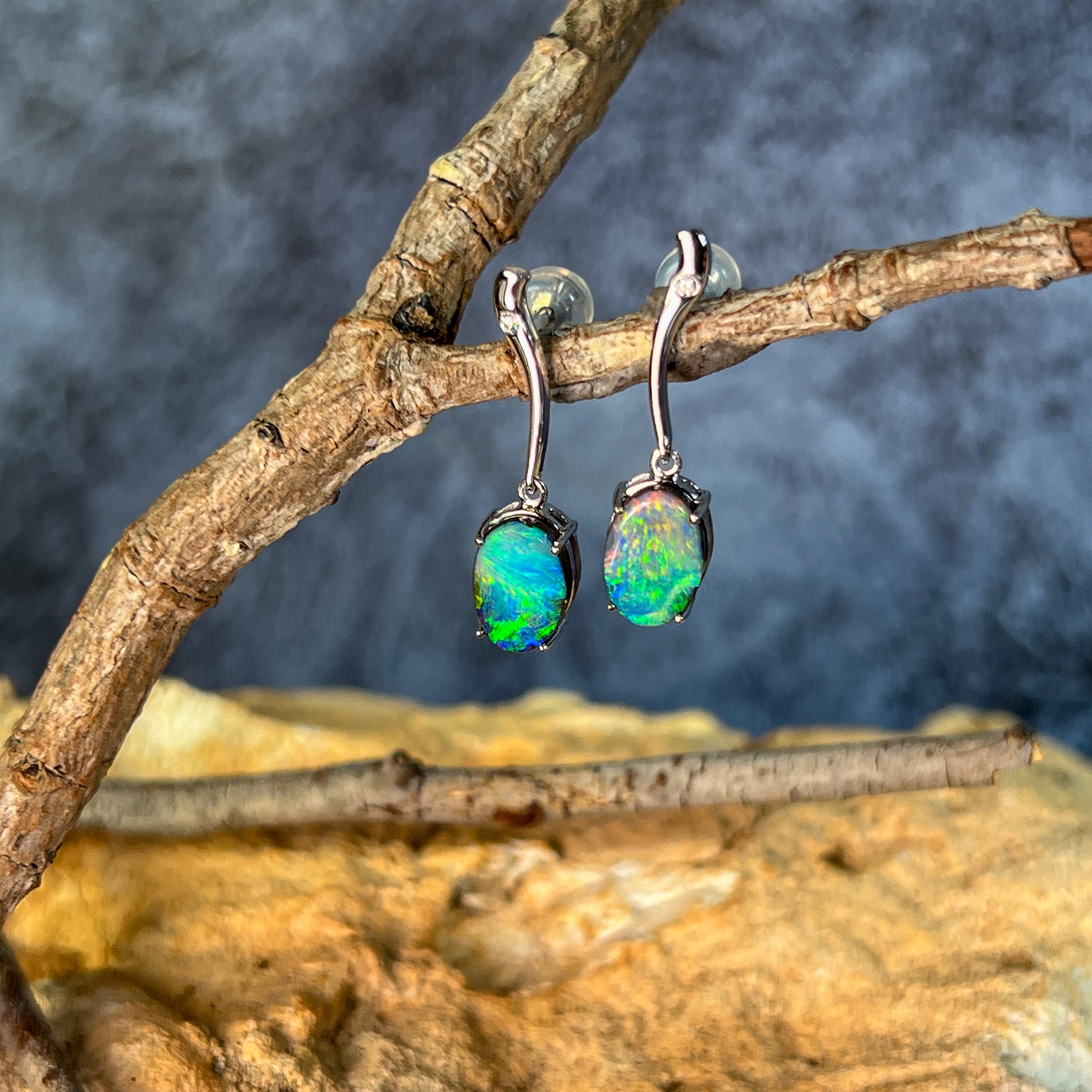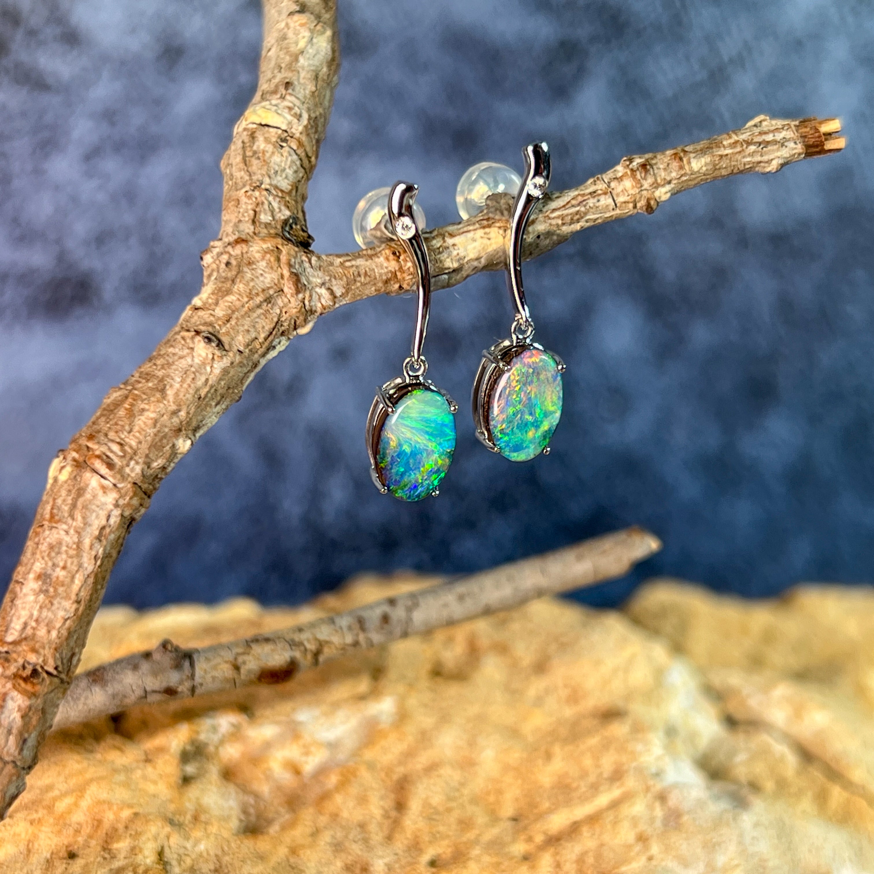 Experience the captivating beauty and elegance of our 14kt White Gold dangling bar claw set Boulder Opal earrings. These blue opal earrings are the perfect gift for any occasion, exuding a sense of luxury and sophistication. Elevate any outfit with the timeless allure of these stunning earrings.