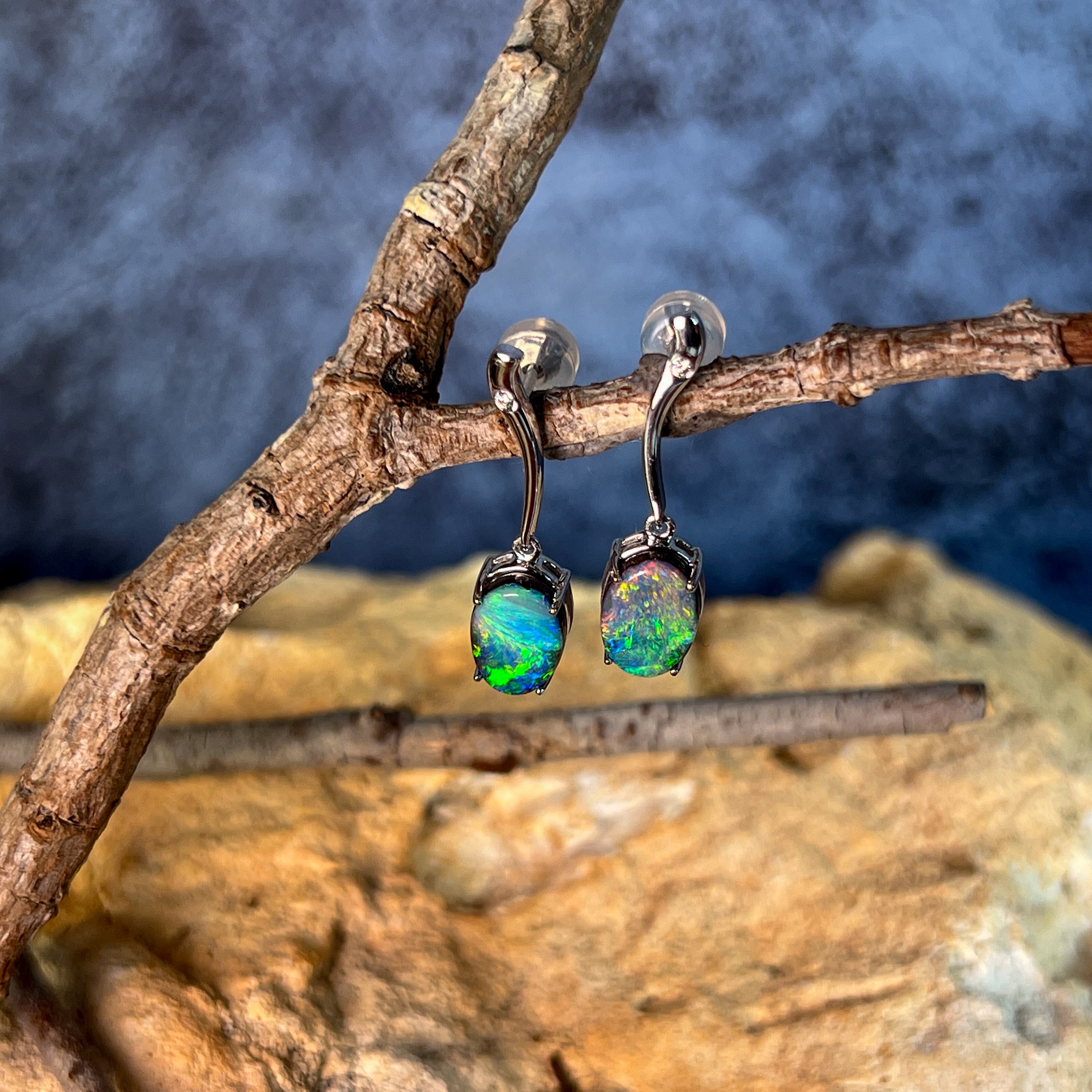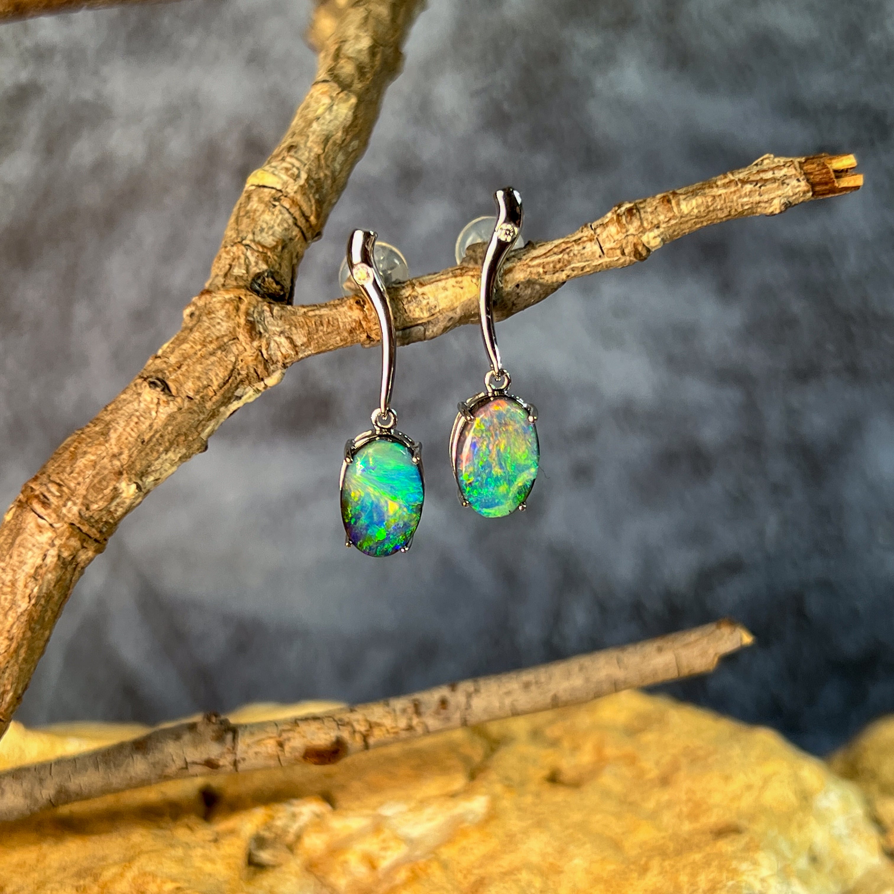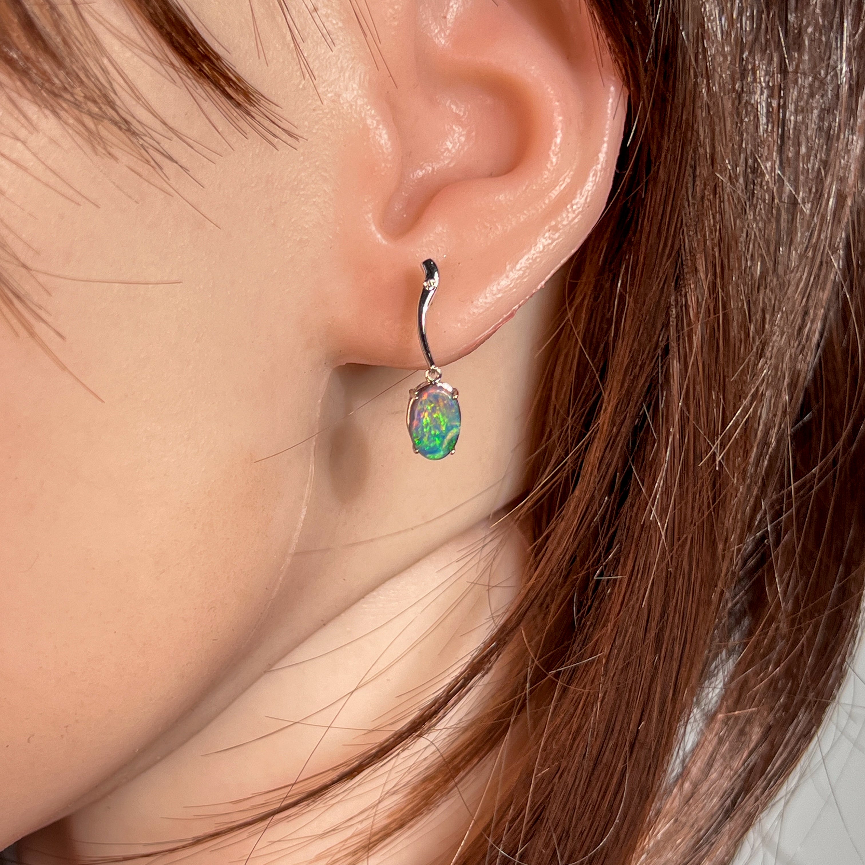 Experience the captivating beauty and elegance of our 14kt White Gold dangling bar claw set Boulder Opal earrings. These blue opal earrings are the perfect gift for any occasion, exuding a sense of luxury and sophistication. Elevate any outfit with the timeless allure of these stunning earrings.