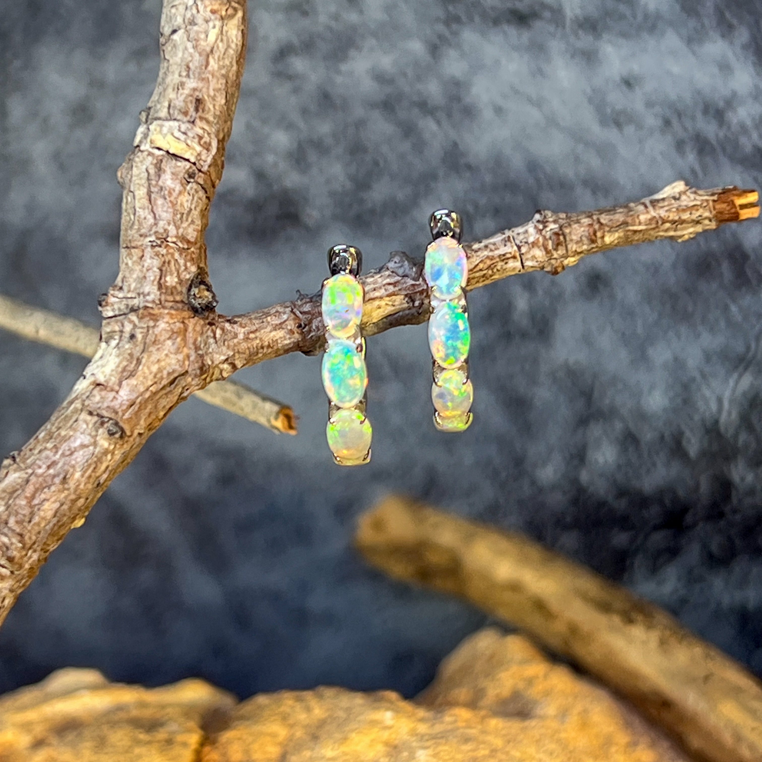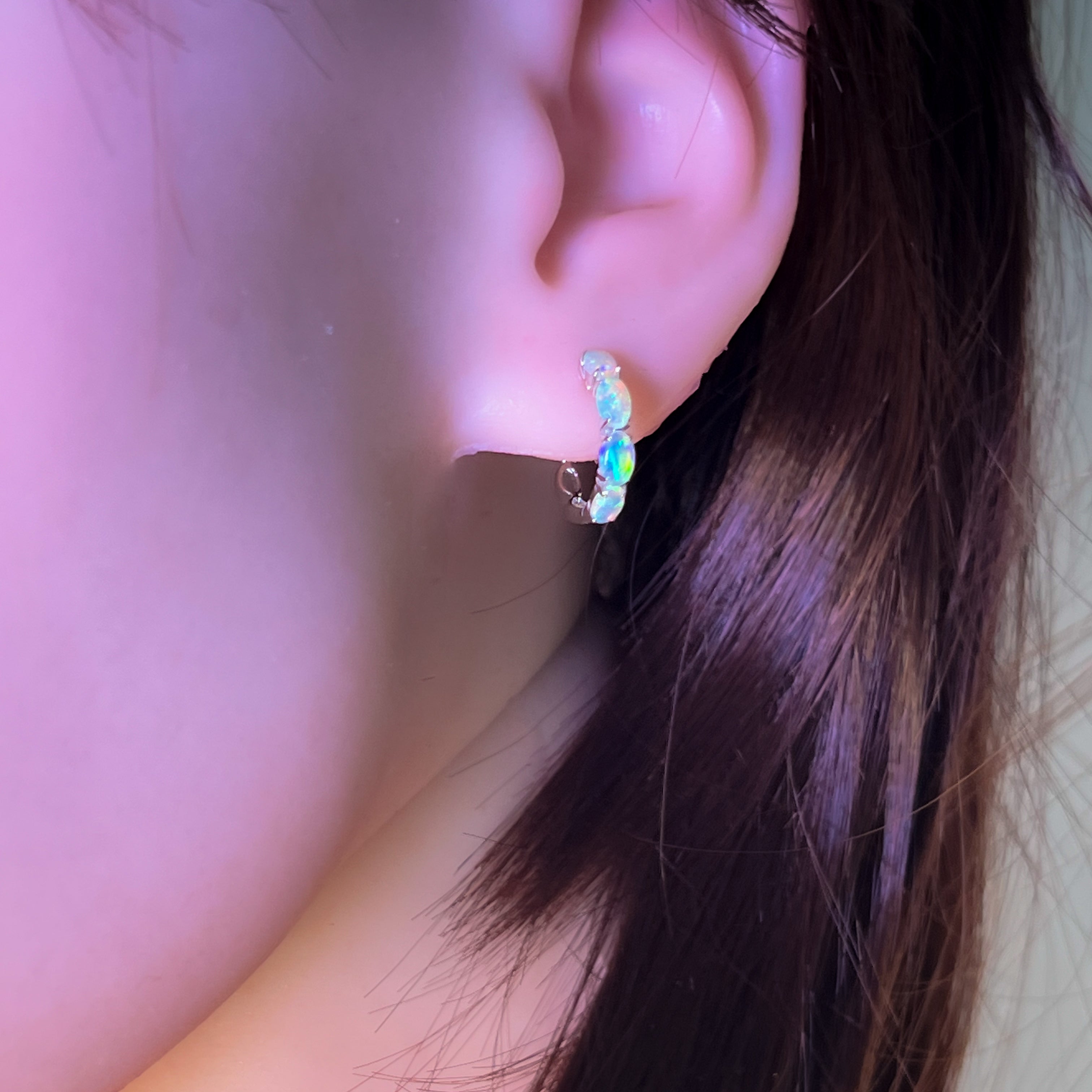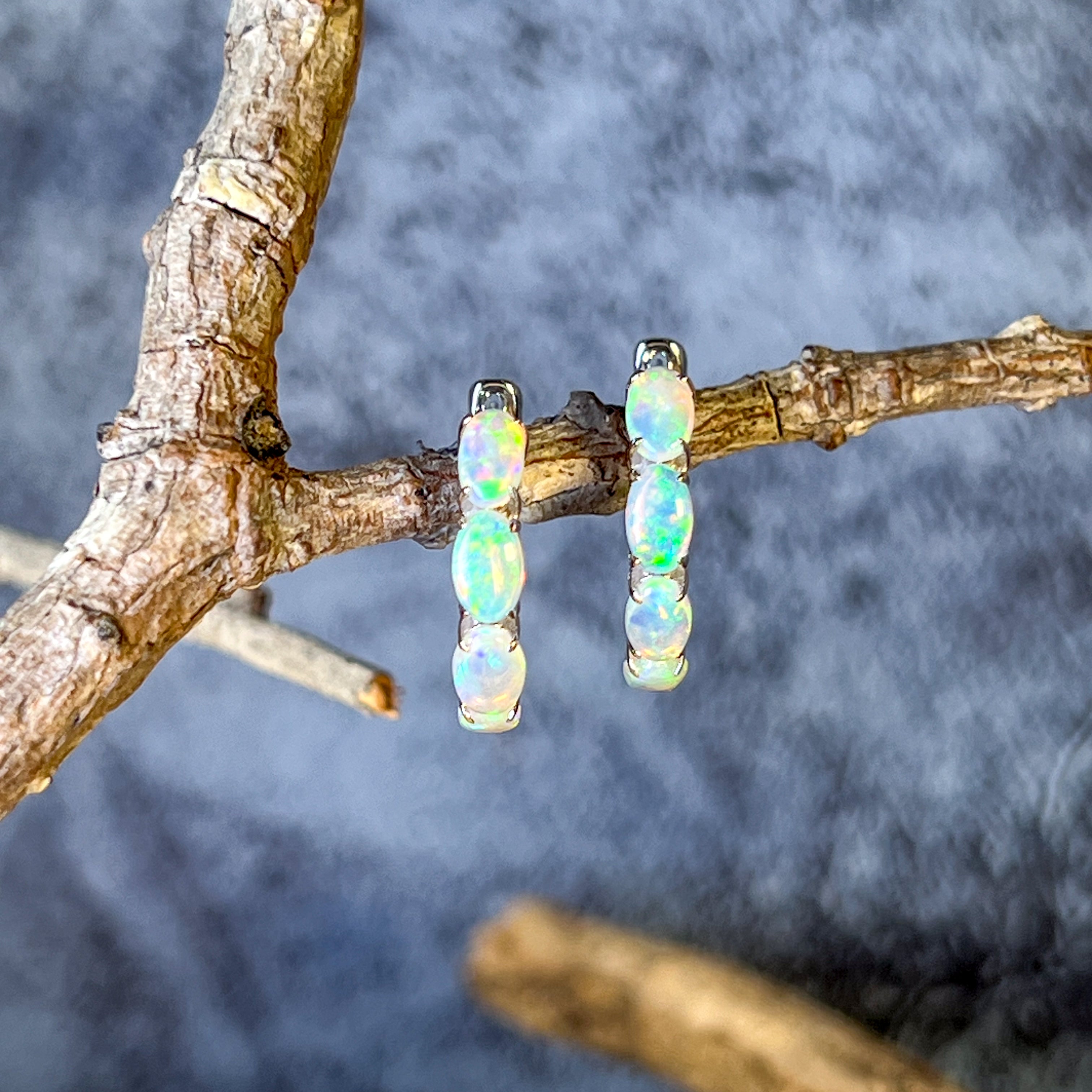 14kt White Gold Huggie design Crystal Opal 1.2ct earrings