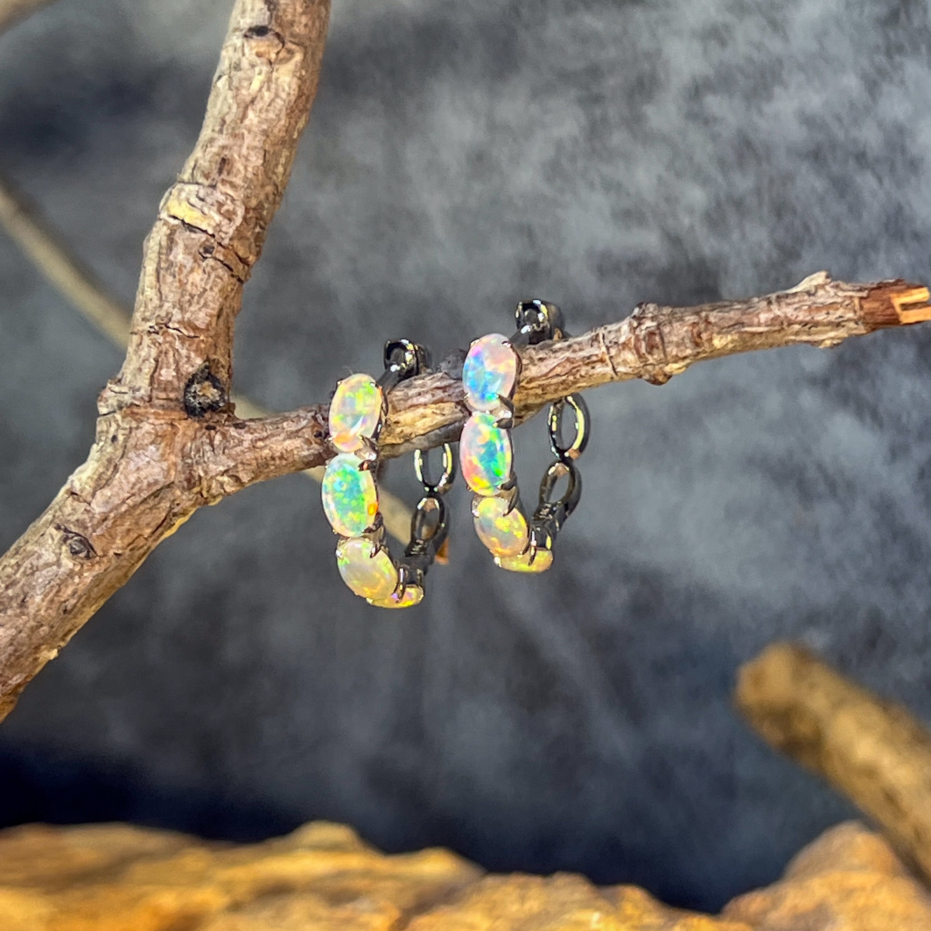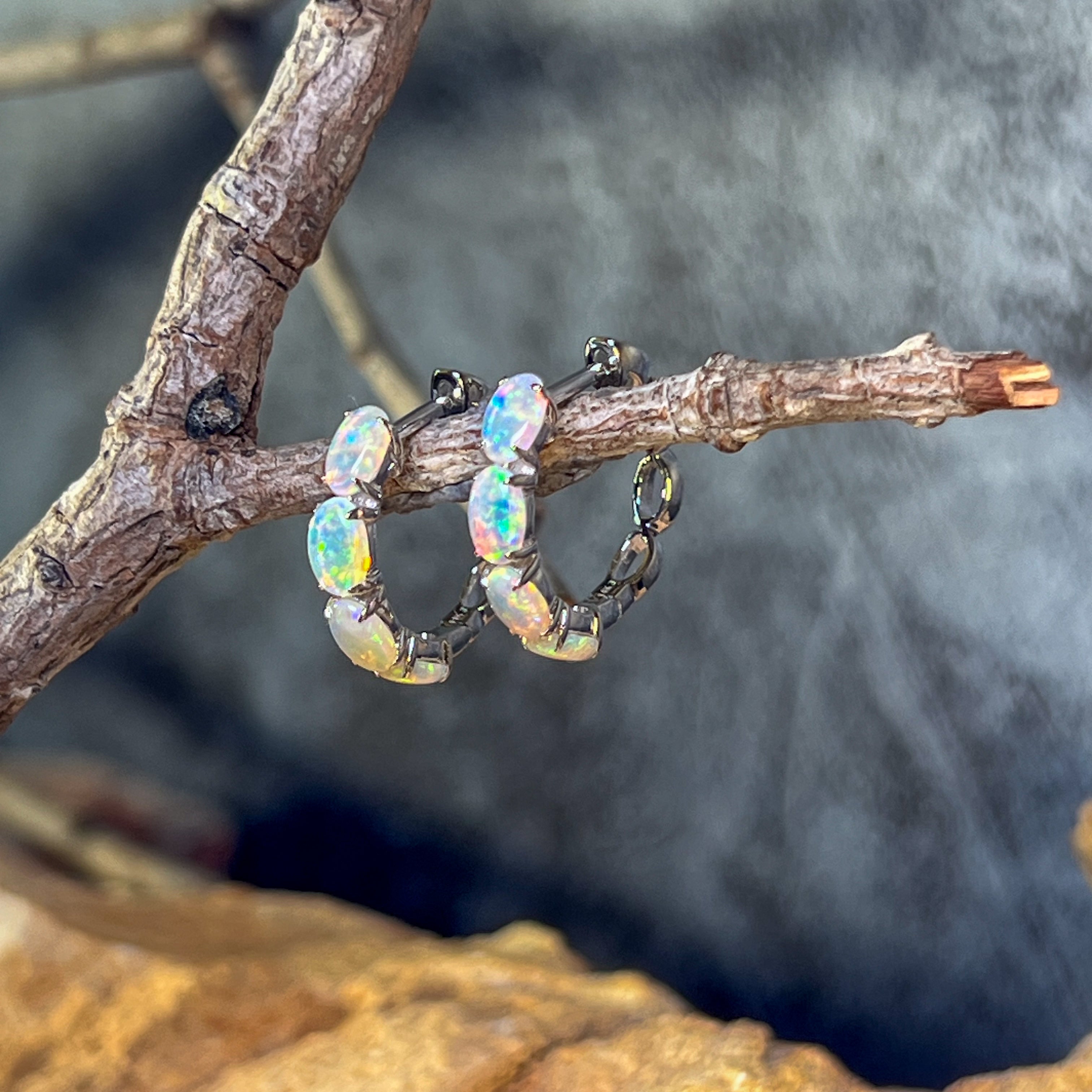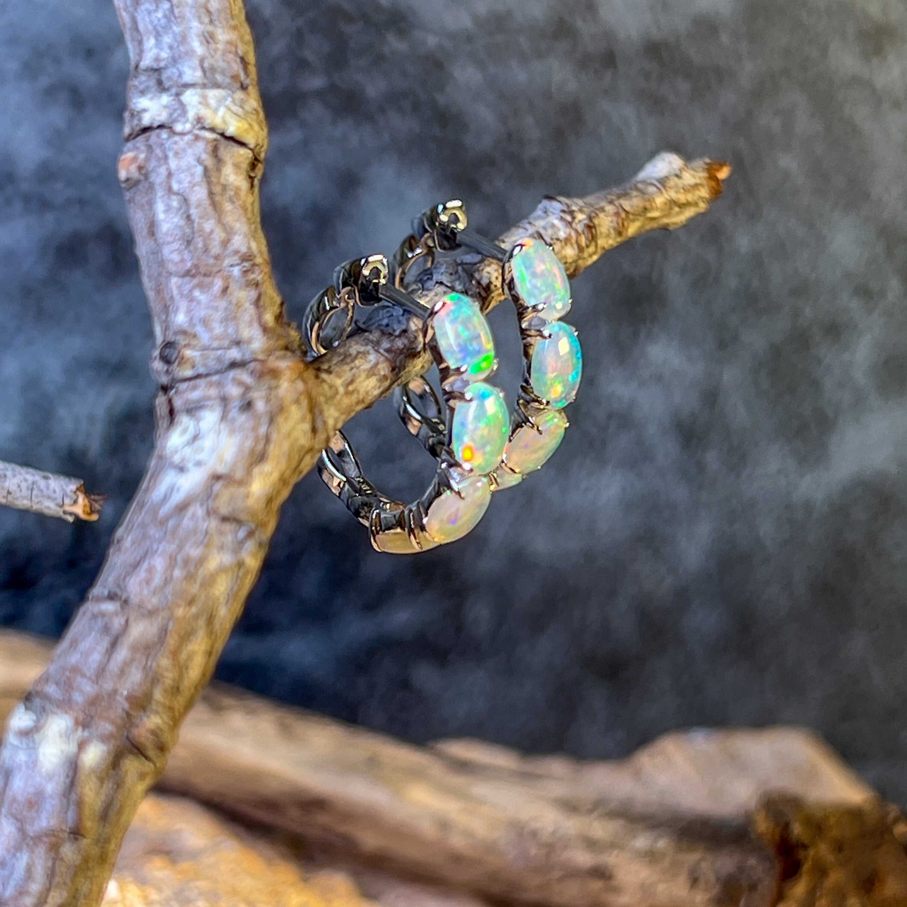 14kt White Gold Huggie design Crystal Opal 1.2ct earrings