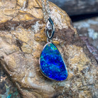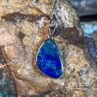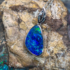 14kt White Gold large Opal doublet Blue Green traingle shape pendant