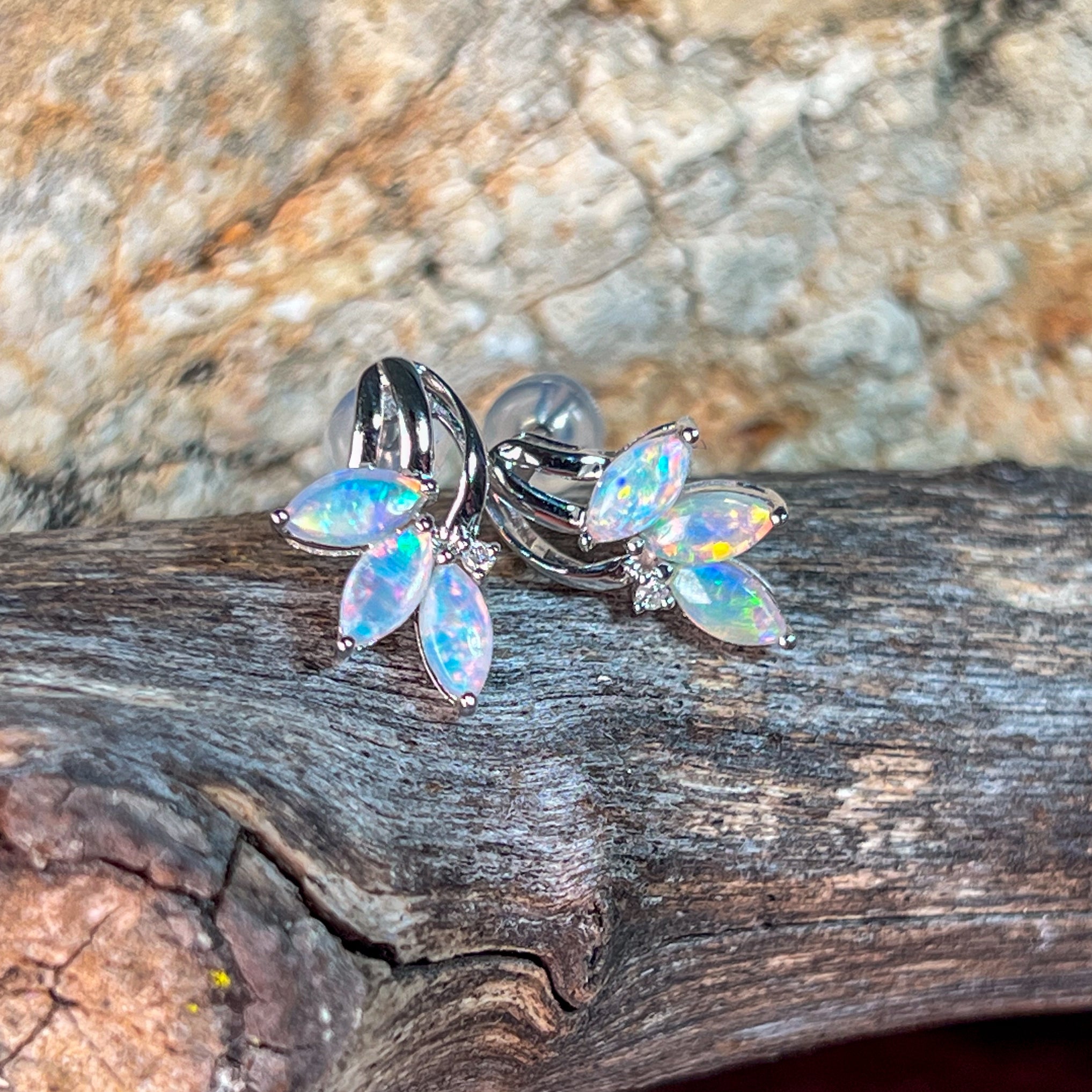 One pair of 14kt White gold Opal Marquise cut shape claw fan style studs
