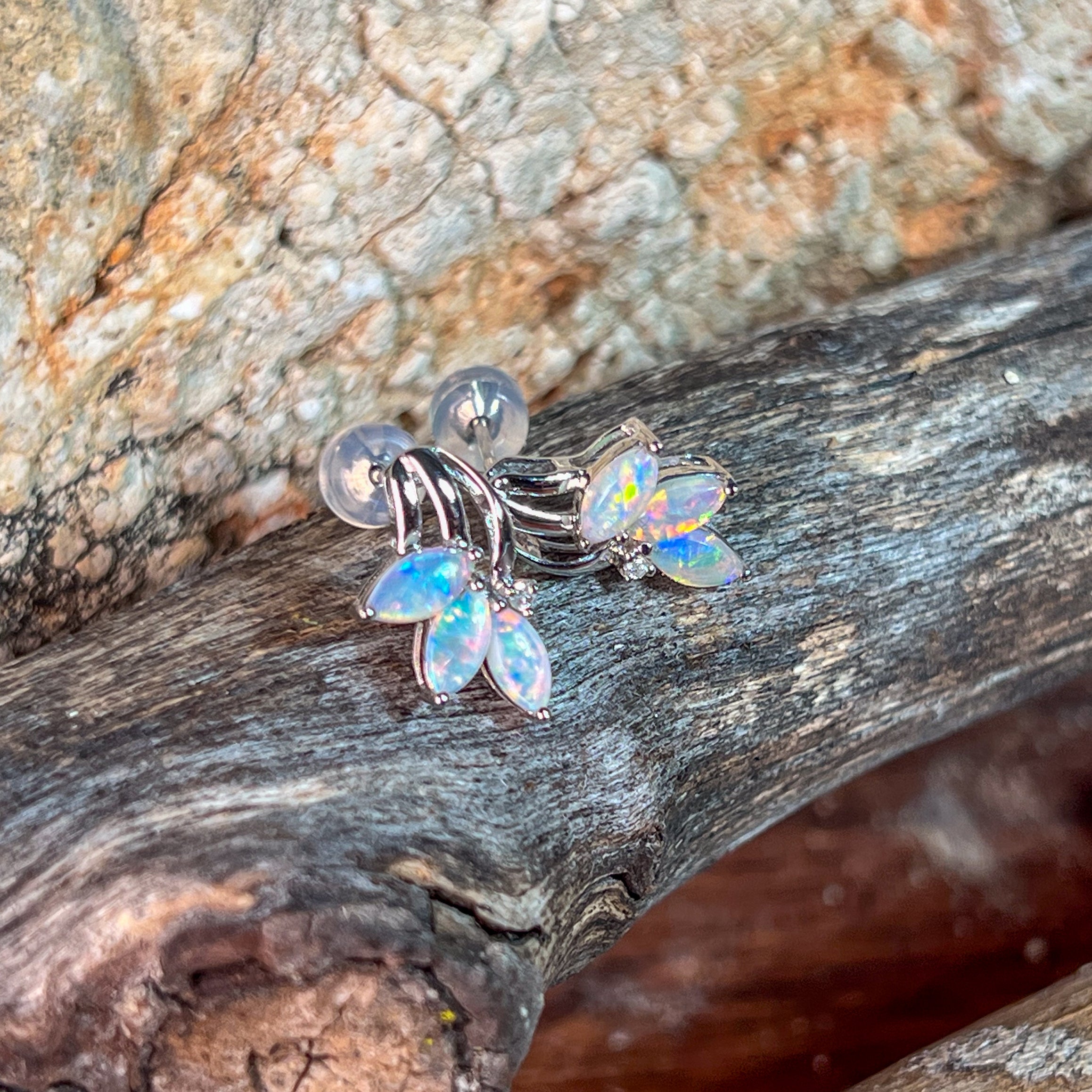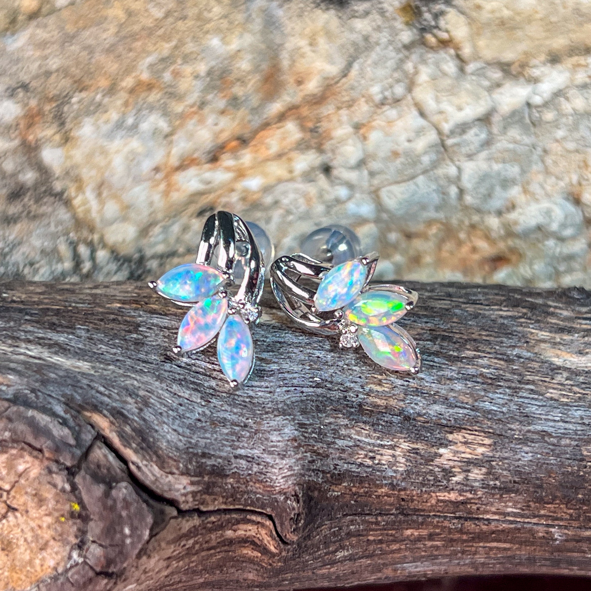 Unleash the timeless elegance of these 14kt White Gold marquise Crystal Opal studs earrings, the perfect jewelry gift for women. Radiating fiery iridescence, these earrings will add a touch of sophistication and glamour to any outfit. Elevate your style with these stunning and versatile earrings.