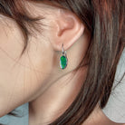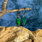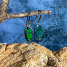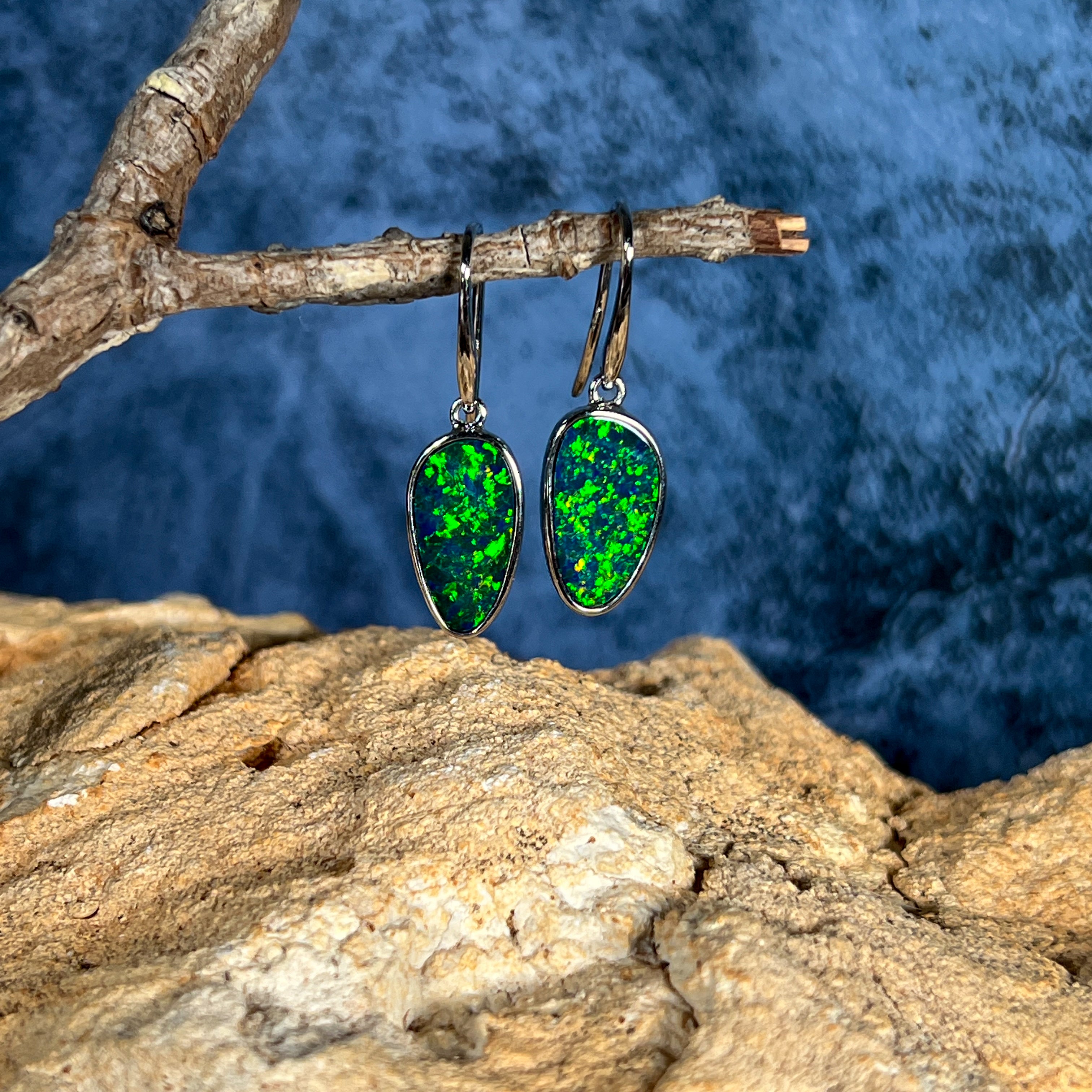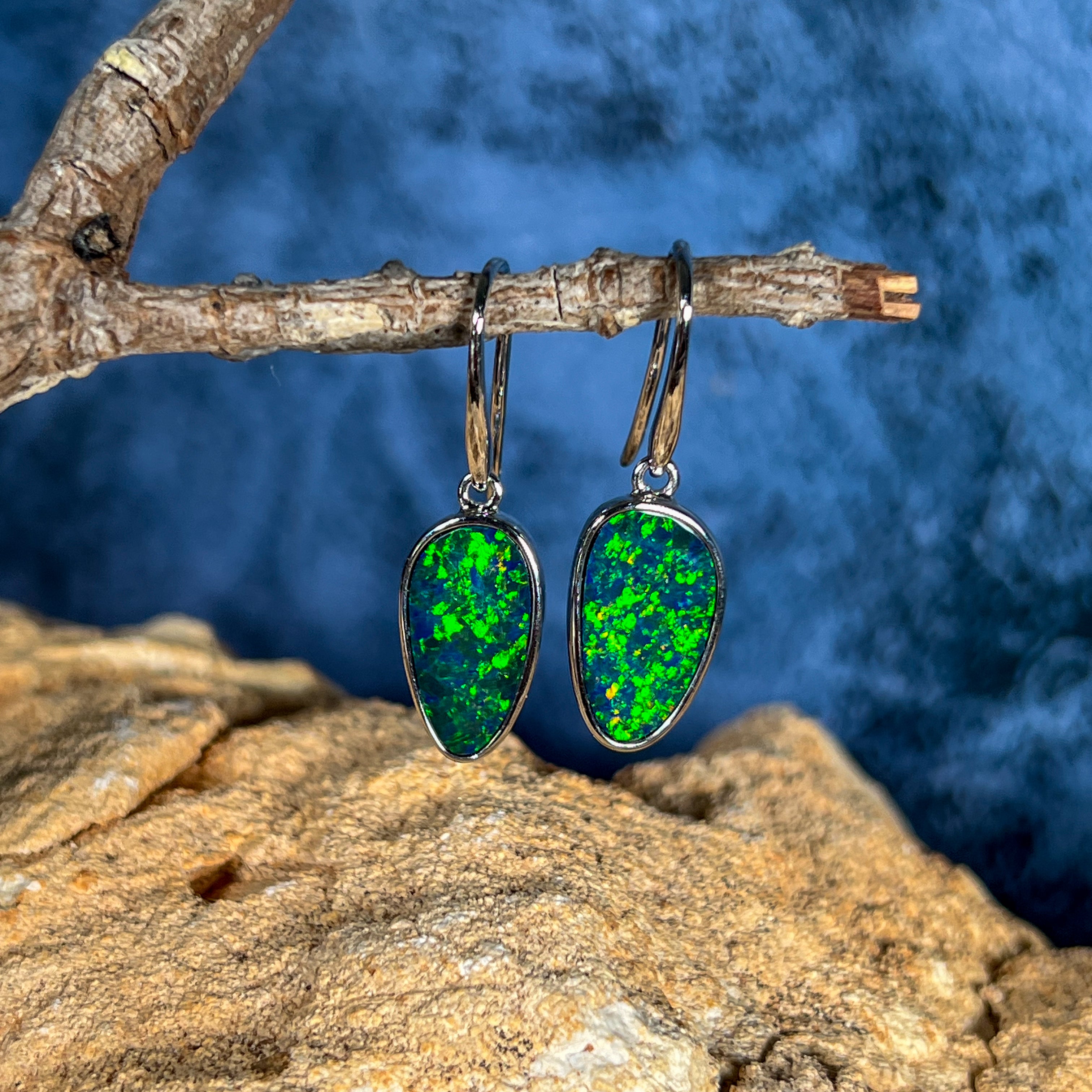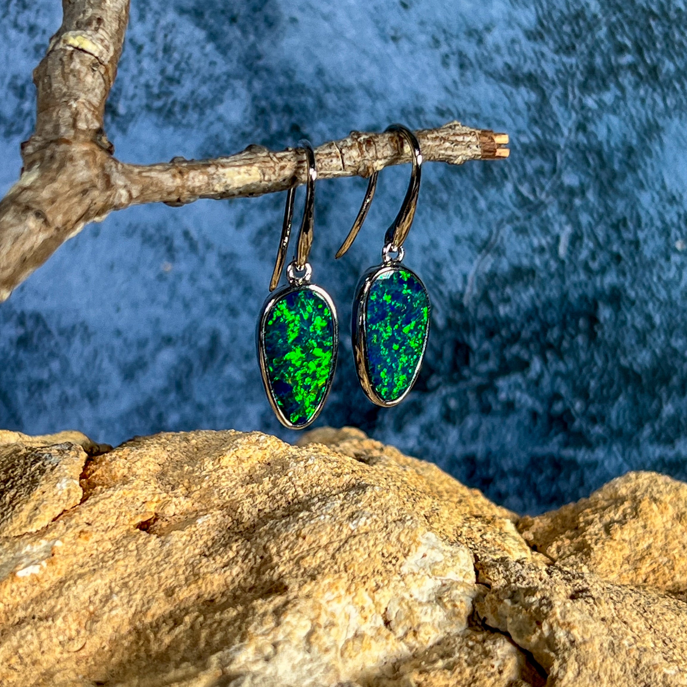 14kt White Gold Opal doublet Green flash dangling hook earrings