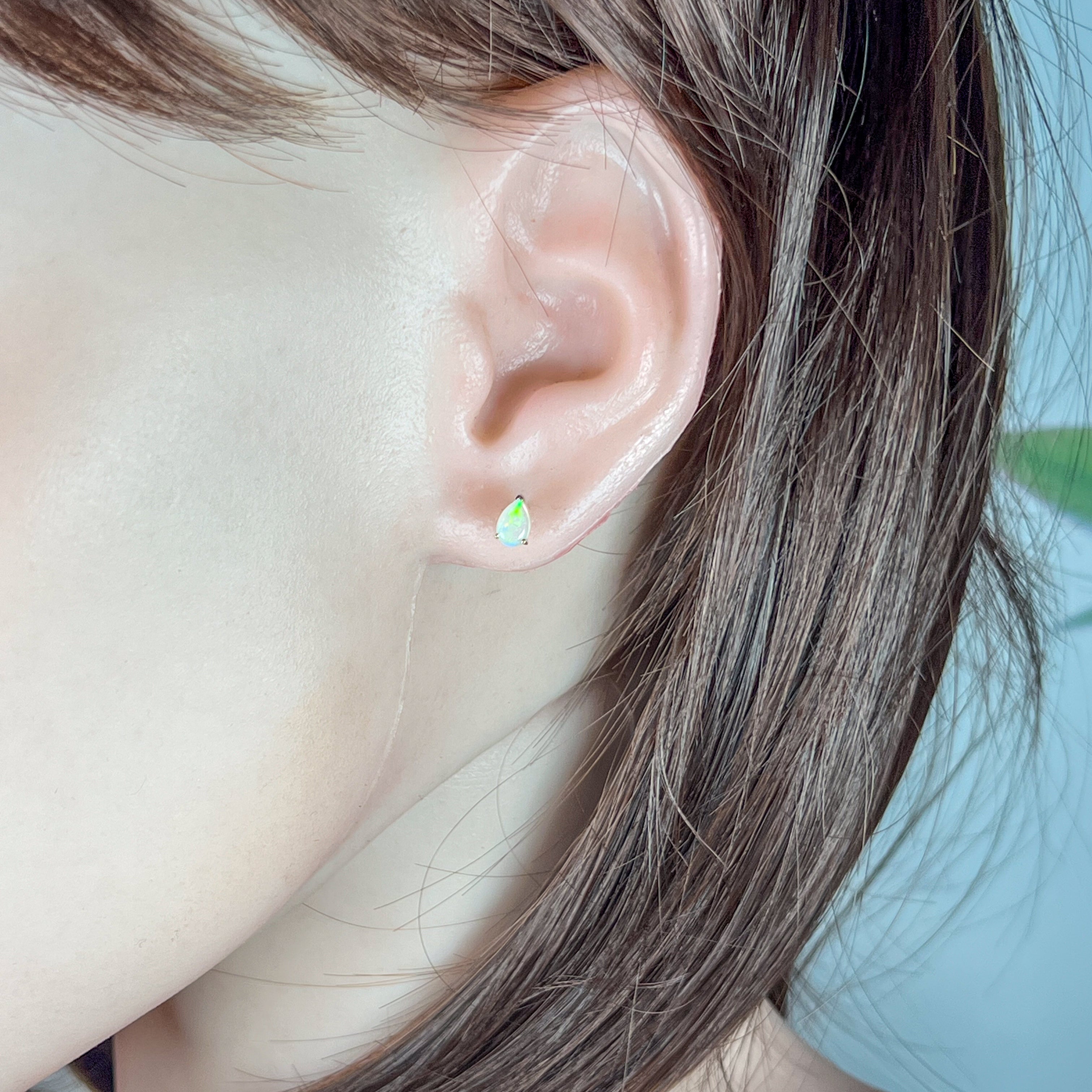 Elevate your everyday elegance with these exquisite 14kt white gold pear-shaped crystal opal studs. Measuring a delicate 6x4mm, these dainty earrings showcase the mesmerising play of colour that makes Australian opals truly captivating. The refined white gold setting complements the opal's natural brilliance, creating a sophisticated look that transitions effortlessly from day to night. Perfect for those who appreciate understated luxury and timeless beauty, these studs are an investment piece that celebrates the unique character of genuine crystal opal.