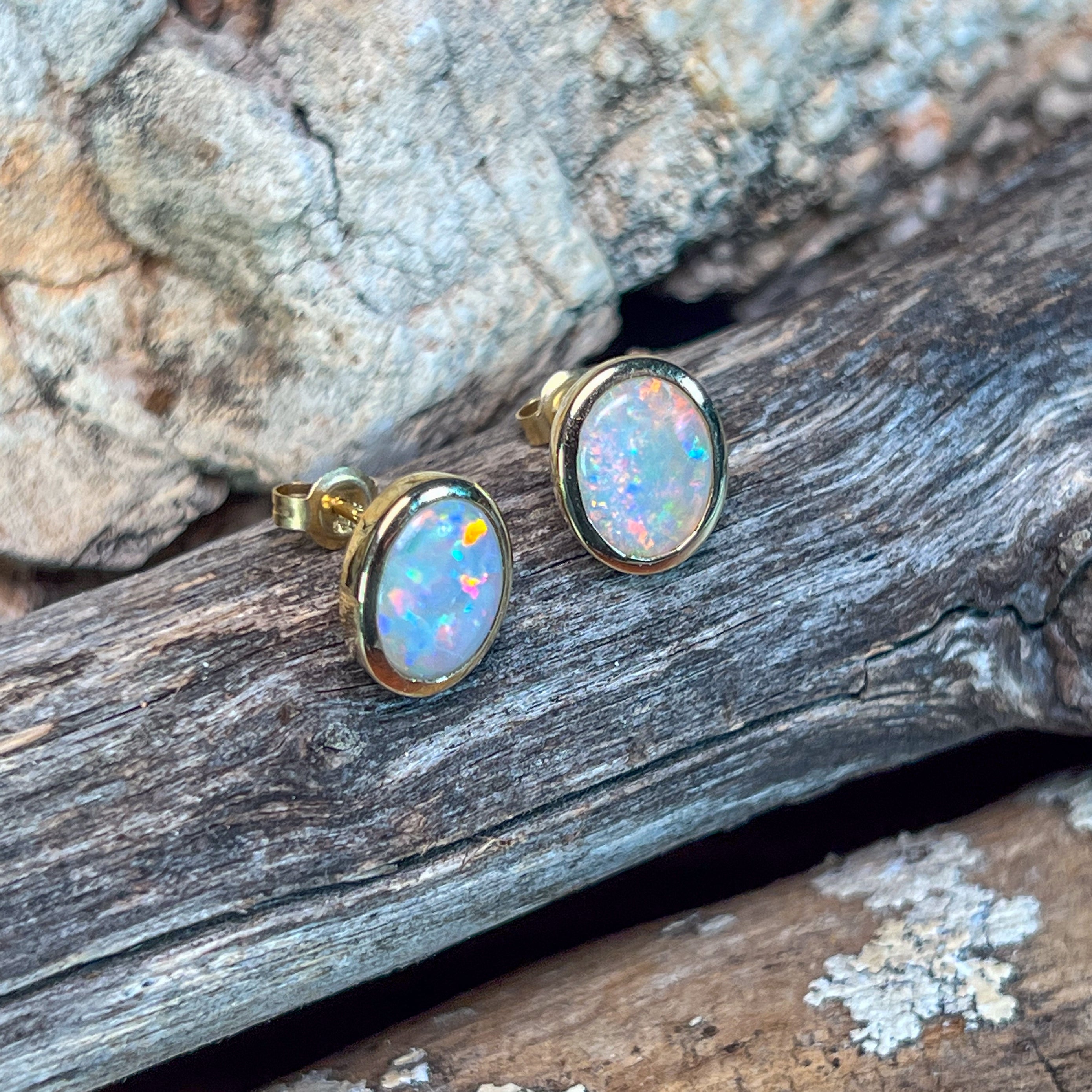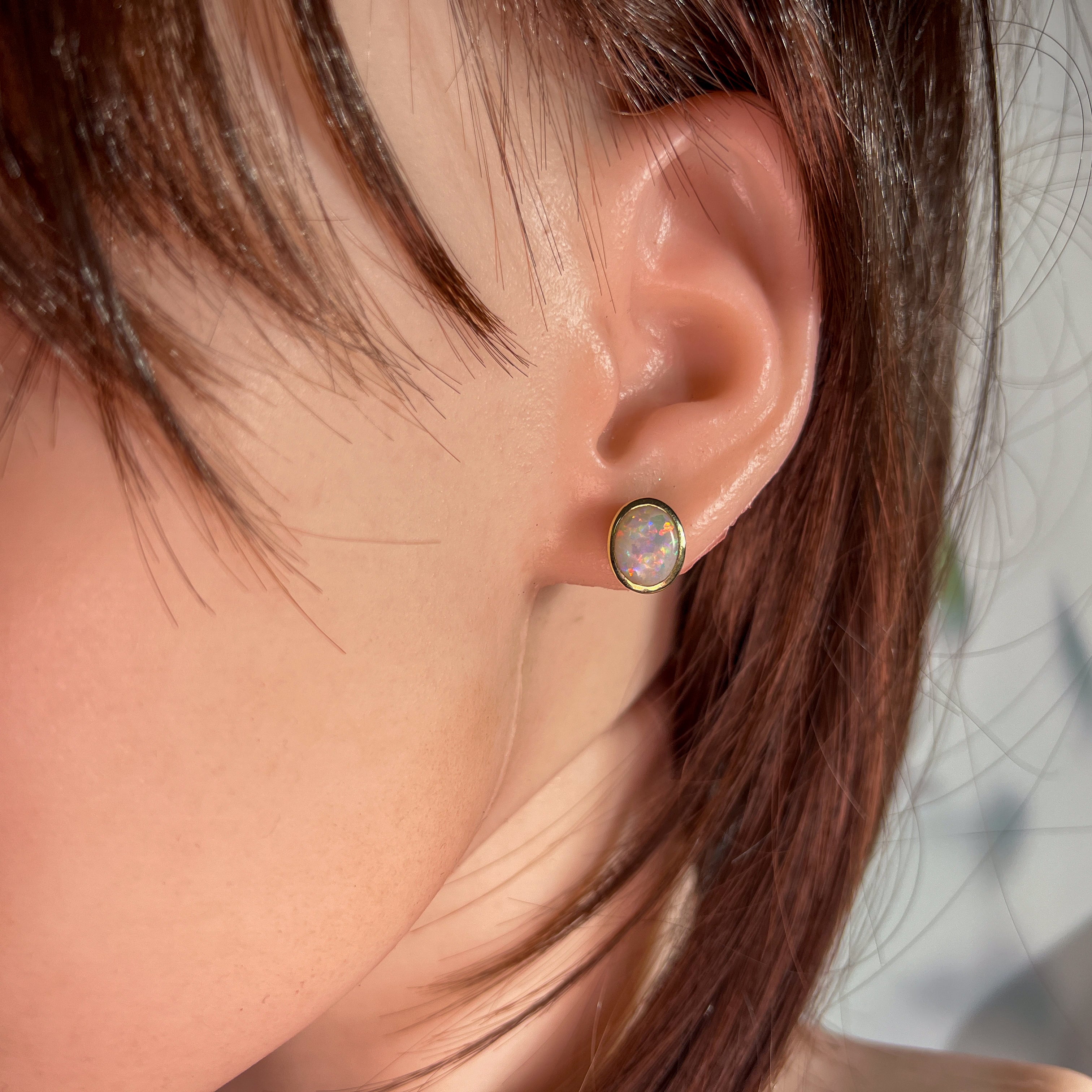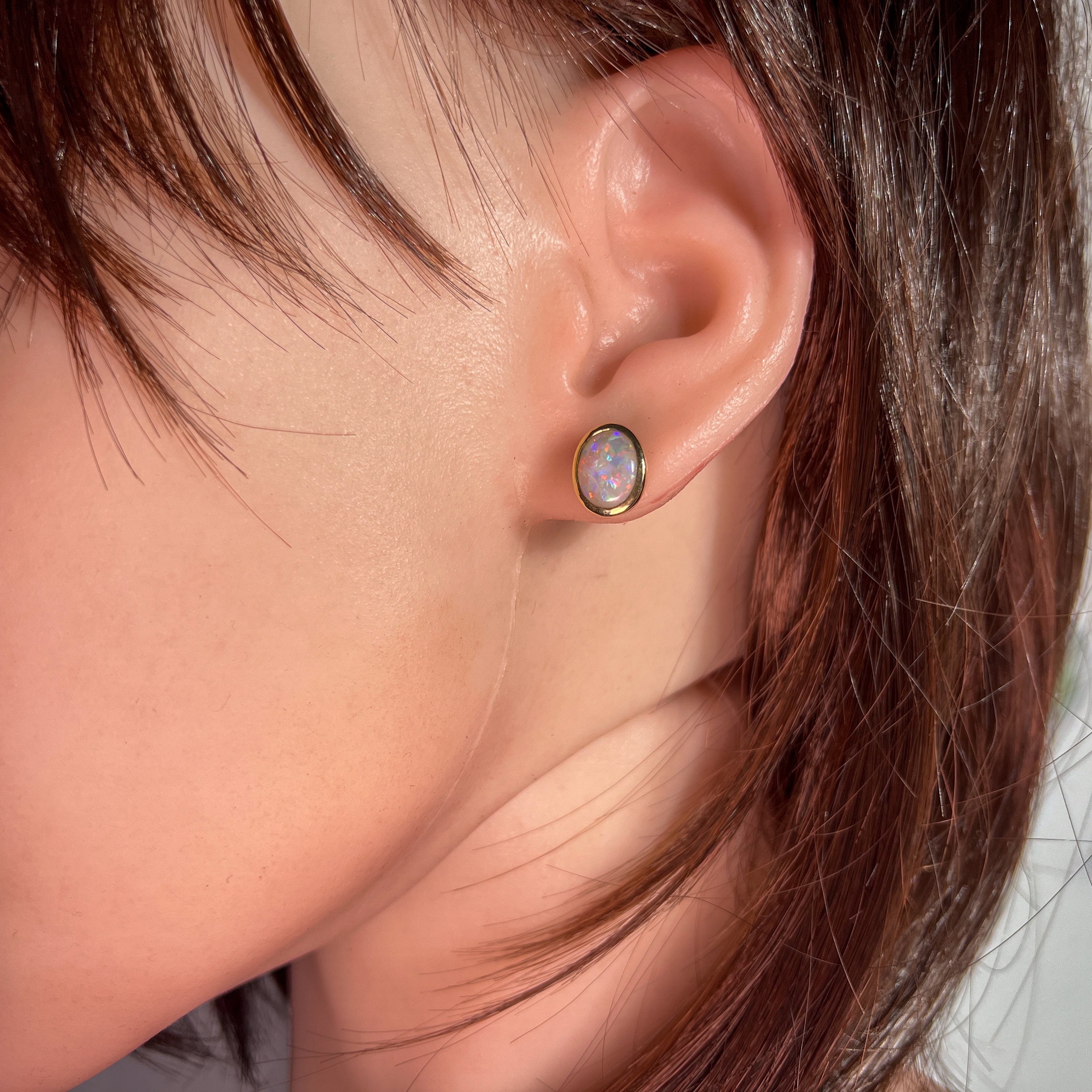 Experience the mesmerizing beauty of these 14kt Yellow Gold Black Opal studs. These black opal earrings are the perfect addition to your fine jewellery collection, adding a touch of elegance and sophistication to any outfit. Each opal is hand-selected for its unique and vibrant colors, making these earrings a true statement piece.