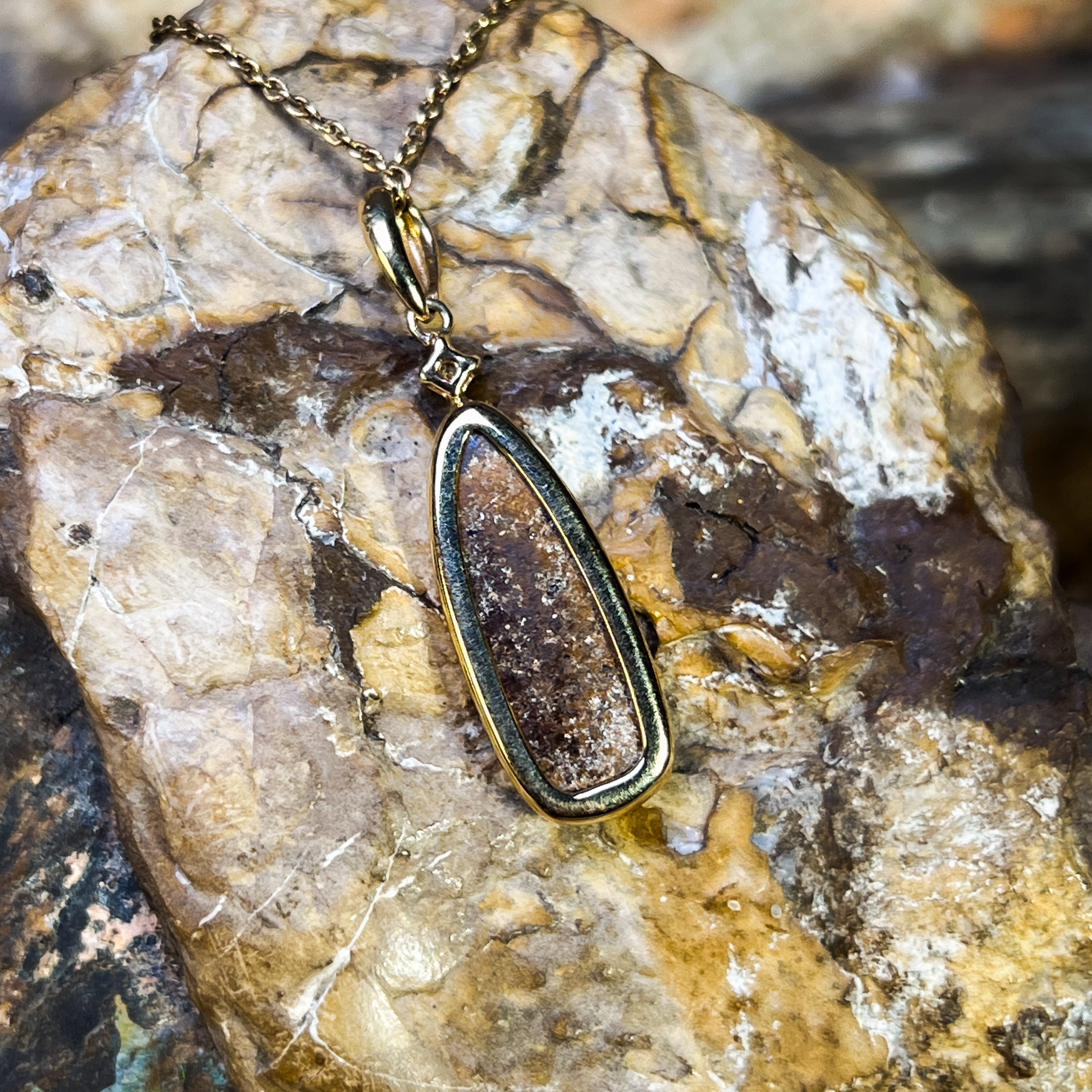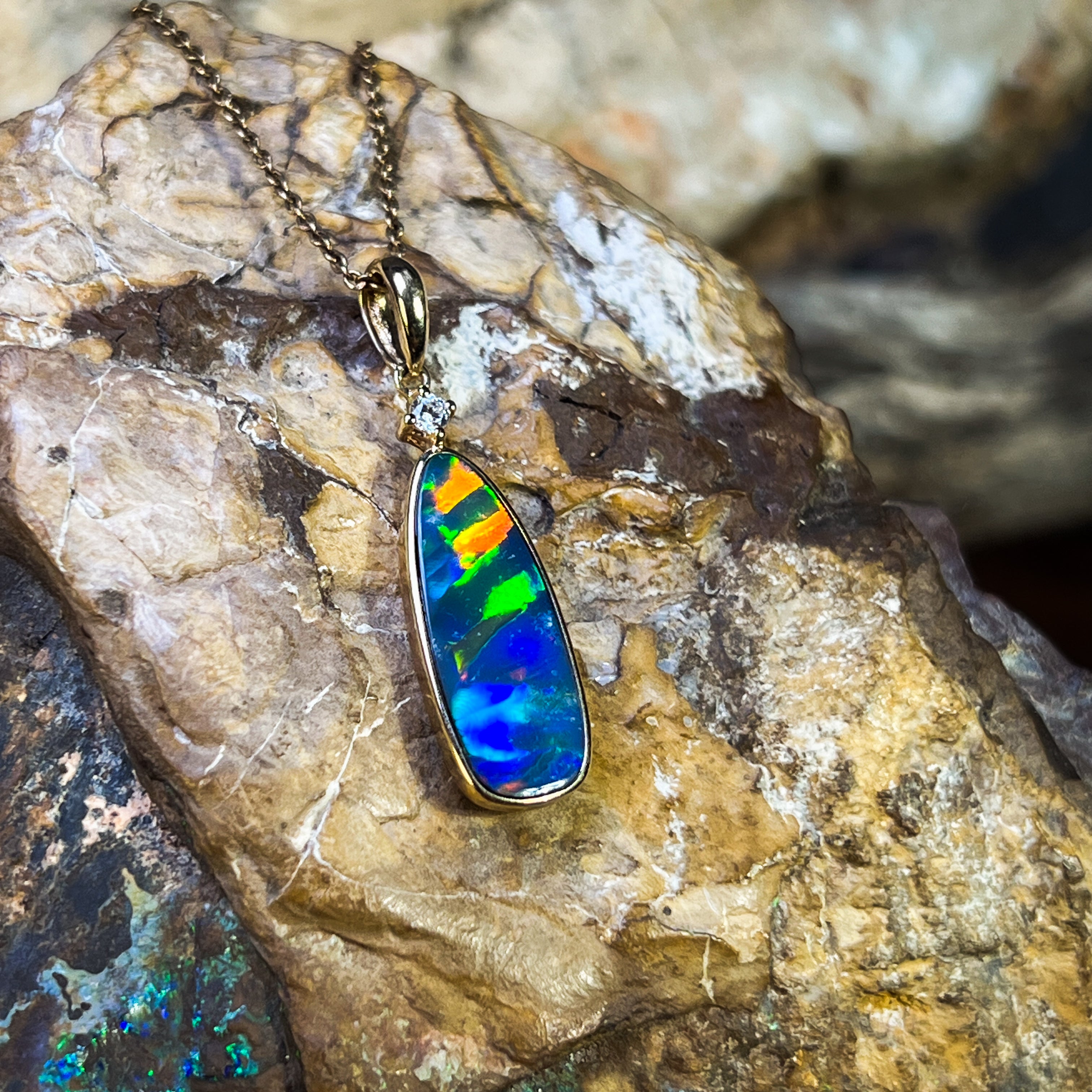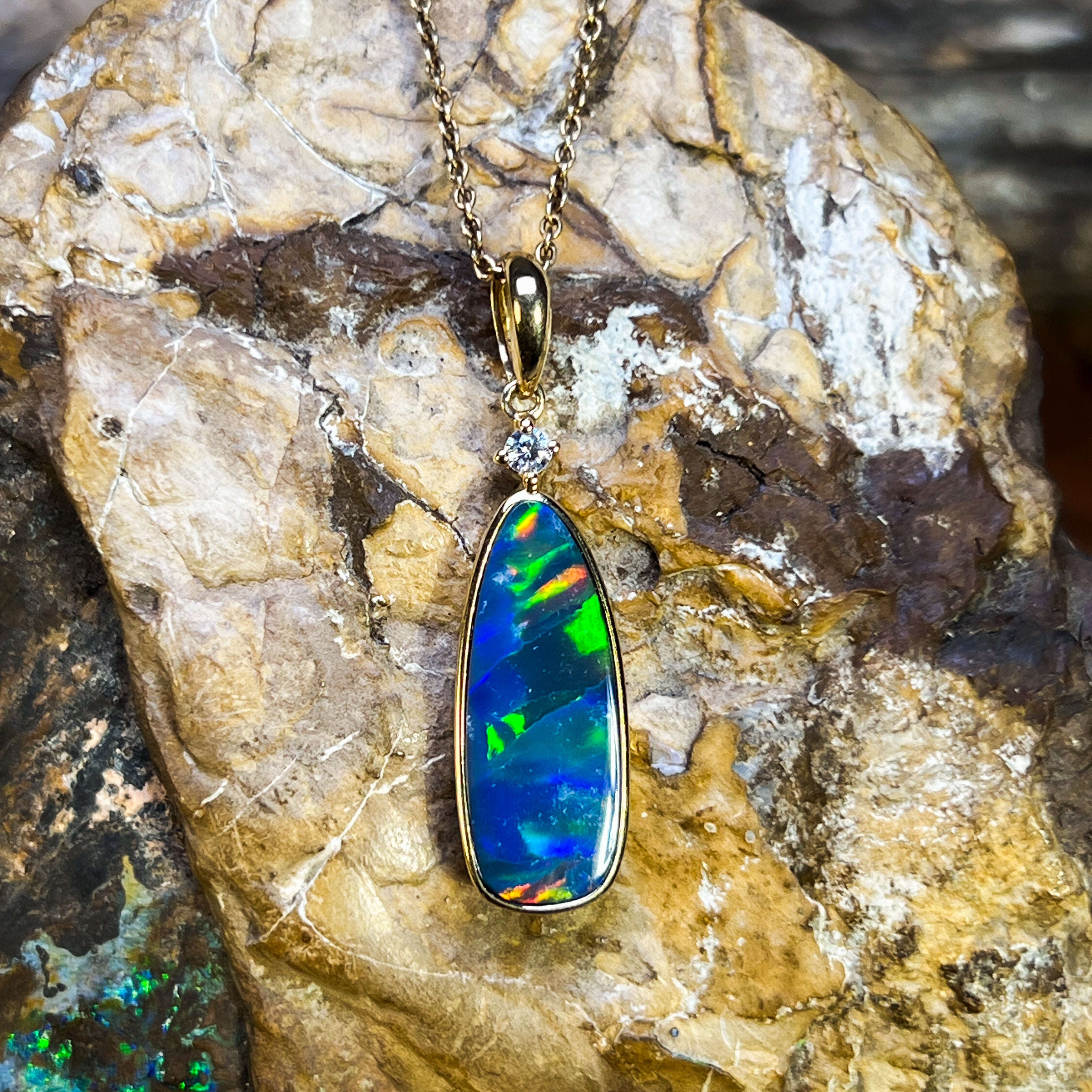 14kt Yellow Gold drop style Opal doublet pendant and diamond