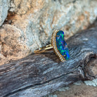 14kt Yellow Gold freeform Black Opal 2.73ct and diamond ring
