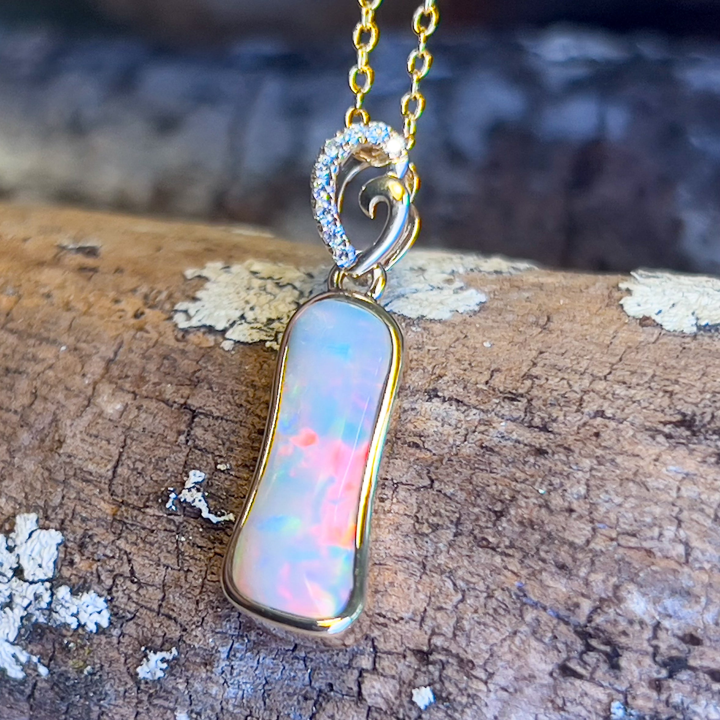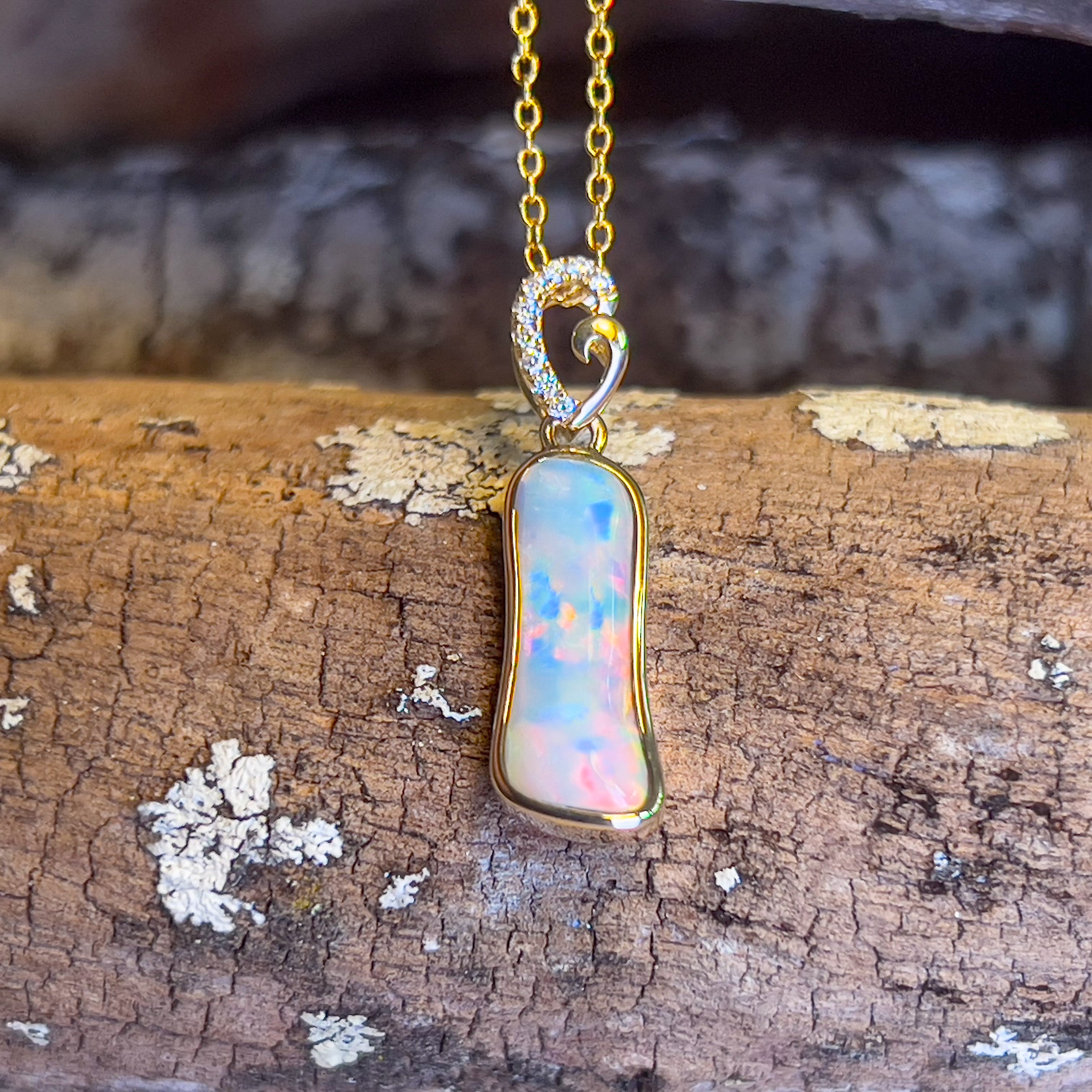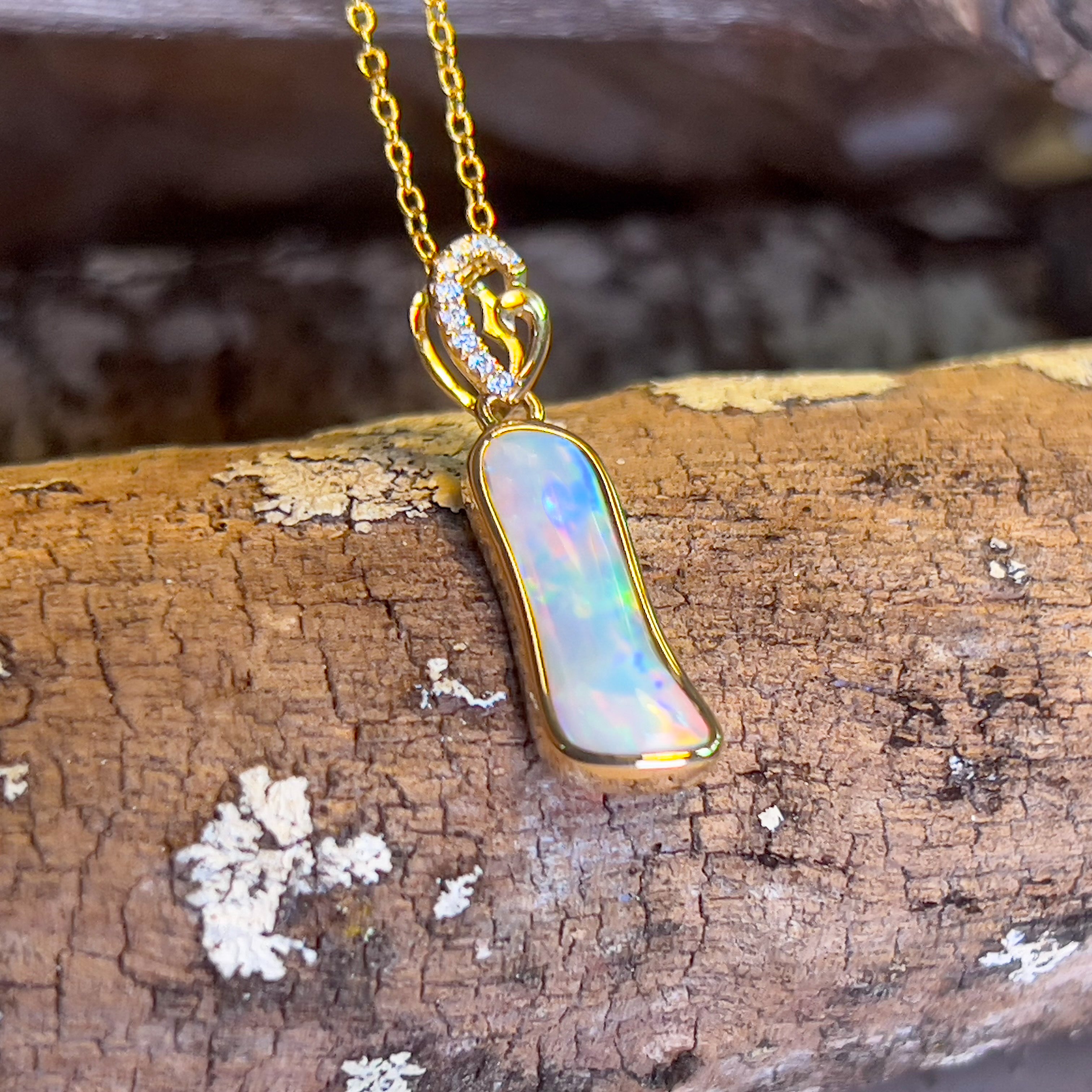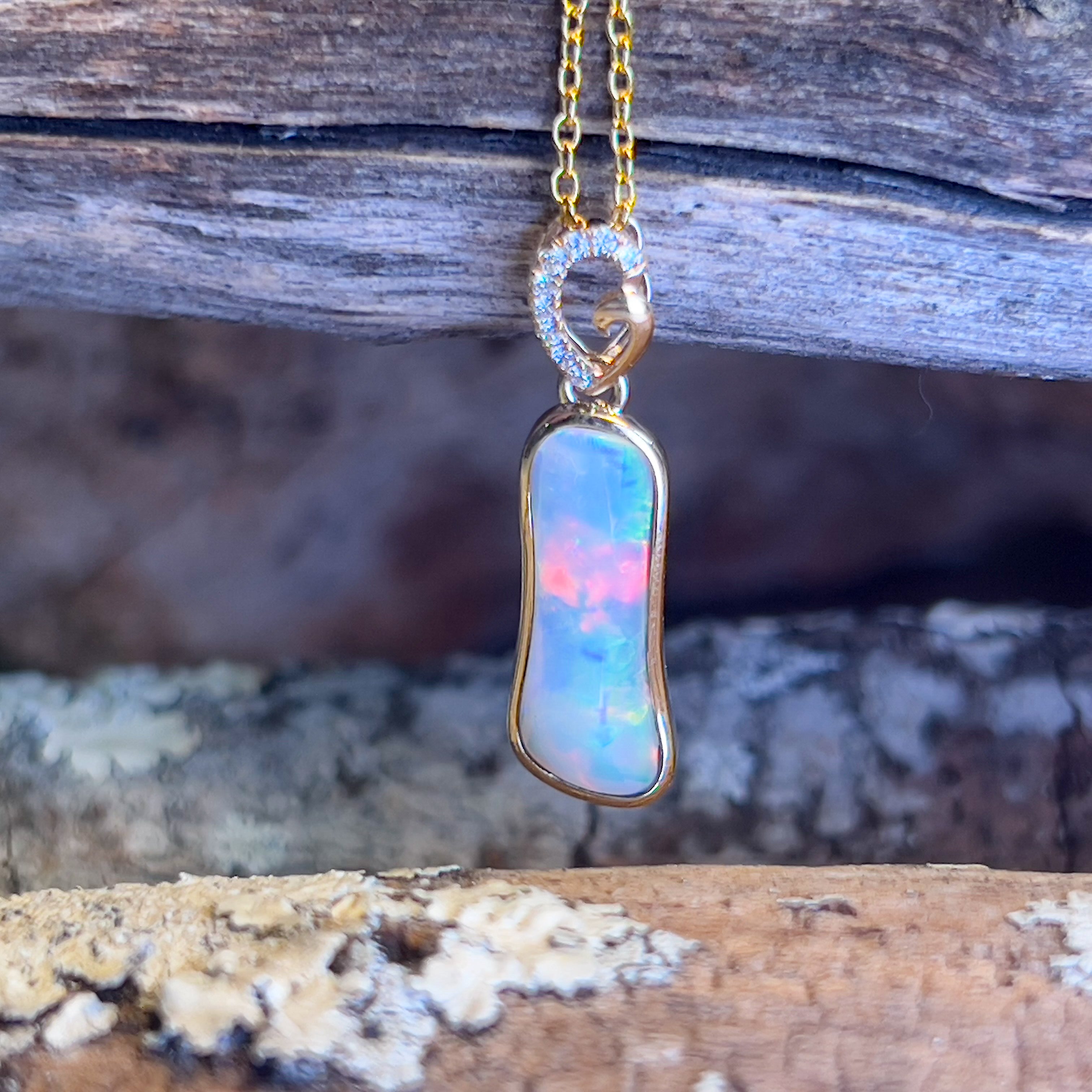 14kt Yellow Gold freeform Crystal Opal 1.05ct and diamond pendant