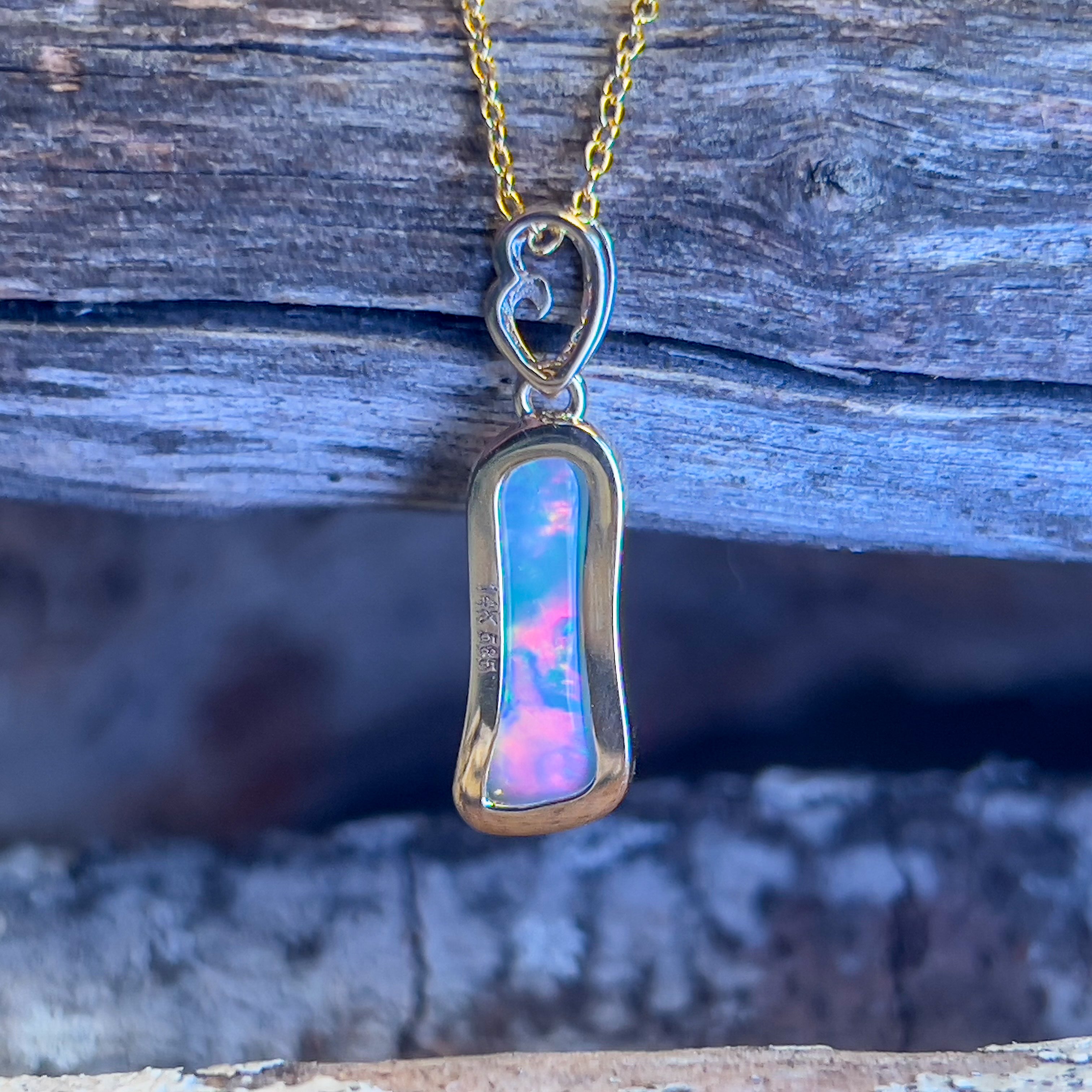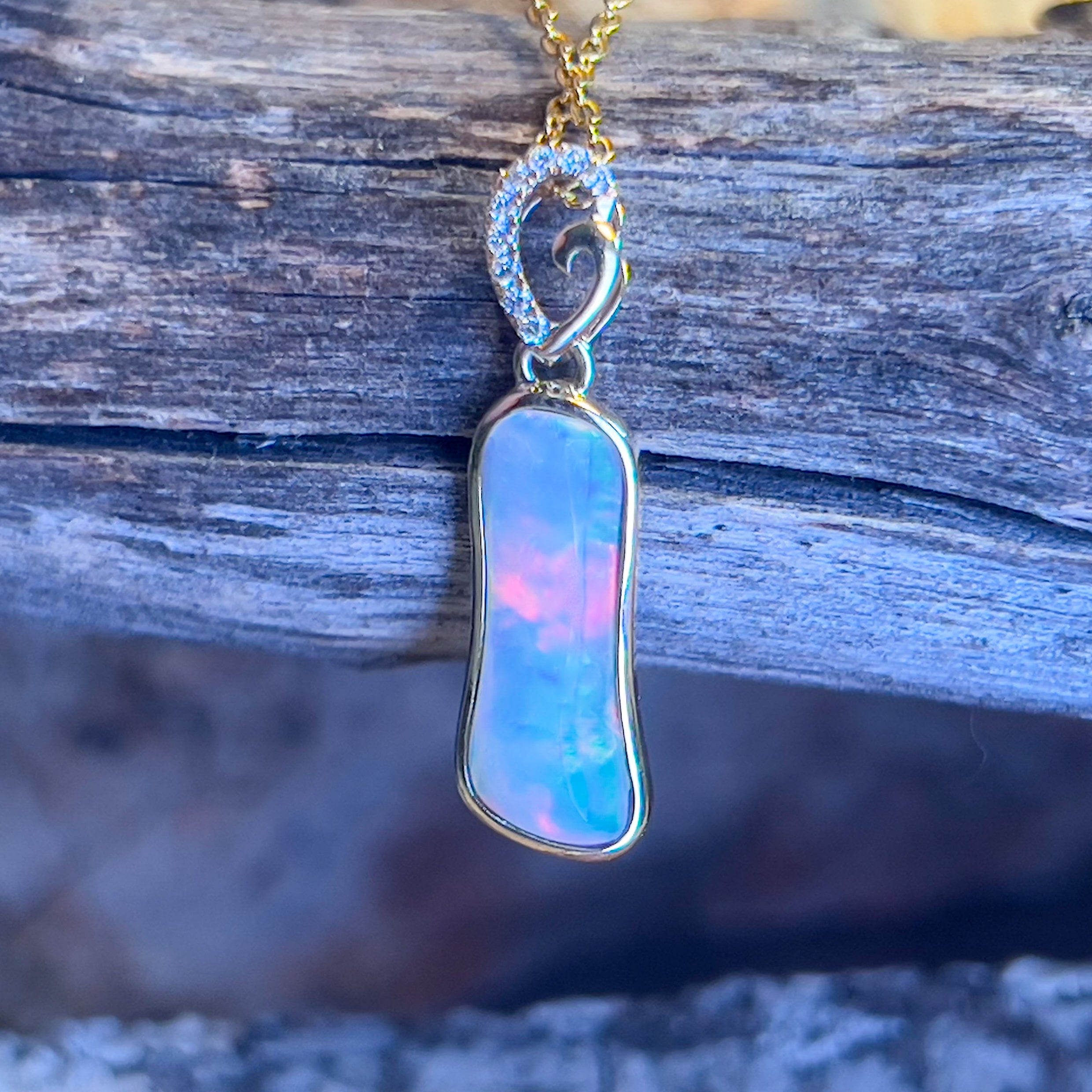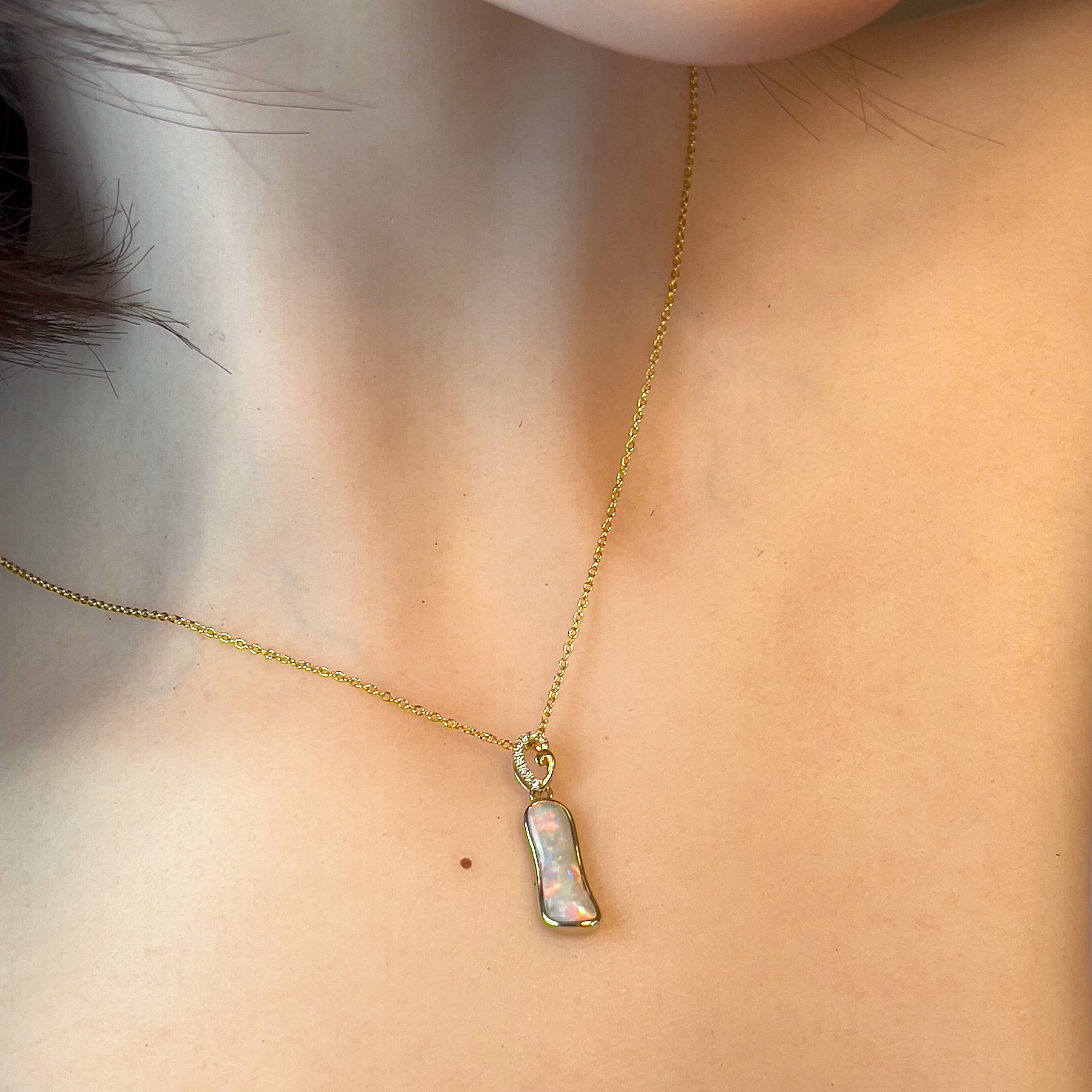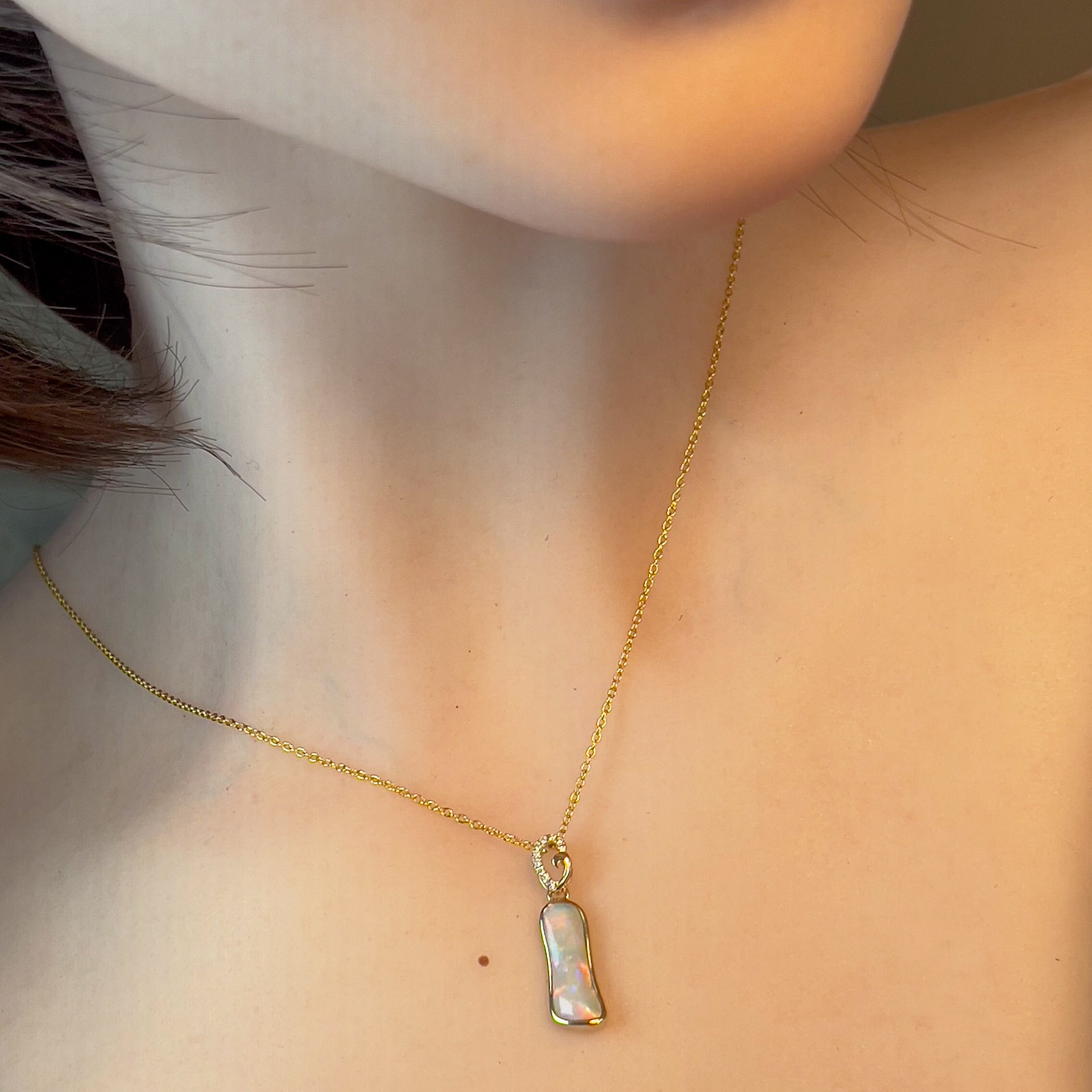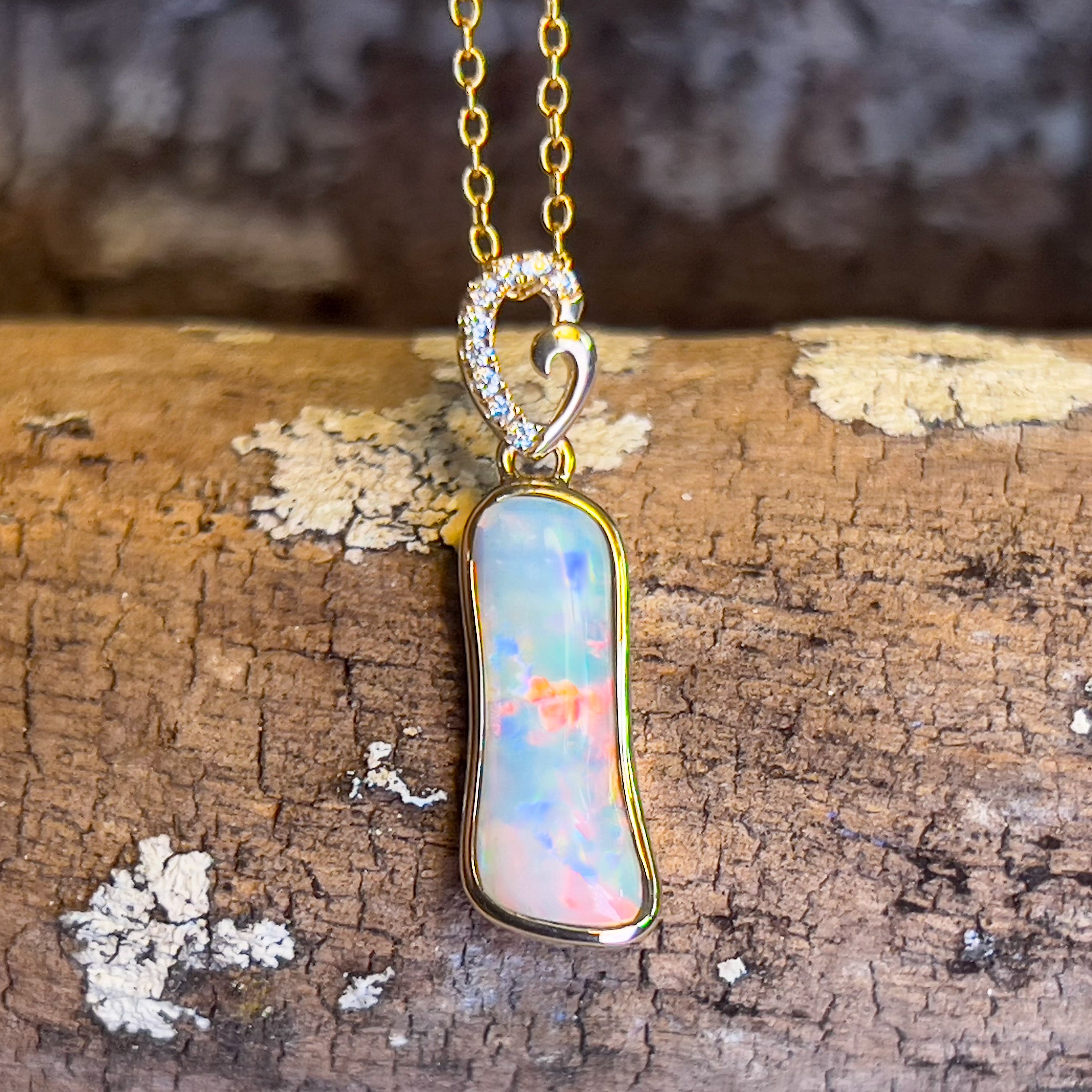14kt Yellow Gold freeform Crystal Opal 1.05ct and diamond pendant