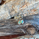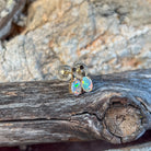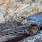 14kt Yellow Gold Opal earrings studs short bar claw set