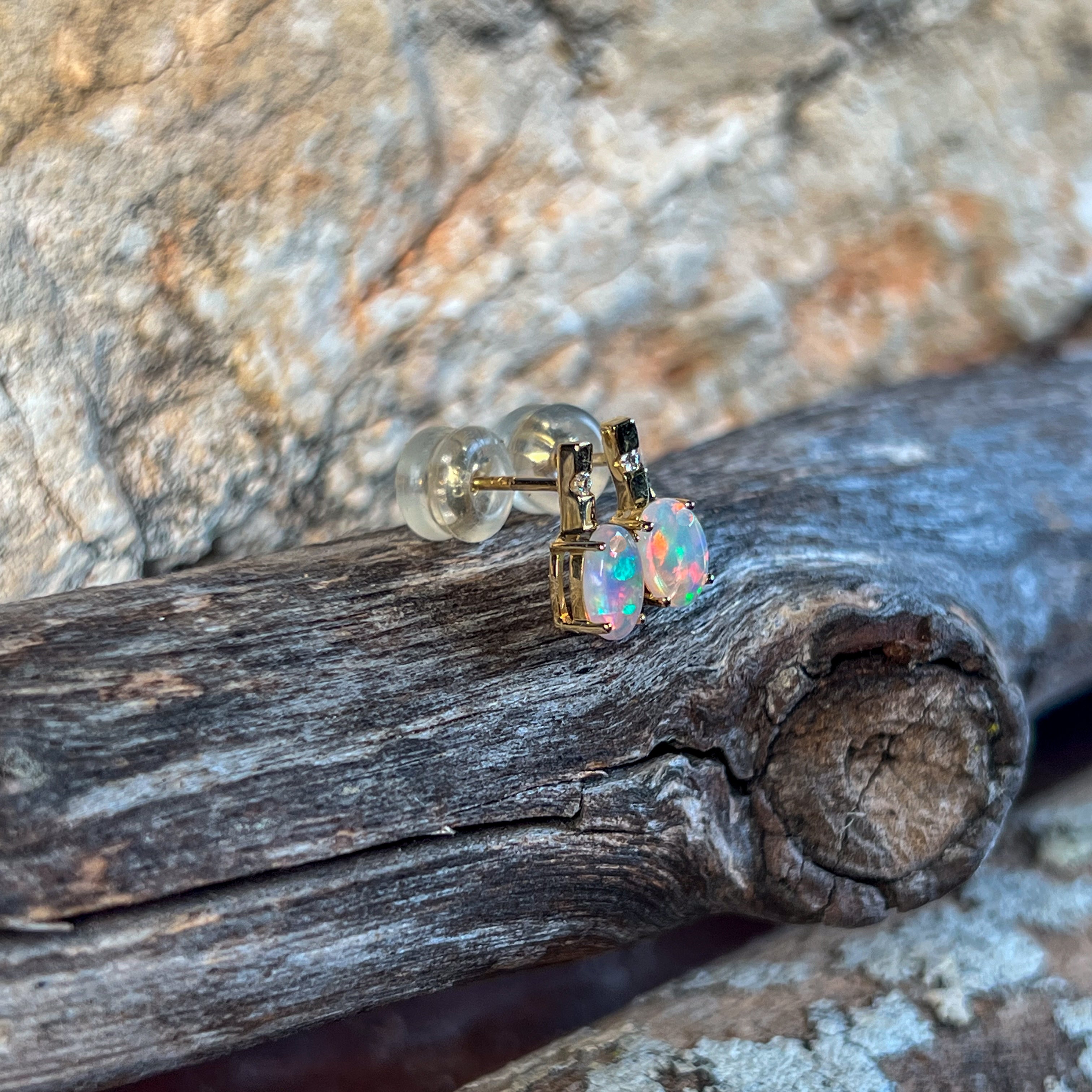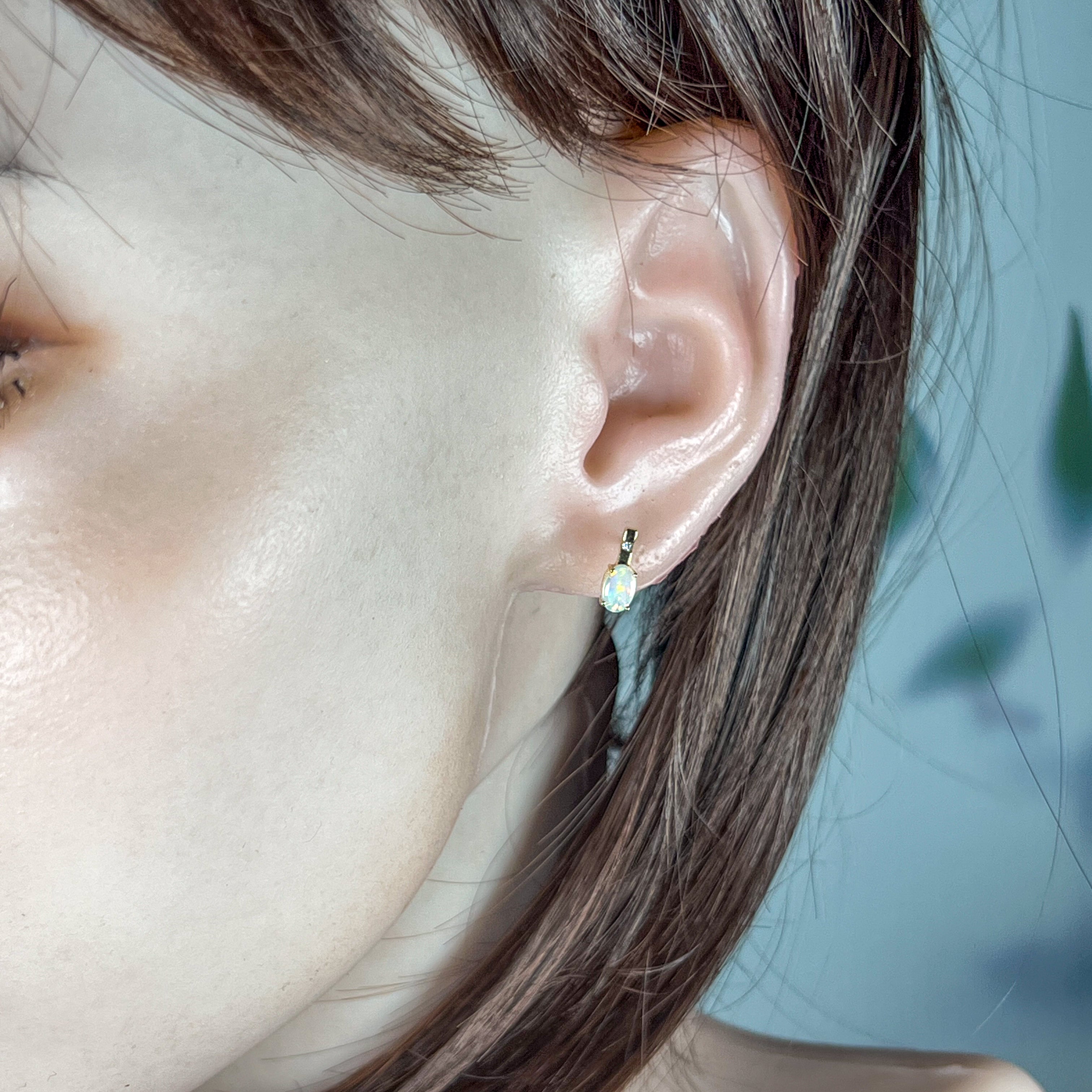 Elevate your everyday elegance with these exquisite 14kt yellow gold opal studs. Featuring delicate 6x4mm opals paired with sparkling diamonds, these dainty earrings strike the perfect balance between understated sophistication and radiant beauty. The warm glow of yellow gold complements the opal's mesmerising play of colour, creating a timeless piece that transitions effortlessly from day to night. Perfect for those who appreciate refined jewellery that makes a subtle yet unforgettable statement.