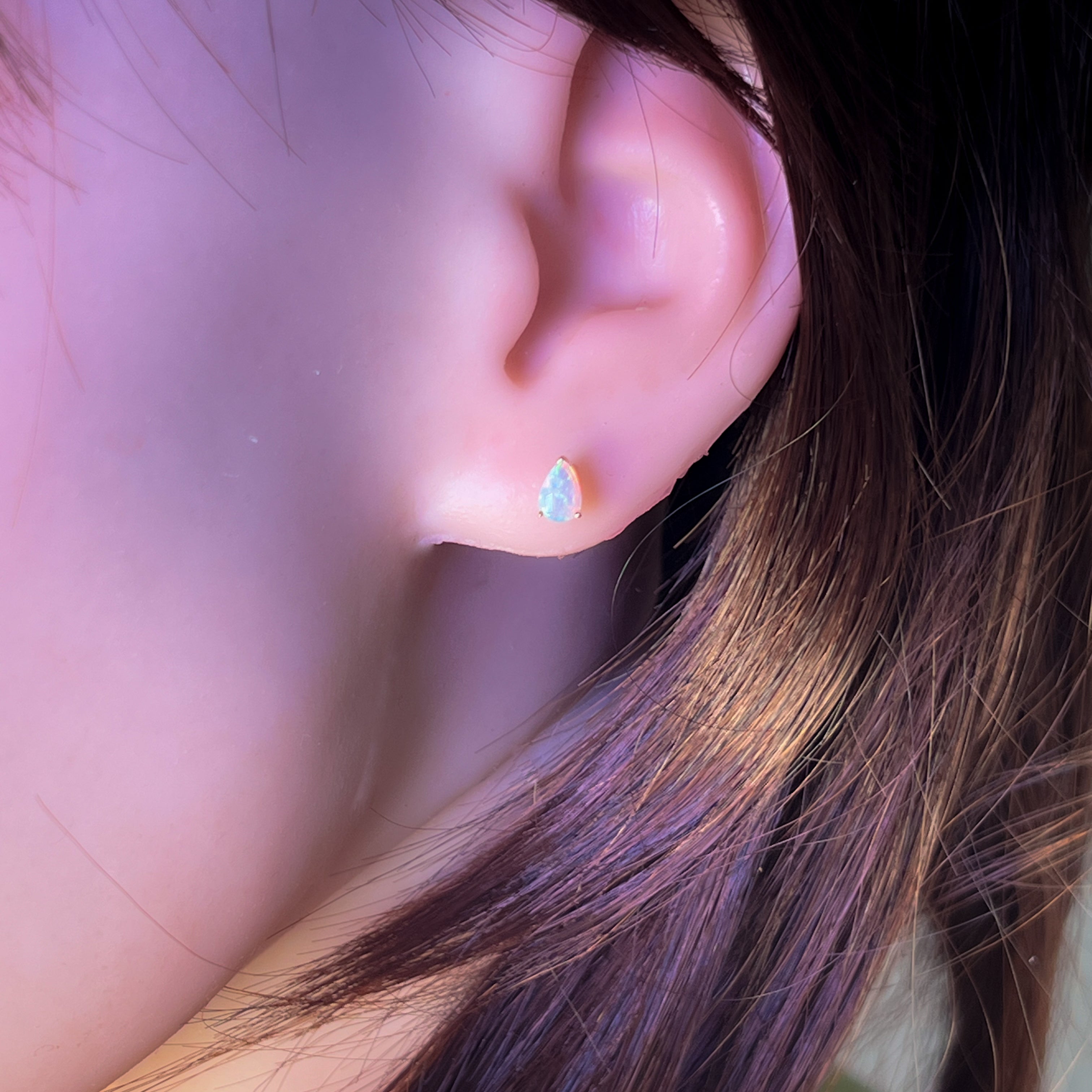 14kt Yellow Gold Pear shape 6x4mm Opal crystal studs