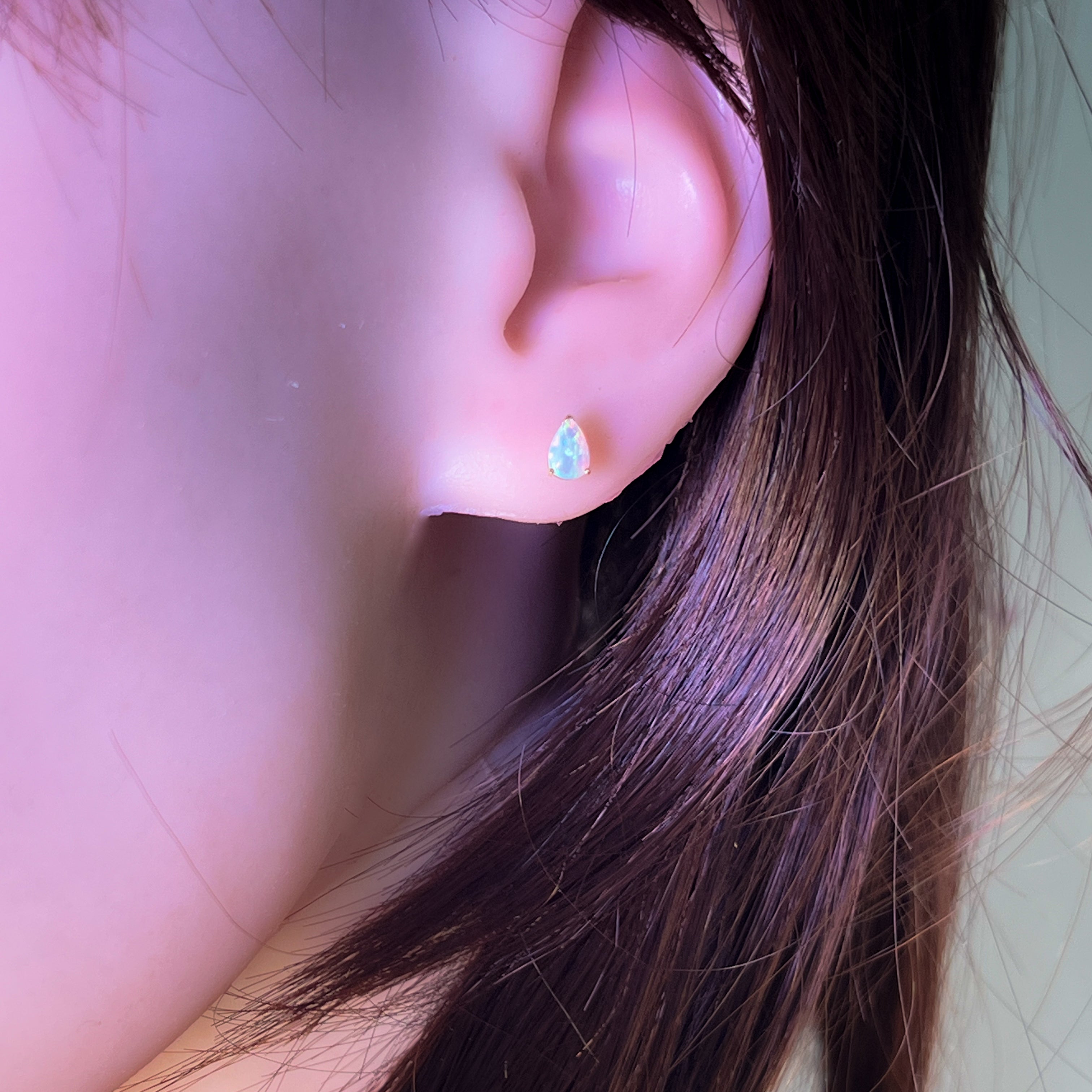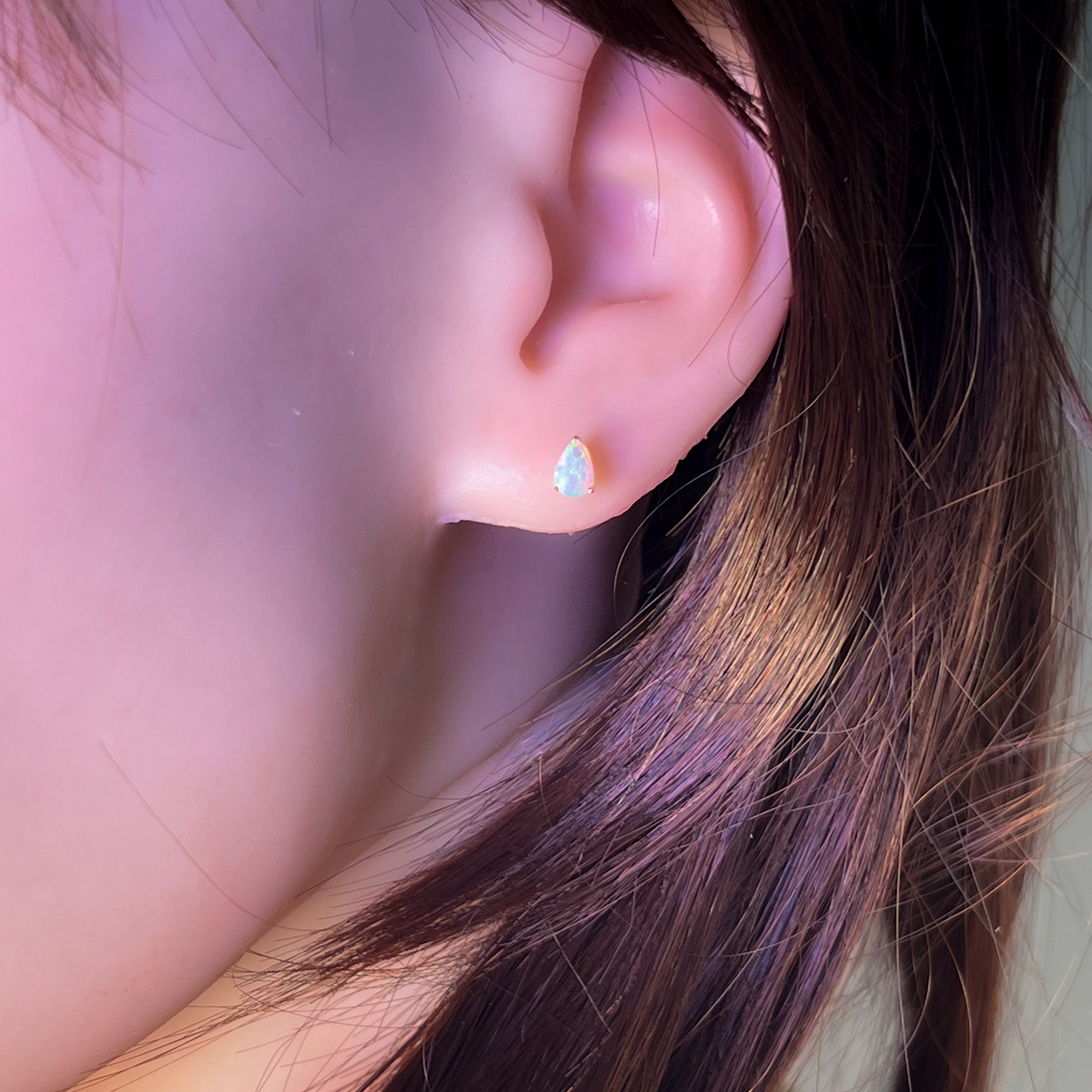 Indulge in the simple elegance of our 14kt Yellow Gold Pear shape 6x4mm Opal crystal studs. These dainty studs feature a stunning pear shape design that adds a touch of sophistication to any outfit. Elevate your style with the natural beauty and charm of these opal crystal studs.