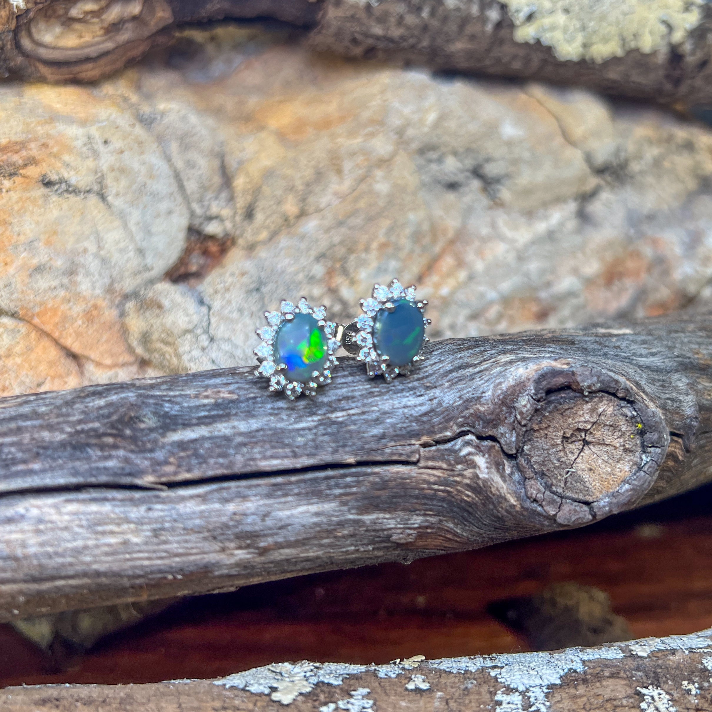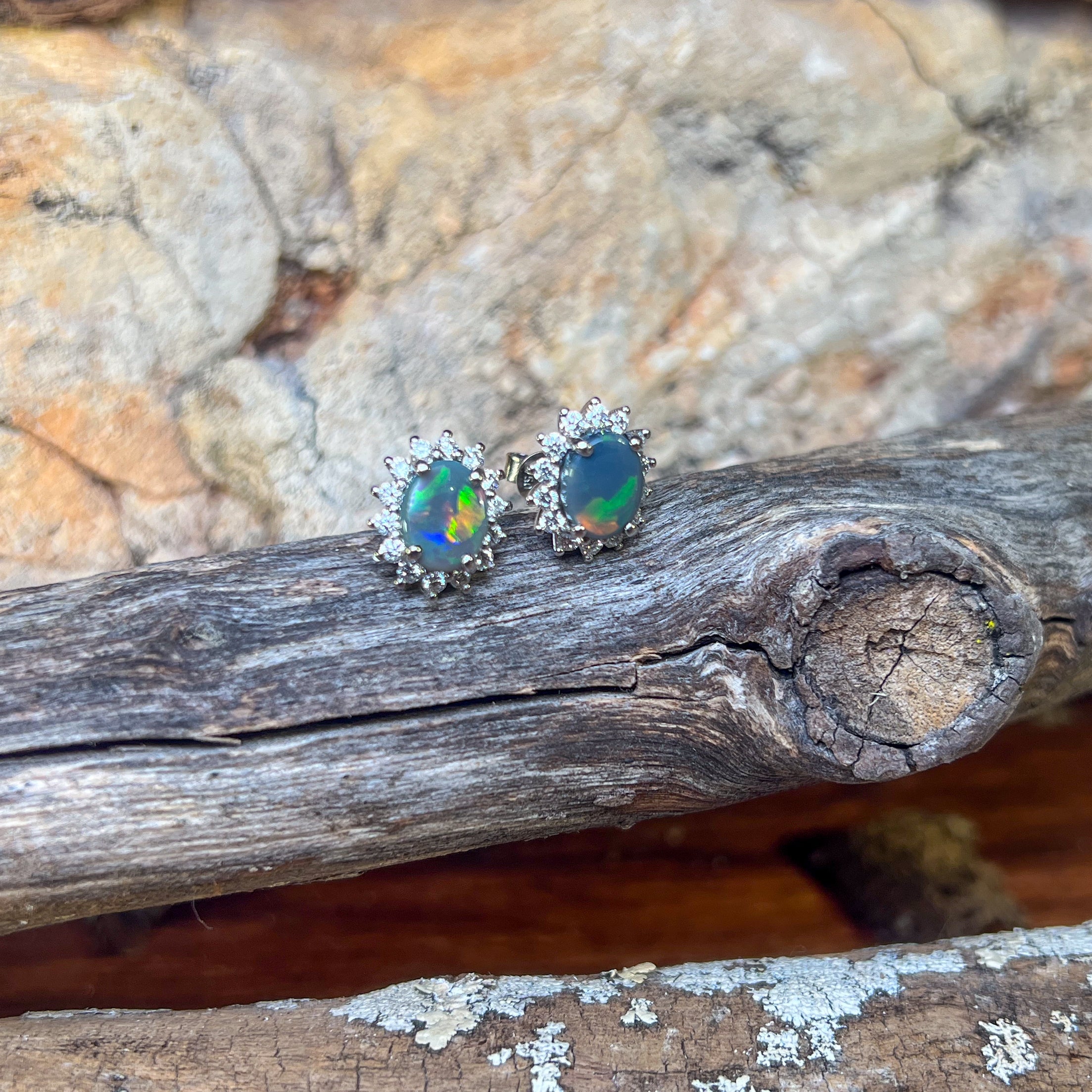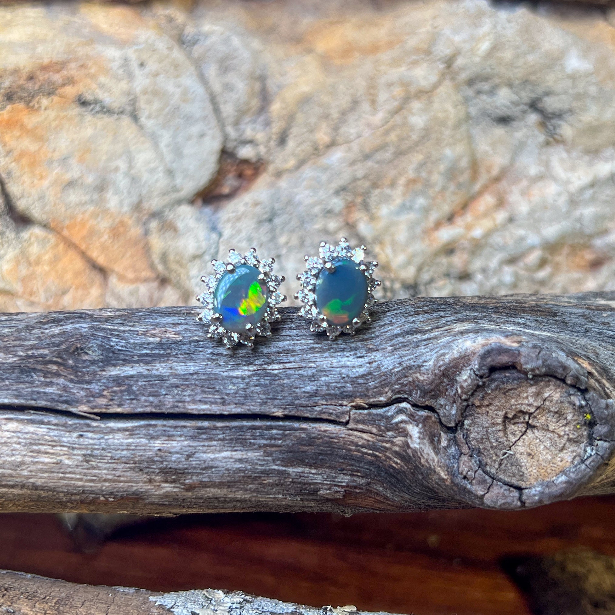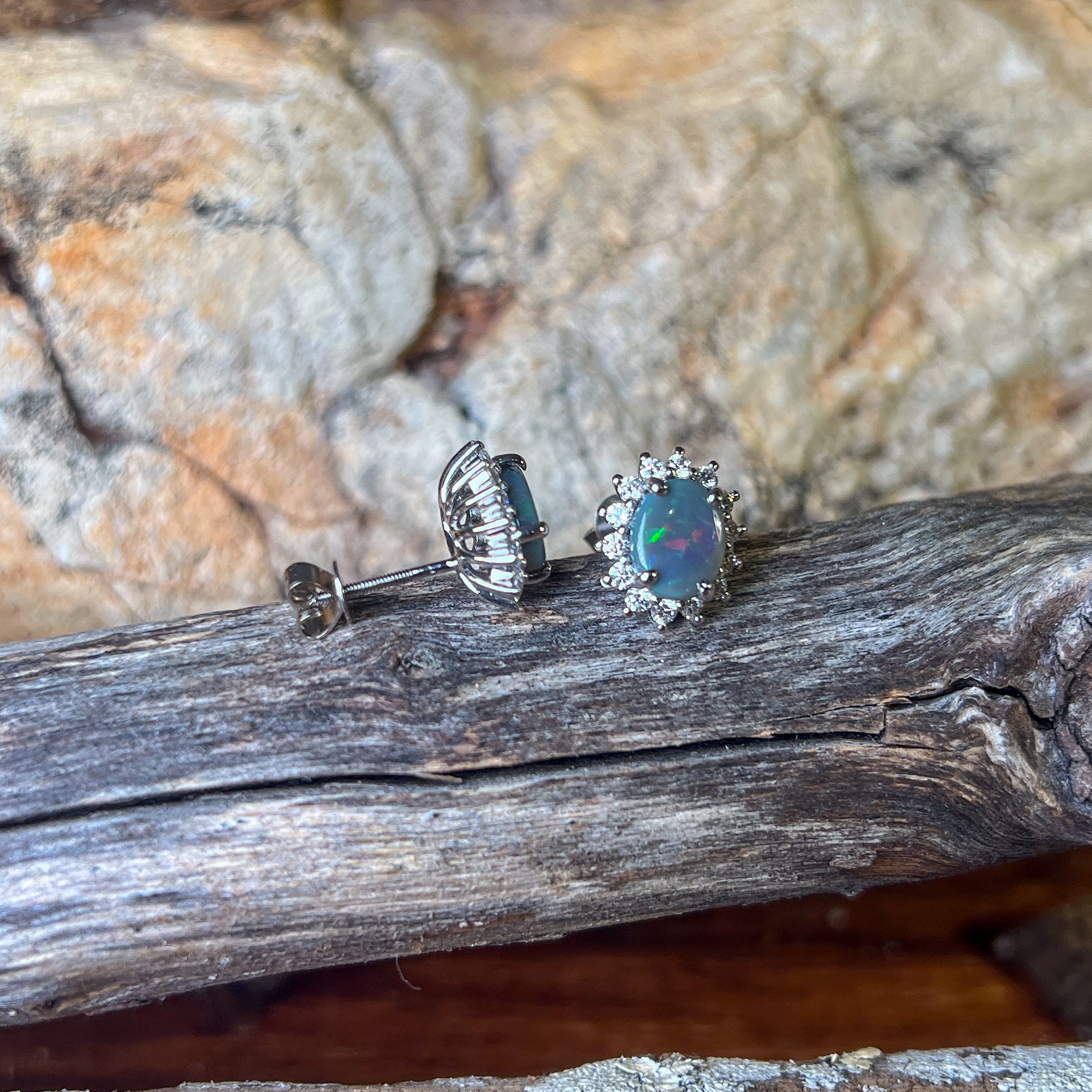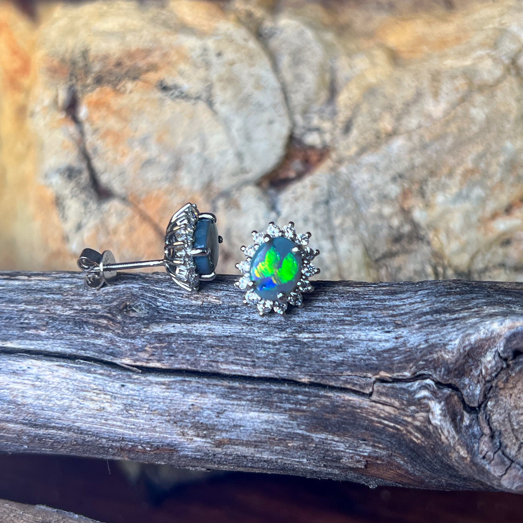 18kt White Gold Black Opal 1.93ct diamond cluster stud earrings