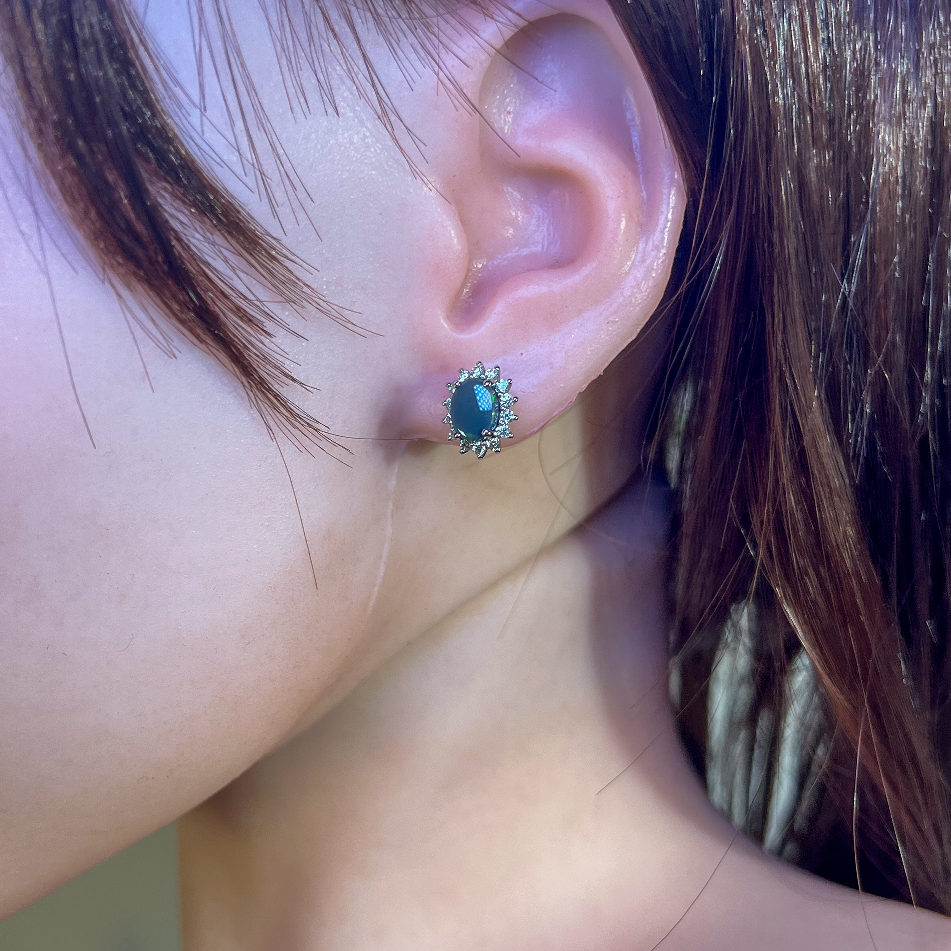 Indulge in luxury with our 18kt White Gold Black Opal 1.93ct diamond cluster stud earrings. These classic and high-end earrings are the perfect addition to any jewelry collection. Let the natural iridescence of black opal and sparkling diamonds elevate your style and make a statement.
