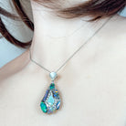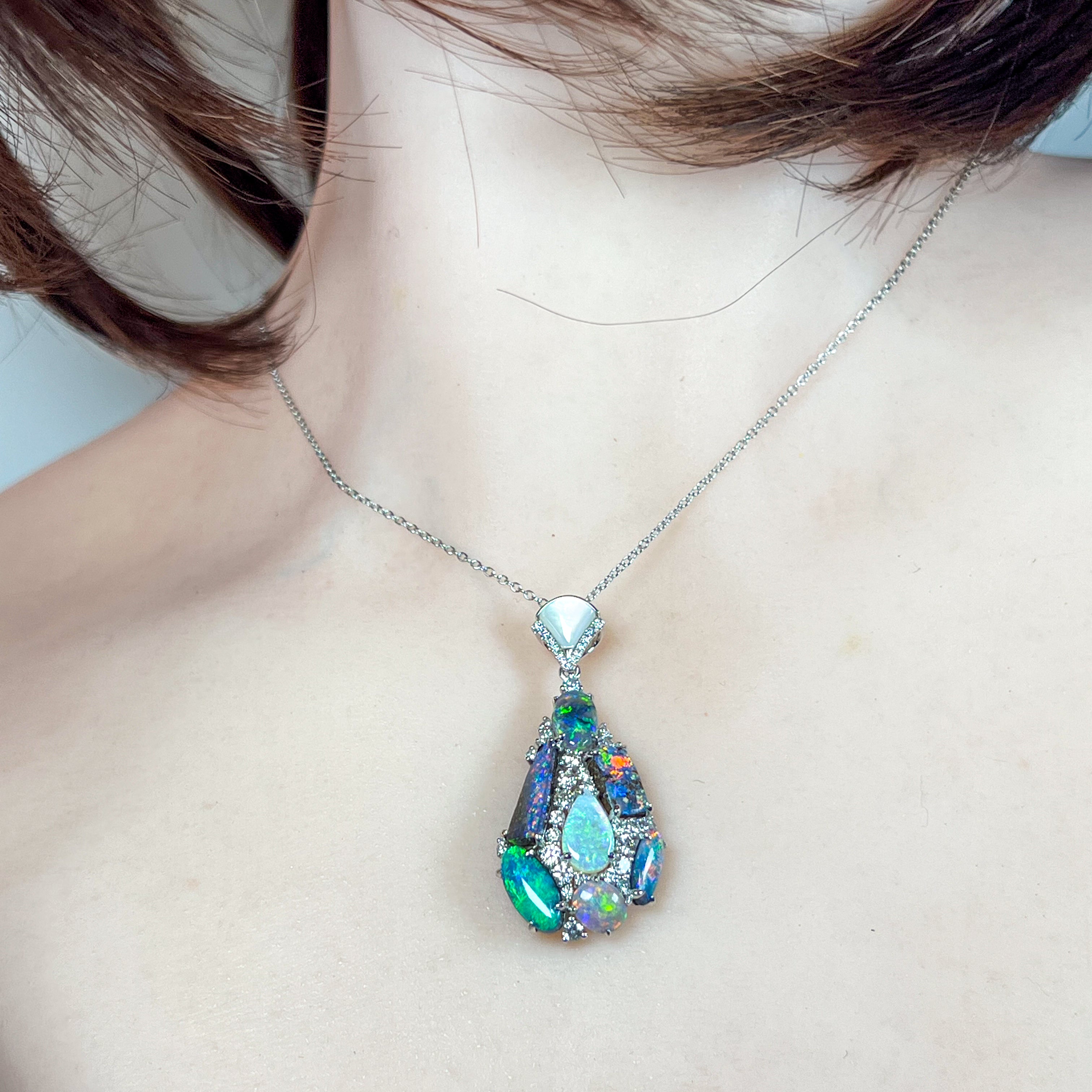 18kt White Gold cluster freeform Drop shape Opal pendant with mother of Pearl and diamonds