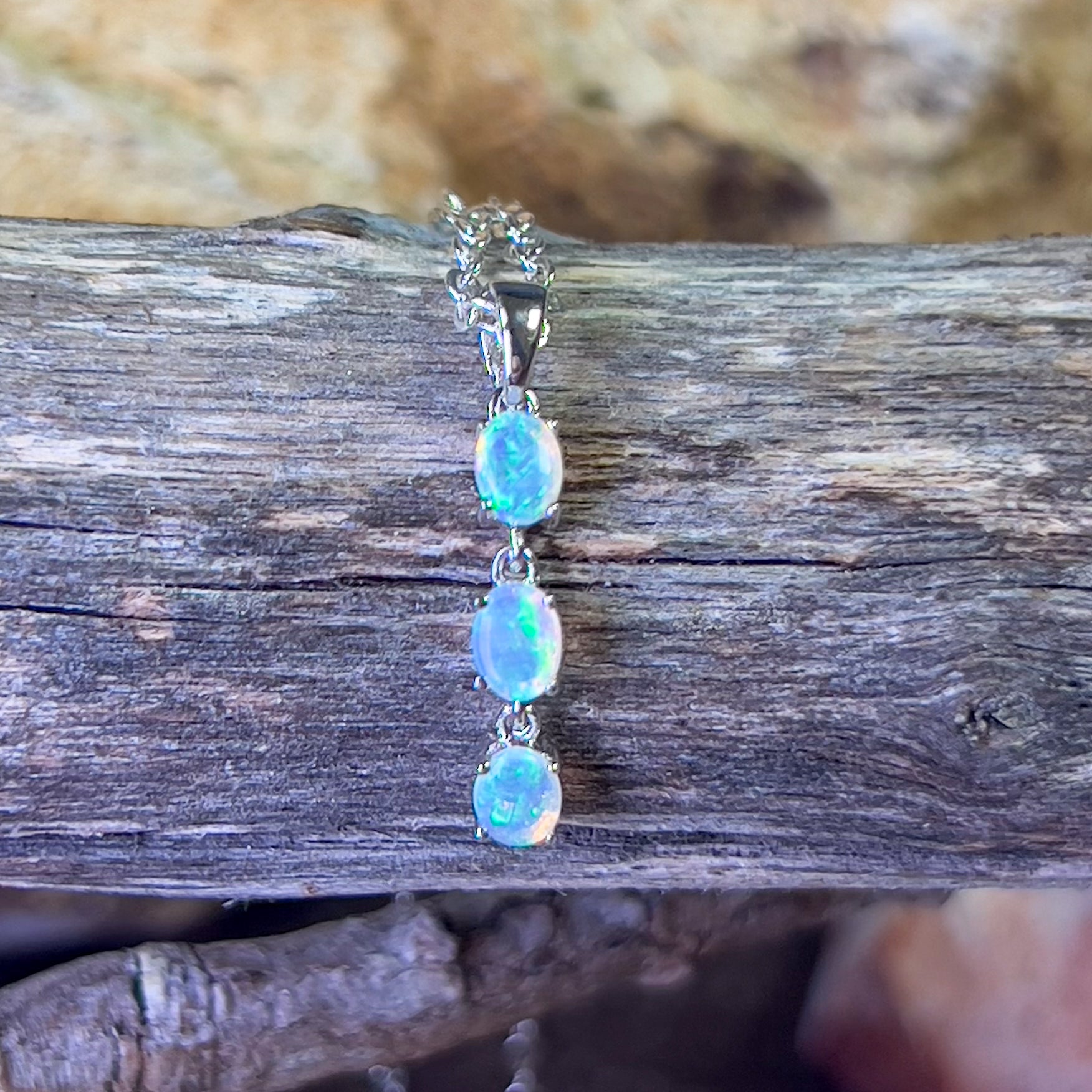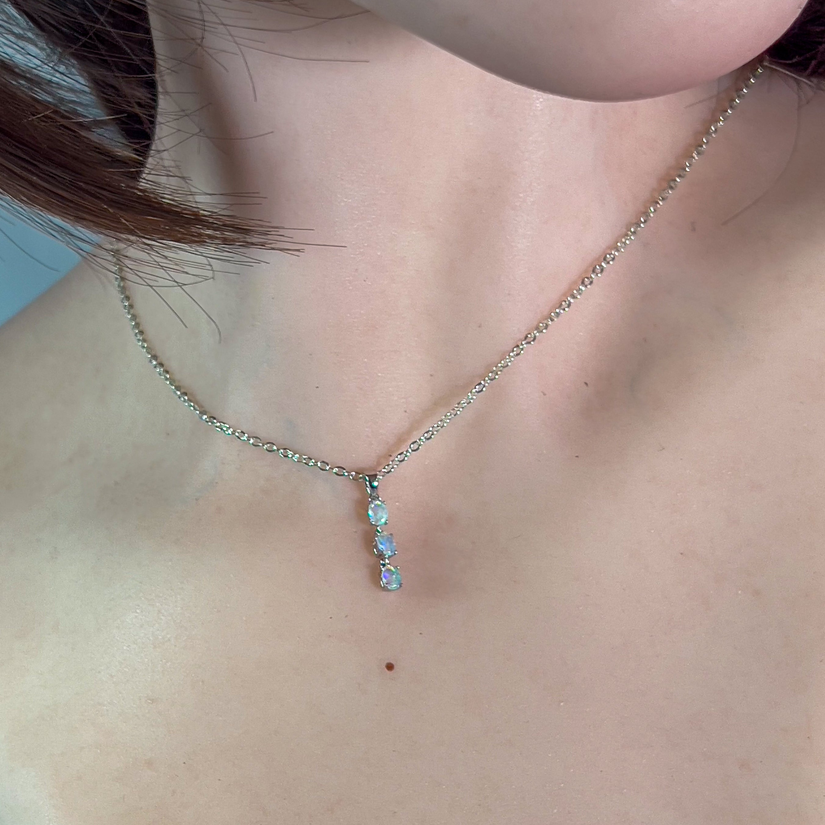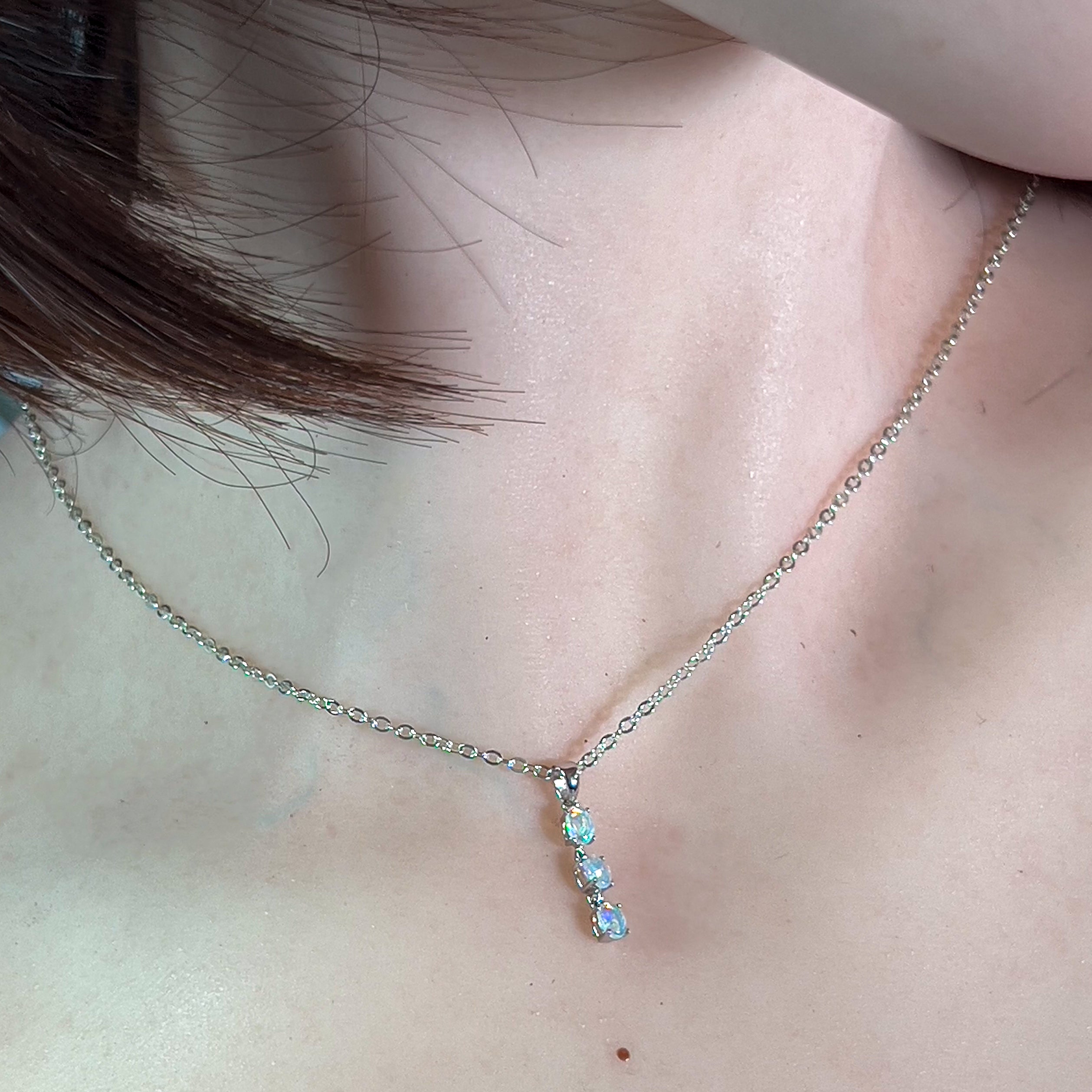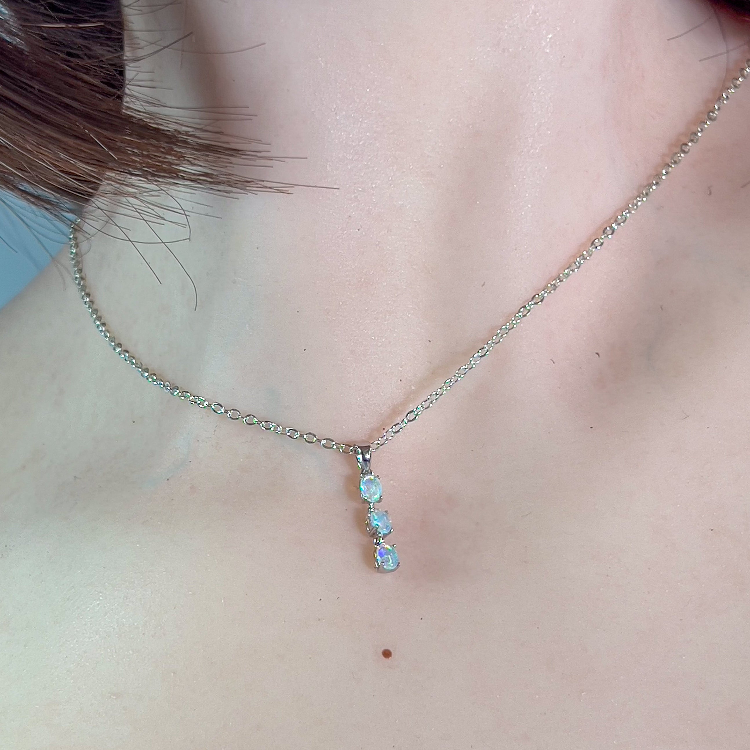 One 18kt White Gold Crystal Opal necklace drop dangle design