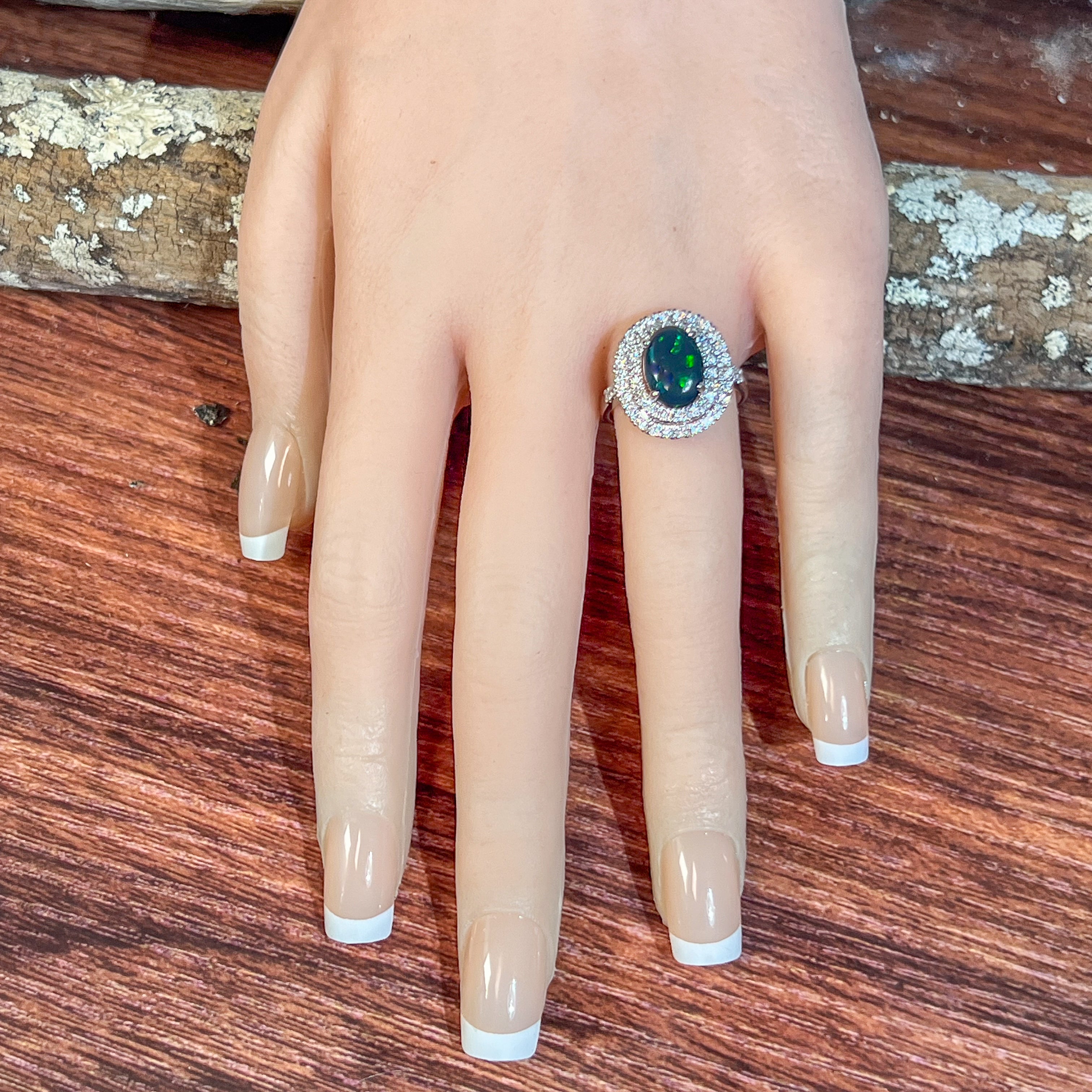 Opal colours: Green and Red flashes Black base
