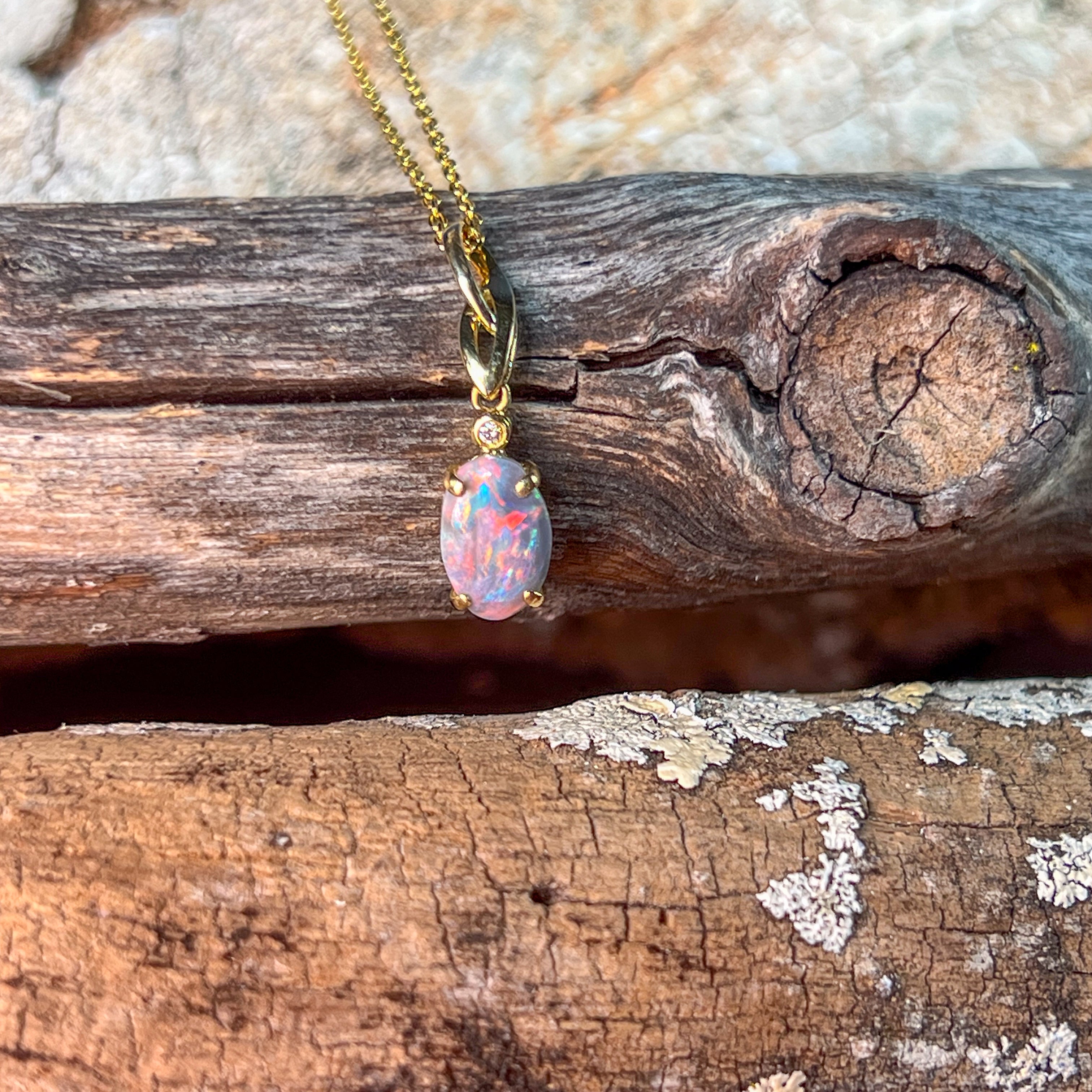 This elegant pendant features a striking 1.10ct black opal set in 18kt yellow gold, combining timeless style with a bold flash of color. Its minimalist design ensures versatile wear, making it an essential addition for those seeking understated luxury with a unique touch.