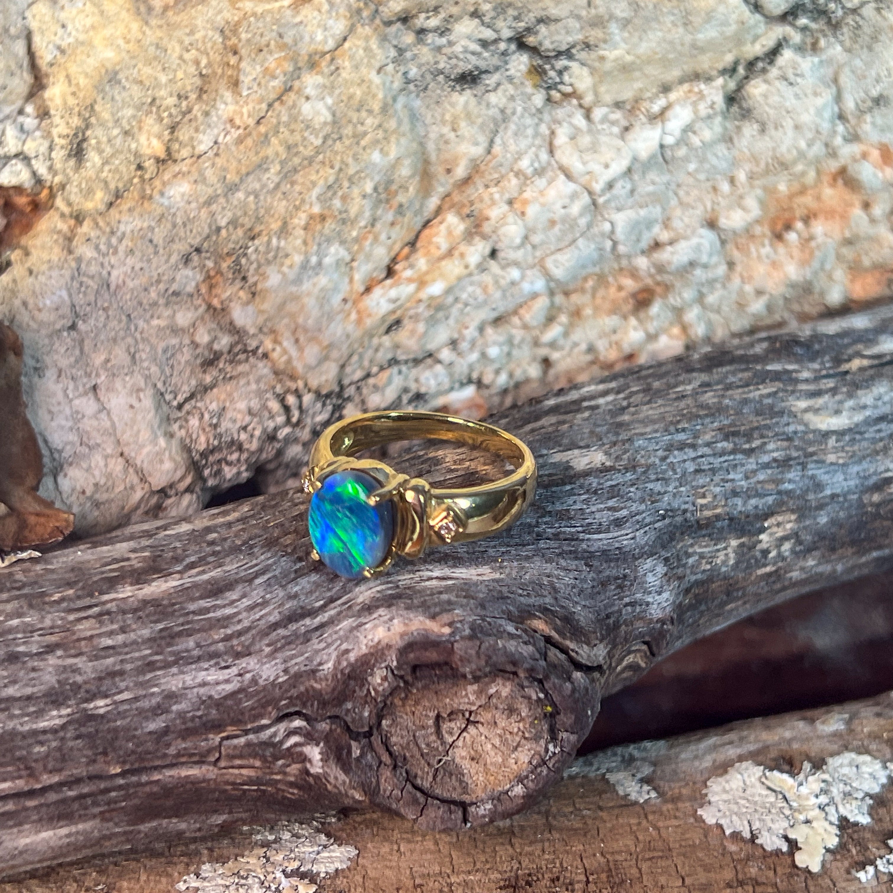 18kt Yellow Gold Black Opal 1.52ct and 2 Diamonds 0.03ct ring