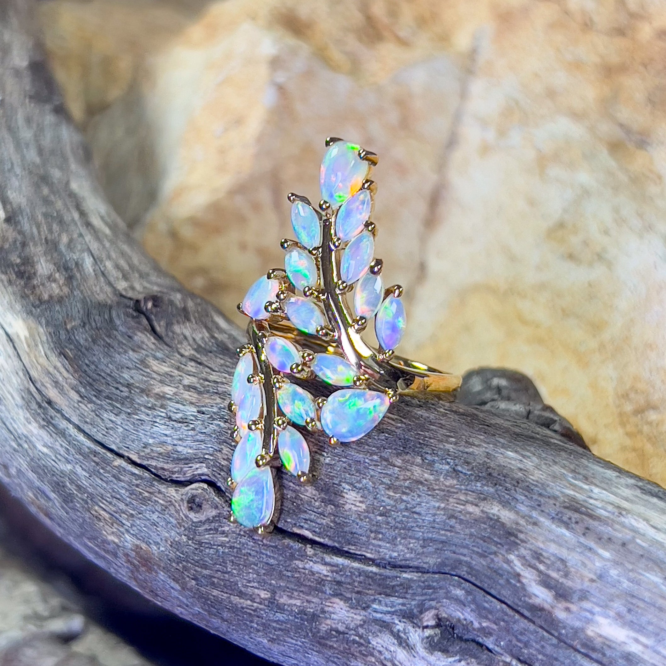 18kt Yellow Gold Crystal Opal leaf motif ring