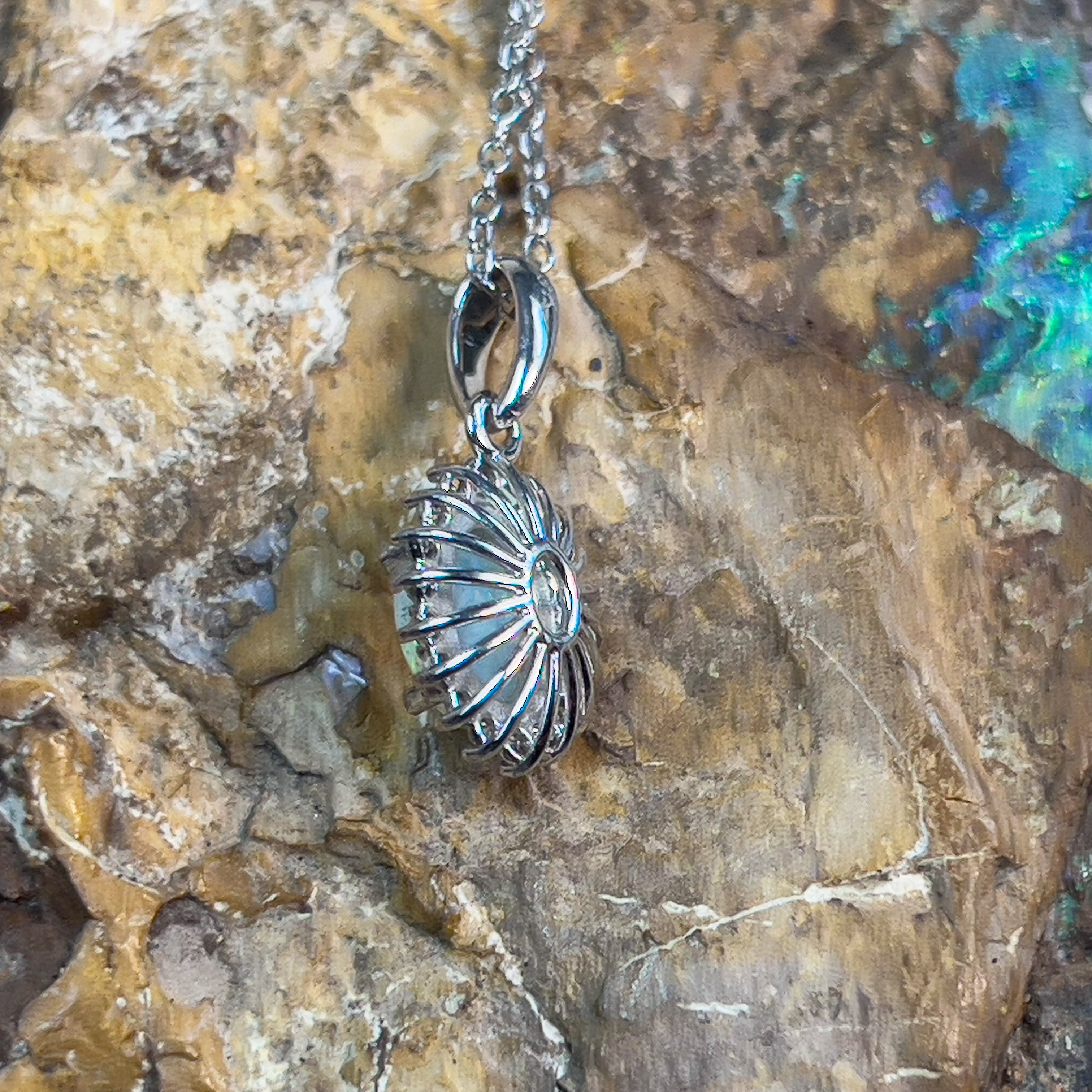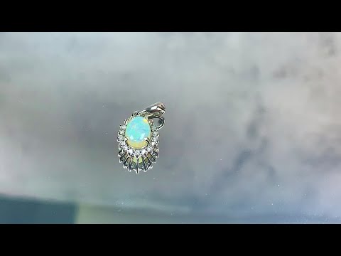 9kt White Gold cluster White Opal 7x5mm diamond cluster pendant