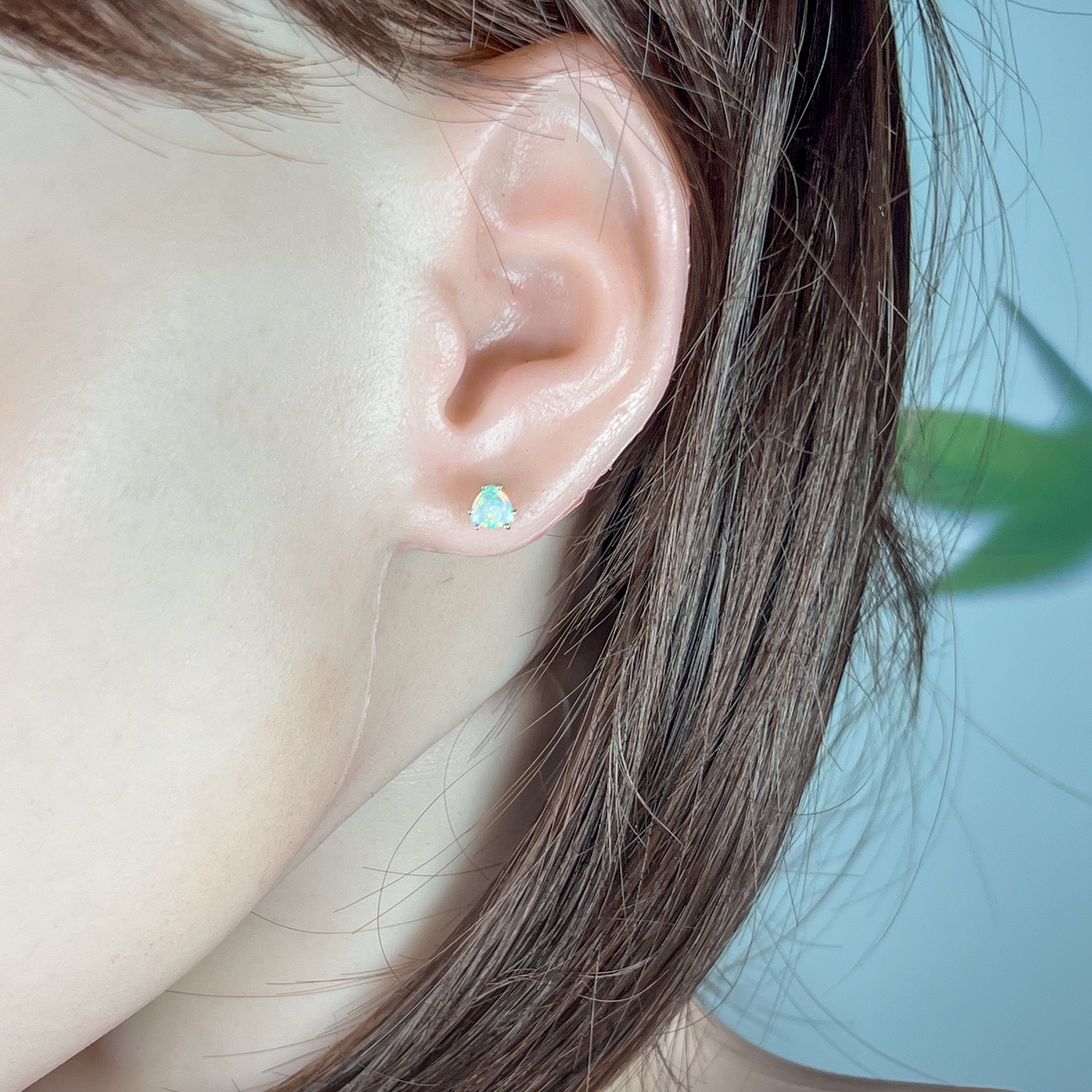 Elevate your everyday elegance with these stunning 9kt white gold trillion cut opal studs. Each piece showcases a mesmerising play of colour unique to Australian opal, set in sleek white gold for a contemporary edge. Perfect for those who appreciate refined, understated luxury, these dainty studs transition effortlessly from day to night. The geometric trillion cut adds modern sophistication while the precious opal brings natural beauty and individuality to your jewellery collection. A timeless investment piece that celebrates both craftsmanship and nature's artistry.