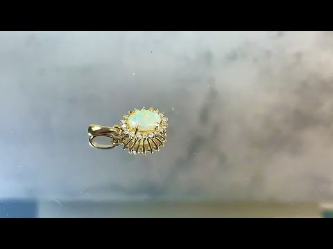 9kt Yellow Gold 7x5mm White Opal and diamond cluster pendant