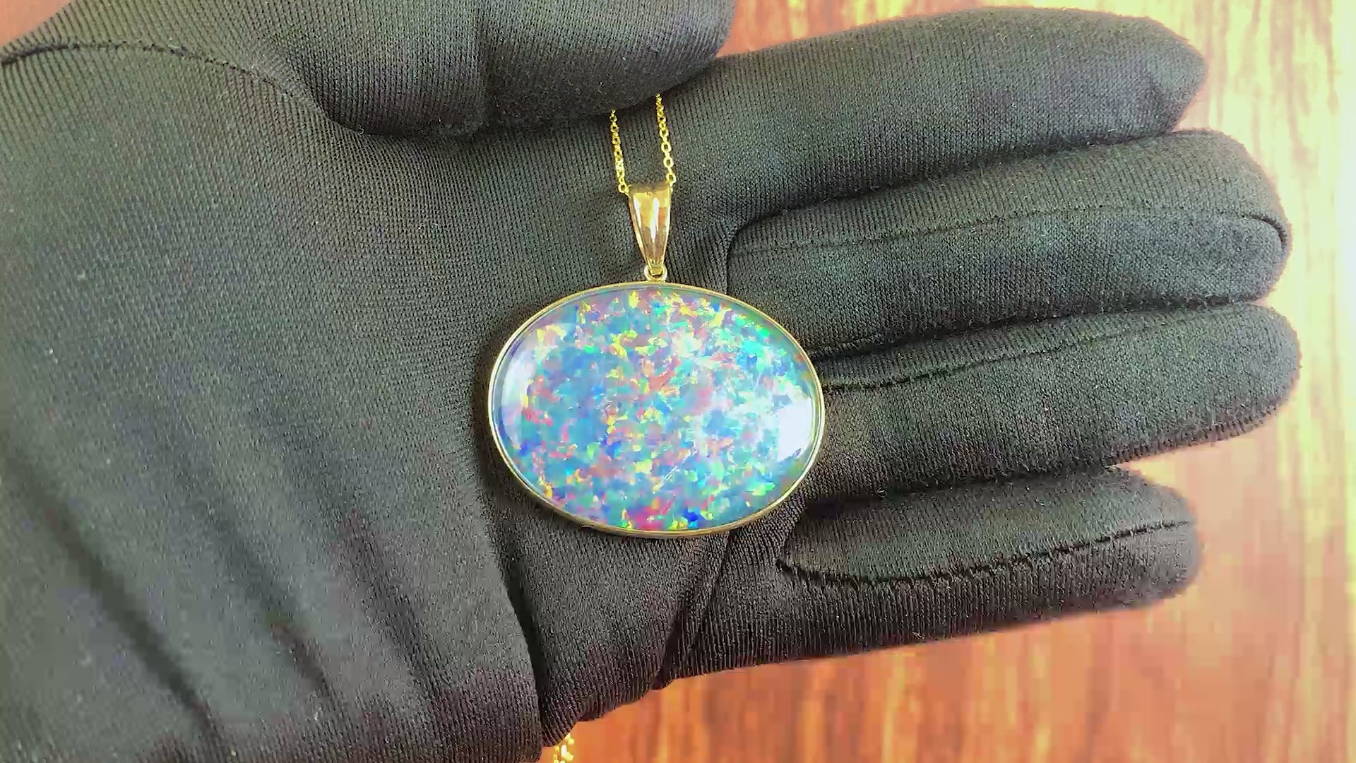 9kt Yellow Gold bezel set Opal triplet 40x30mm